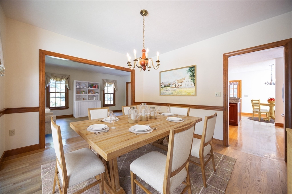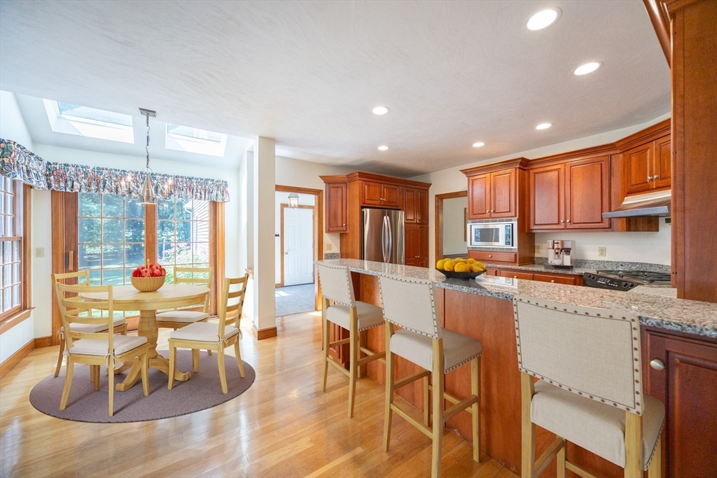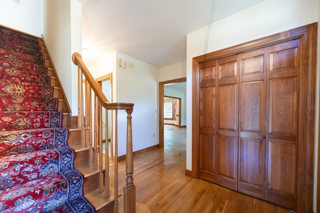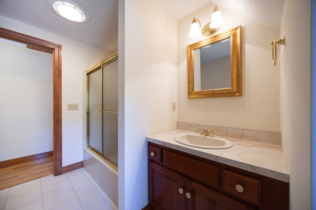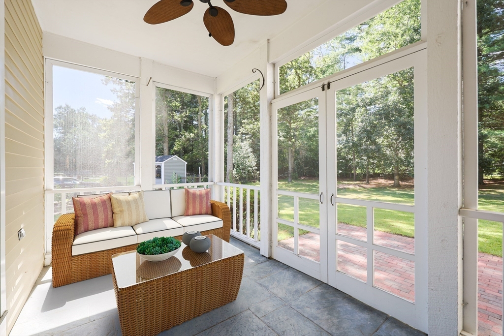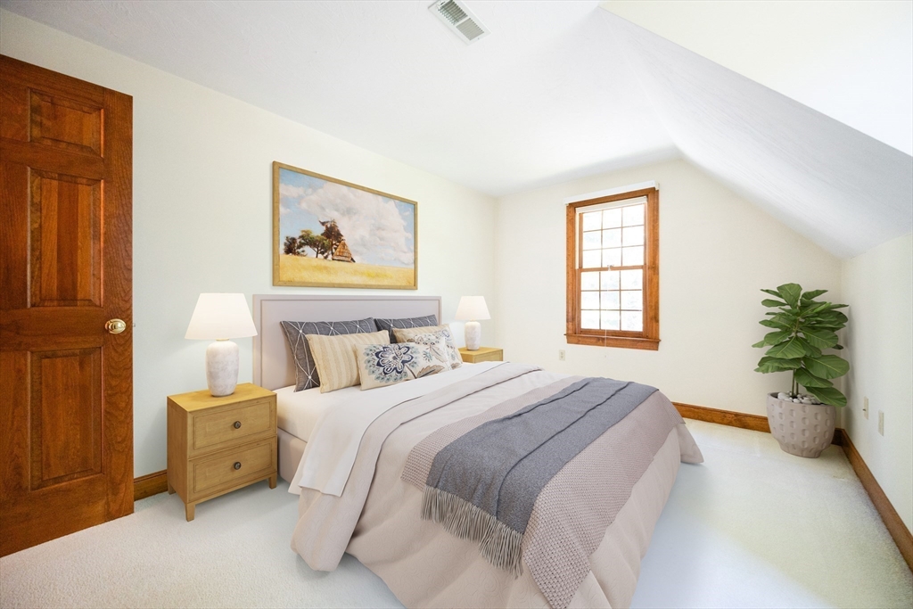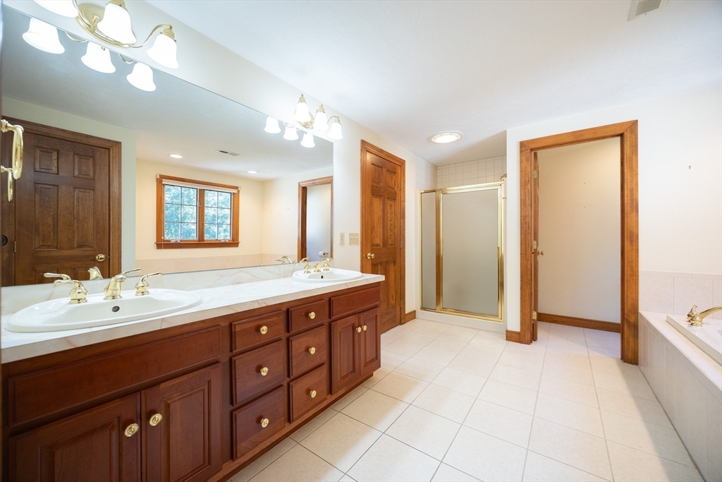 Beautiful custom Cape located in Andrews Farm Estates near schools. Cul-de-sac location, approximately one acre lot, two-car side entry garage plus a large shed. The kitchen has cherry cabinets, stainless steel appliances, granite countertop and dining area with sliders leading to backyard and screen porch. The first floor has a spacious family room with a fireplace and built-ins (carpet), formal dining room plus a first-floor study/kids play room/living room with hardwood floors. The primary suite has a large walk-in closet and private bath with Jacuzzi tub and double sinks. Large unfinished space over the garage (26x22), full basement with stairs to garage, natural gas heat, central air, central vac, Title 5 approved, irrigation system and much more! Floor plan attached.