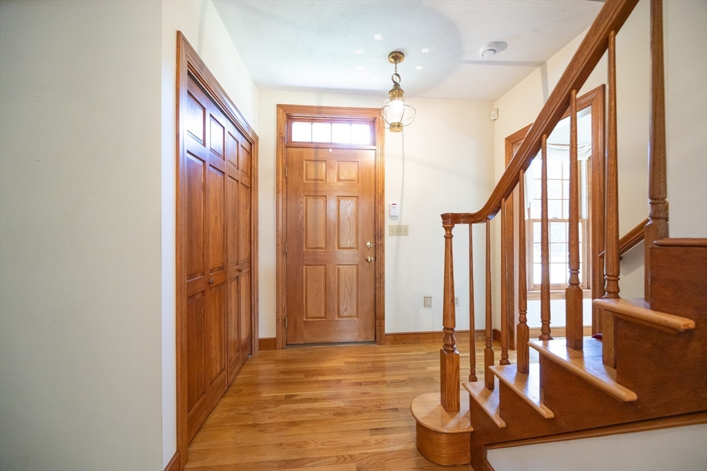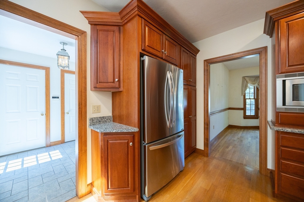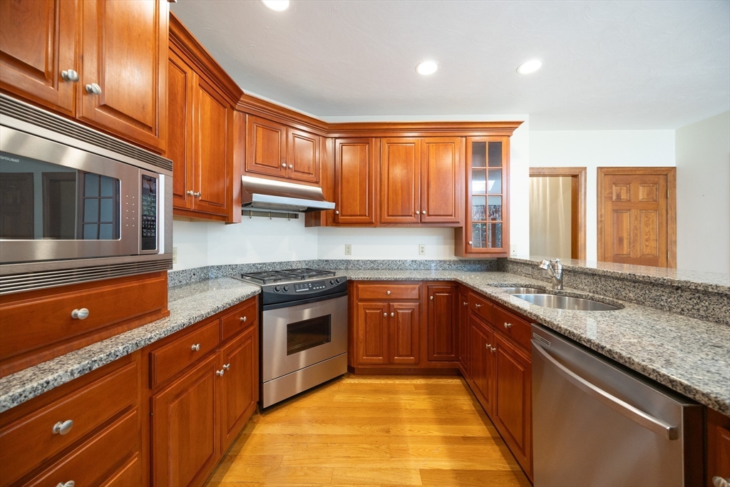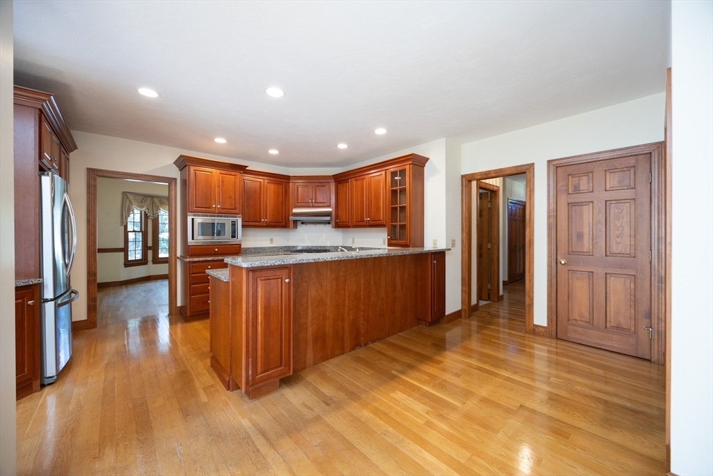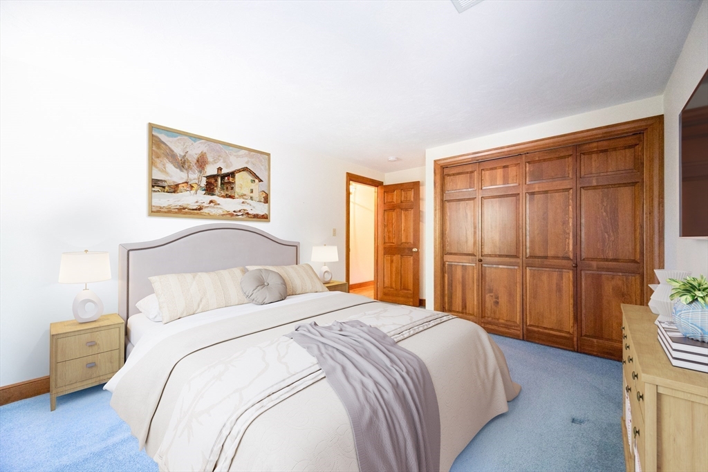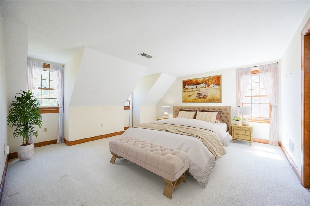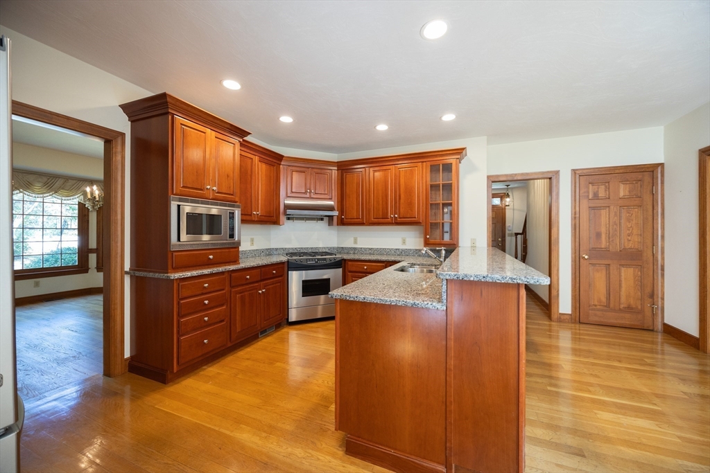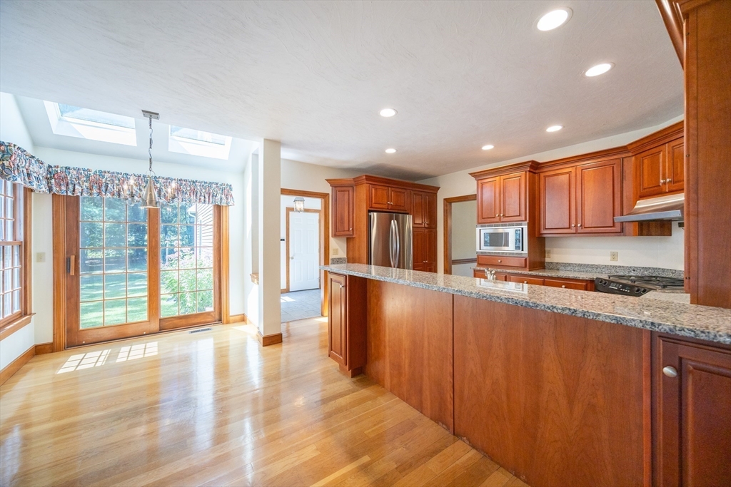 Beautiful custom Cape located in Andrews Farm Estates near schools. Cul-de-sac location, approximately one acre lot, two-car side entry garage plus a large shed. The kitchen has cherry cabinets, stainless steel appliances, granite countertop and dining area with sliders leading to backyard and screen porch. The first floor has a spacious family room with a fireplace and built-ins (carpet), formal dining room plus a first-floor study/kids play room/living room with hardwood floors. The primary suite has a large walk-in closet and private bath with Jacuzzi tub and double sinks. Large unfinished space over the garage (26x22), full basement with stairs to garage, natural gas heat, central air, central vac, Title 5 approved, irrigation system and much more! Floor plan attached.