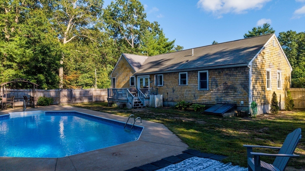 Welcome to this beautifully crafted oversized custom ranch that perfectly combines comfort, style, and convenience. Nestled at the end of a quiet cul-de-sac in one of the area’s most desirable neighborhoods, this home offers effortless one-level living just minutes from major highways. Pride ownership is evident throughout.The kitchen boasts Corian countertops, a tile backsplash, and stainless steel appliances, opening to a private, fenced backyard with a sparkling in-ground pool, full irrigation, and a septic system that’s only 9 years old. The oversized family and dining rooms feature cathedral ceilings, while the spacious master suite includes hardwood flooring and vaulted ceilings for an added touch of elegance. The finished lower level provides exceptional versatility with a dedicated laundry room, home office, gym and generous extra space expanding well beyond the listed square footage. This home truly checks all the boxes-don’t miss your chance to see it! Open House 9/13 11-1:00