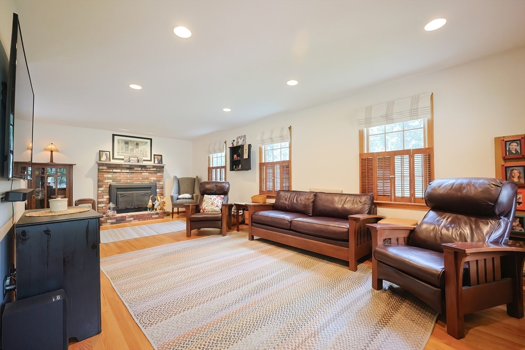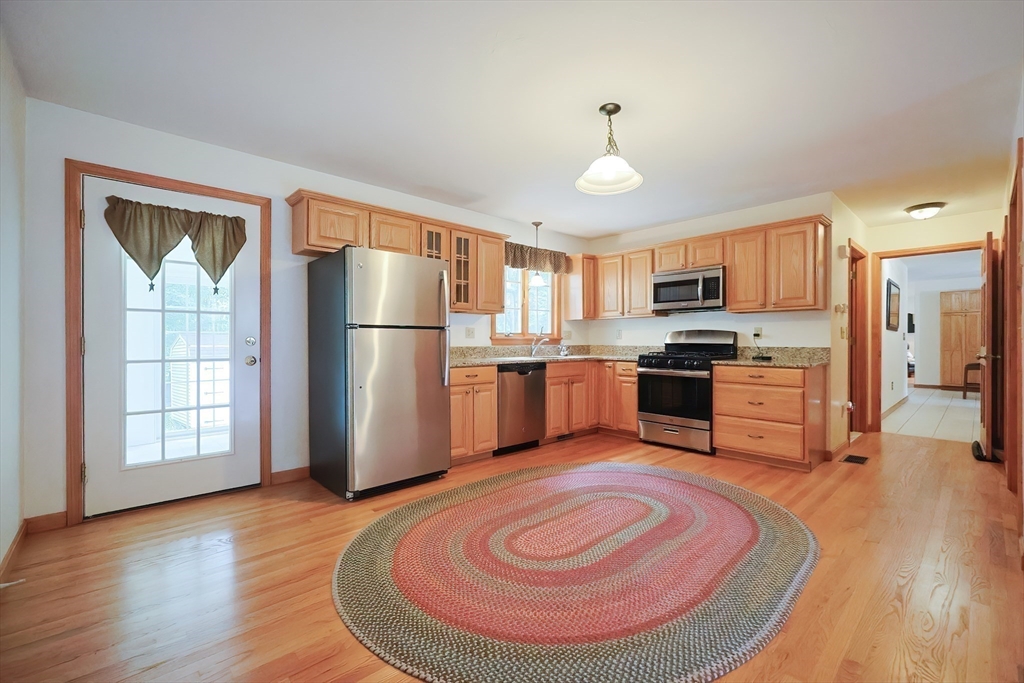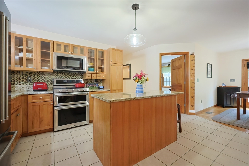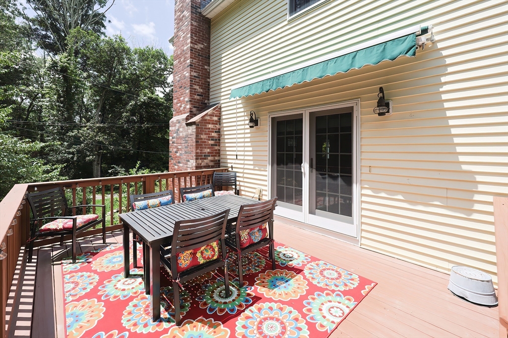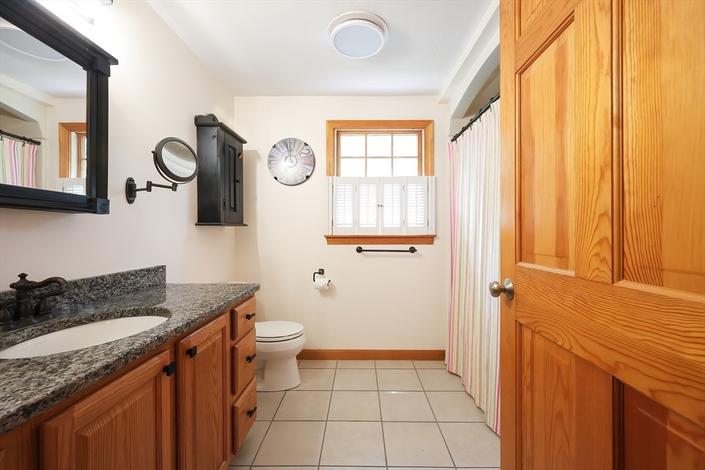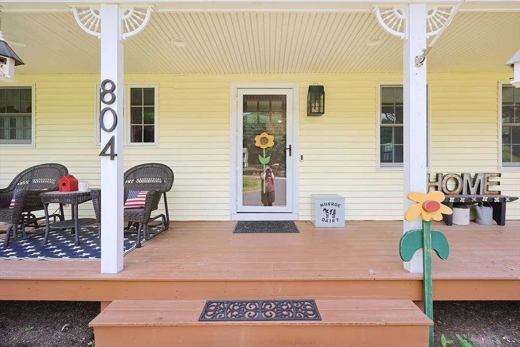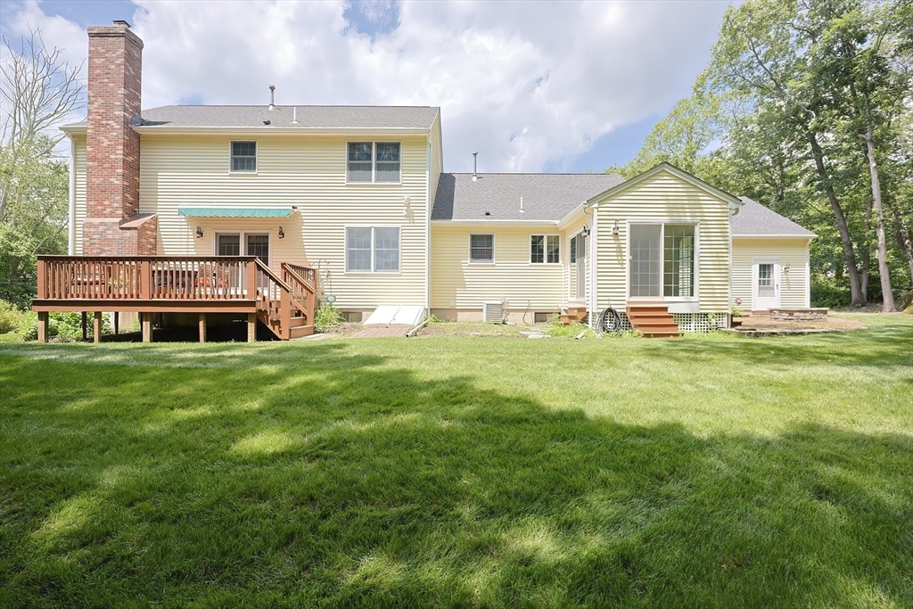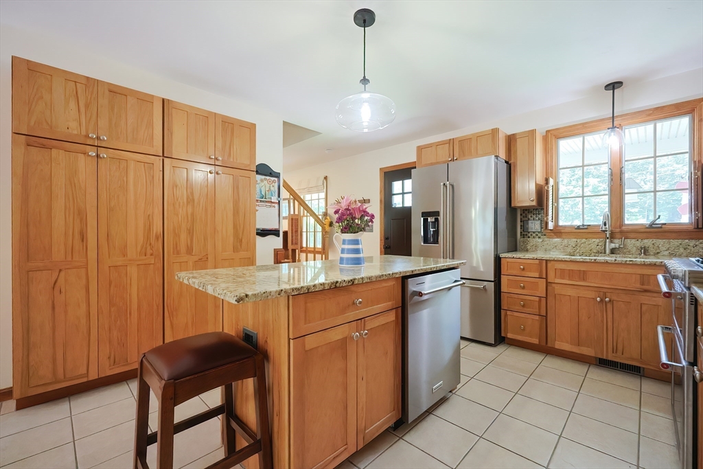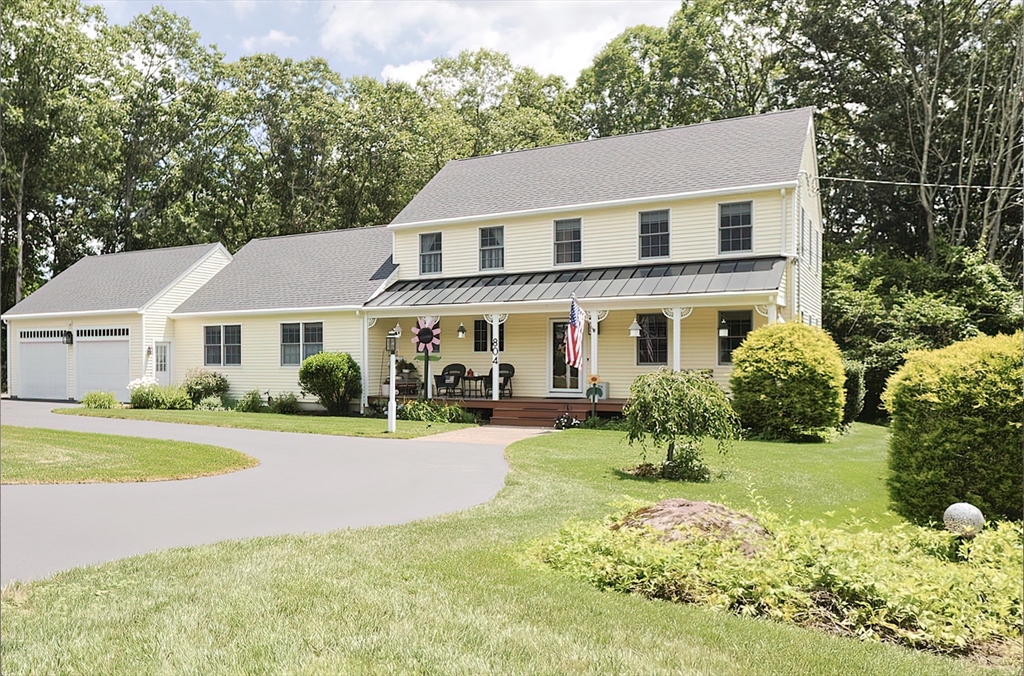 Welcome to this beautifully maintained, sunlit Colonial with timeless curb appeal and a welcoming farmer’s porch. Painted in a warm, cheerful hue, this home exudes classic New England charm and modern comfort throughout. Featuring 5 spacious bedrooms—including 2 on the first floor—and 3 full baths, it’s designed for both flexibility and ease of living. The open-concept main level showcases gleaming hardwood floors, a sun-drenched living space, and a chef’s kitchen with granite countertops. A full in-law suite with private entrance and its own kitchen offers comfort and privacy for extended family. Enjoy quiet mornings in the sunroom or step onto the deck to take in the beautifully landscaped yard complete with irrigation. The oversized driveway allows for easy entry and exit, along with a 2-car garage. Located just minutes from the commuter rail, this home is in pristine condition and move-in ready. A rare and charming opportunity awaits!