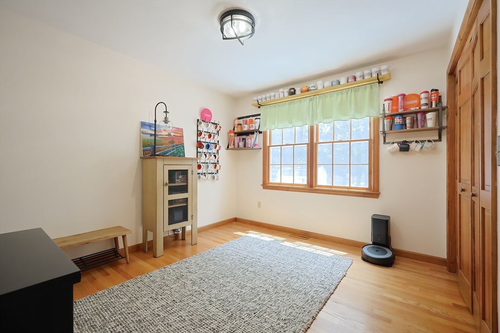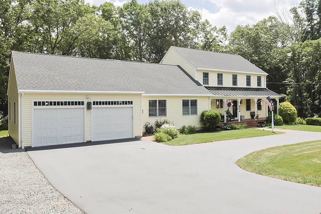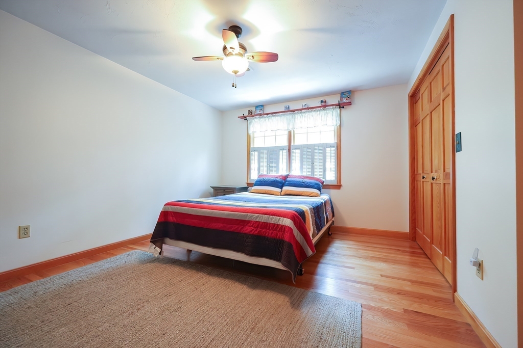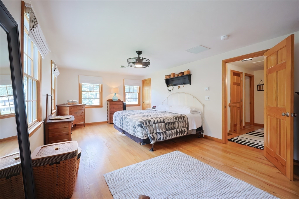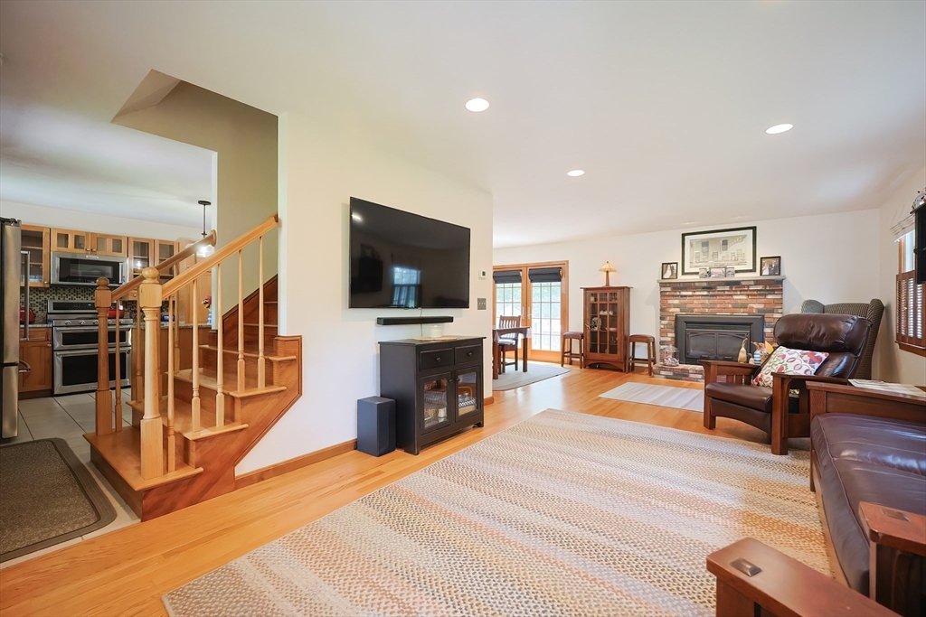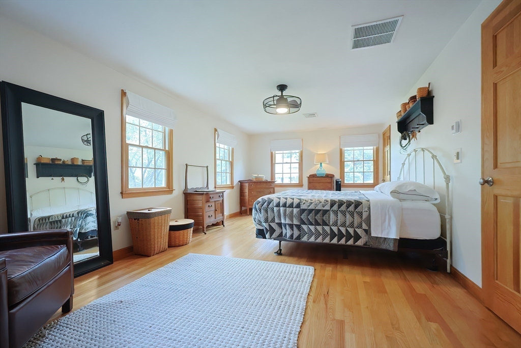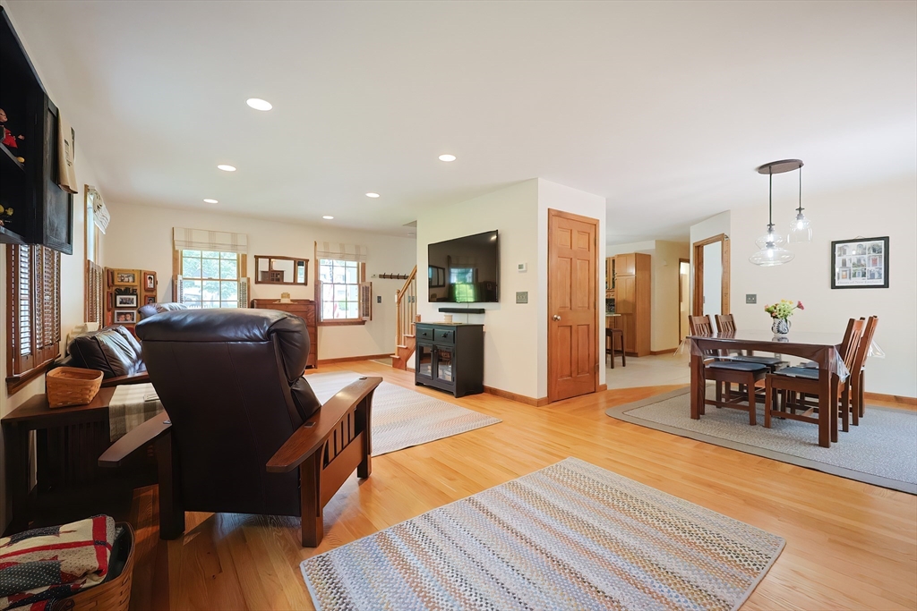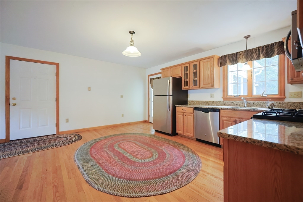 Welcome to this beautifully maintained, sunlit Colonial with timeless curb appeal and a welcoming farmer’s porch. Painted in a warm, cheerful hue, this home exudes classic New England charm and modern comfort throughout. Featuring 5 spacious bedrooms—including 2 on the first floor—and 3 full baths, it’s designed for both flexibility and ease of living. The open-concept main level showcases gleaming hardwood floors, a sun-drenched living space, and a chef’s kitchen with granite countertops. A full in-law suite with private entrance and its own kitchen offers comfort and privacy for extended family. Enjoy quiet mornings in the sunroom or step onto the deck to take in the beautifully landscaped yard complete with irrigation. The oversized driveway allows for easy entry and exit, along with a 2-car garage. Located just minutes from the commuter rail, this home is in pristine condition and move-in ready. A rare and charming opportunity awaits!