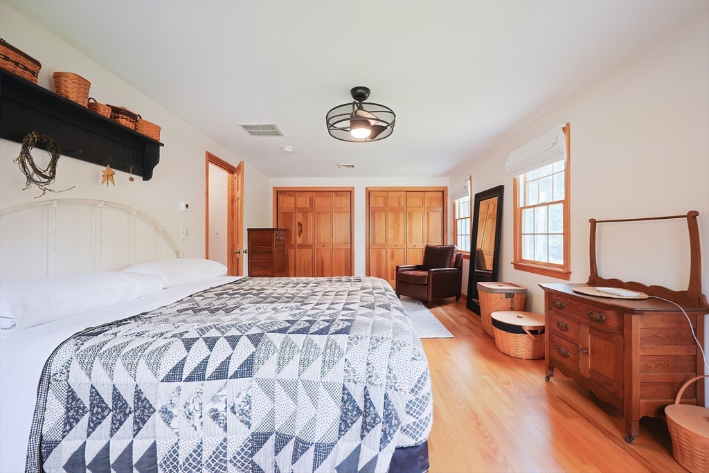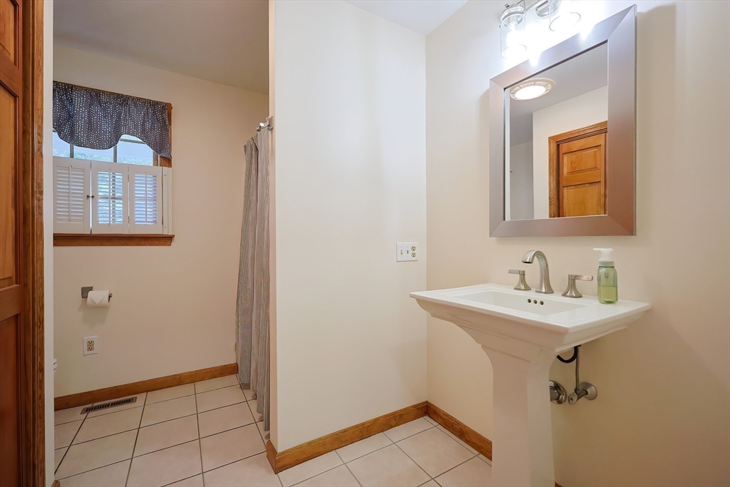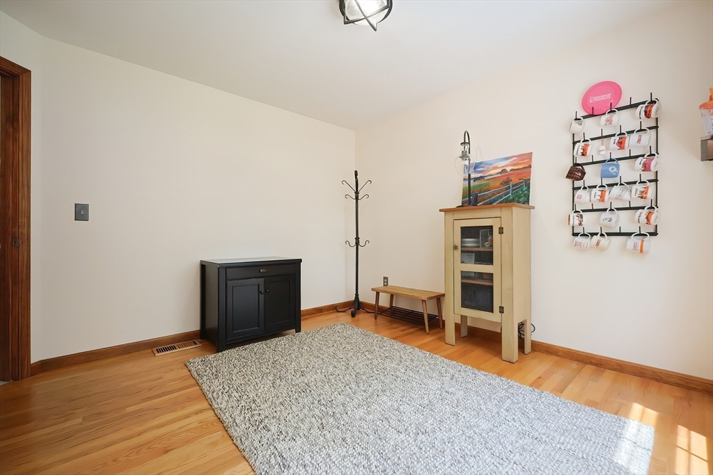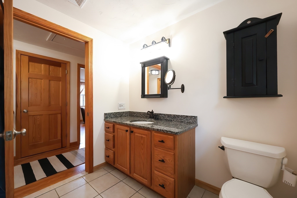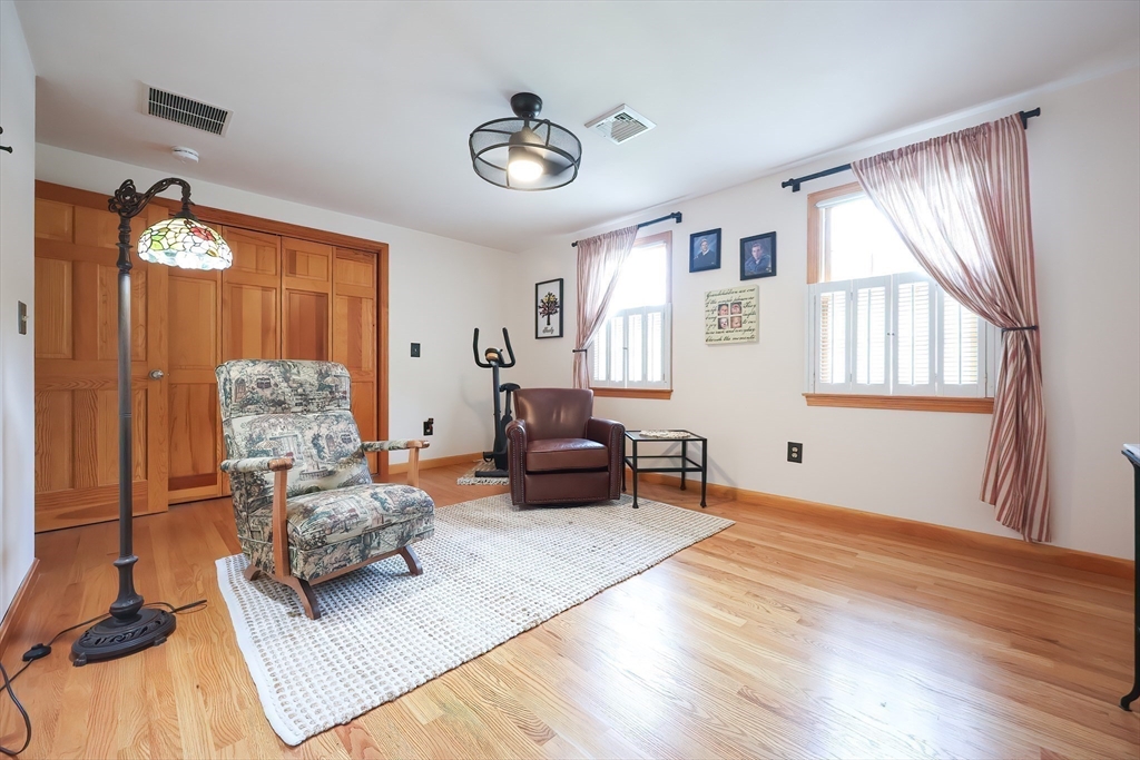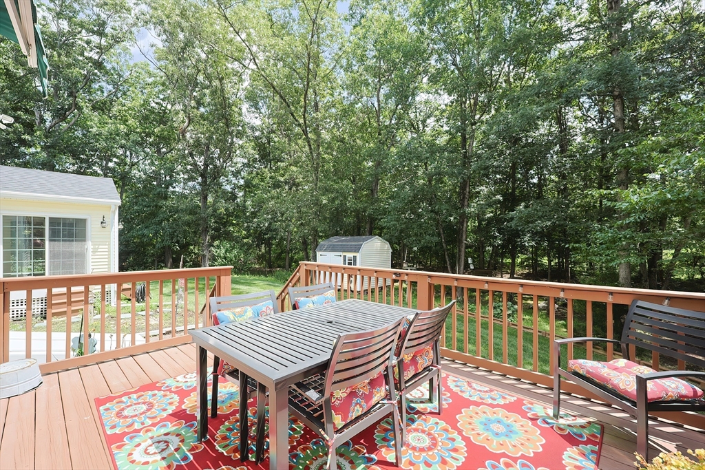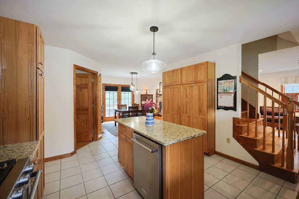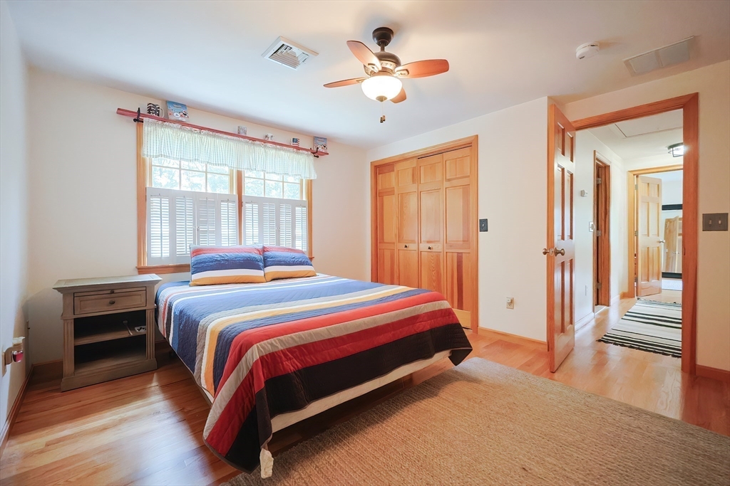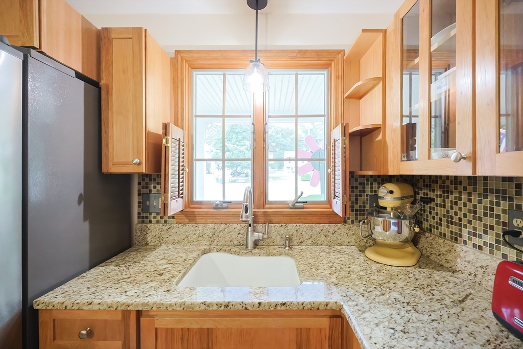 Welcome to this beautifully maintained, sunlit Colonial with timeless curb appeal and a welcoming farmer’s porch. Painted in a warm, cheerful hue, this home exudes classic New England charm and modern comfort throughout. Featuring 5 spacious bedrooms—including 2 on the first floor—and 3 full baths, it’s designed for both flexibility and ease of living. The open-concept main level showcases gleaming hardwood floors, a sun-drenched living space, and a chef’s kitchen with granite countertops. A full in-law suite with private entrance and its own kitchen offers comfort and privacy for extended family. Enjoy quiet mornings in the sunroom or step onto the deck to take in the beautifully landscaped yard complete with irrigation. The oversized driveway allows for easy entry and exit, along with a 2-car garage. Located just minutes from the commuter rail, this home is in pristine condition and move-in ready. A rare and charming opportunity awaits!
