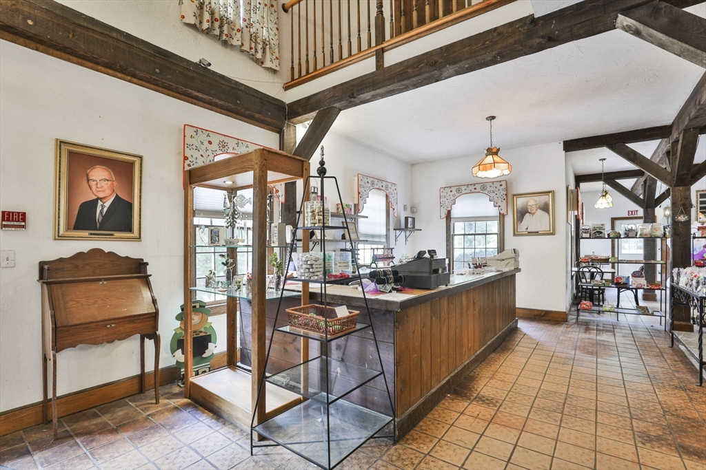 Live and keep the beloved candy store! This 5,694 sq. ft. building on 2.28 acres has a rich history, originally operating as Heberts Candy and later as Colonial Candies, a local landmark since 1978. The upper-level apartment where the owner has lived includes 3+ bedrooms & 1 bath, and the lower level provides garage/loading access. Septic supports 10+ bedrooms, offering potential for expansion, multi-gen living, Airbnb, or bed & breakfast income. The first floor has long operated as Colonial Candies with 24 seats approved—buyers can continue the candy/ice cream shop, open a restaurant/café, or use the space for other commercial ventures while living upstairs. Zoned mixed-use, with private water & septic, conveniently located off Rt. 117 at the Rt. 495 on/off ramp with prime highway visibility. Some updates needed—bring your vision to create a one-of-a-kind live/work property with endless possibilities! Perfect for entrepreneurs or families seeking a unique lifestyle.A rare combination!
