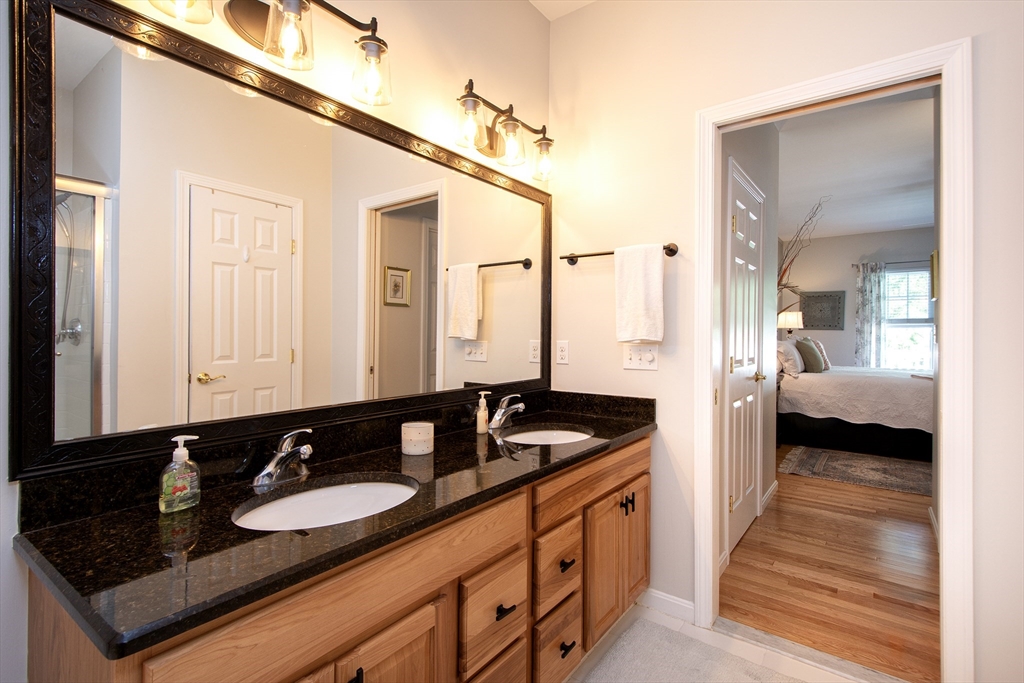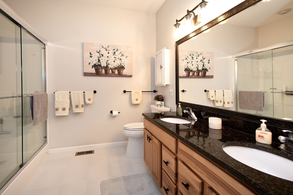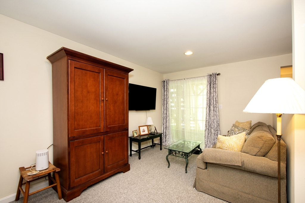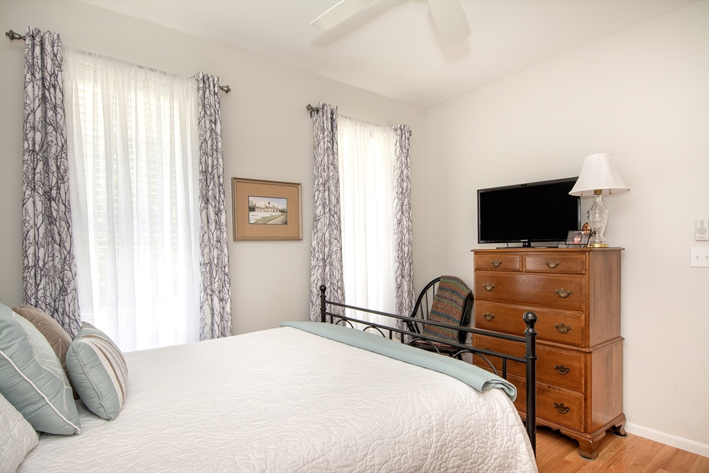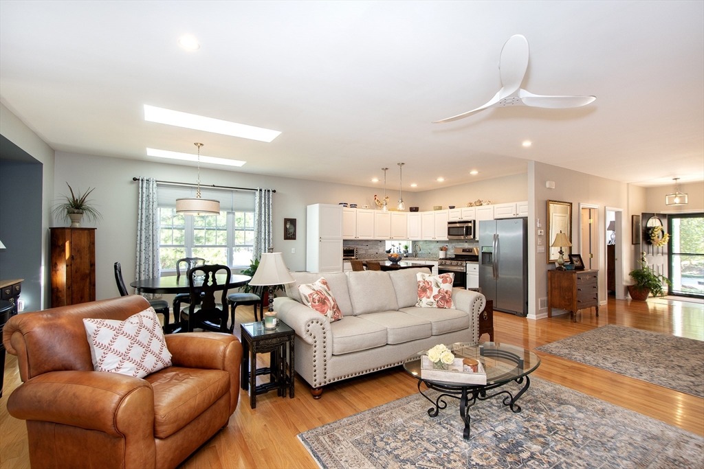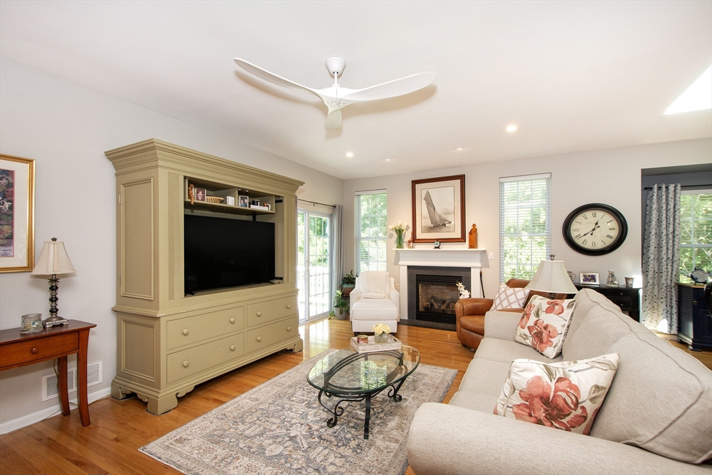 Meticulously maintained unit in active 55 + Village Crossings. This elegant home features one floor living with the option of the finished space in the lower level. The open kitchen/family/dining is warm and inviting with beautiful cabinetry, granite countertops and a cozy gas fireplace. The gas stove and dishwasher are new as of 2024. The gleaming hard woods run throughout. Private primary bedroom enjoys an en suite bathroom. The guest bed has a full bath just adjacent. Just off the two car garage is a full laundry room (new washer/dryer in 2025) with extra refrigerator. The lower level boasts a nice finished area, very useful for guests, plenty of storage, a half bath, and a partially constructed work shop room. So many options! This unit backs up to serene woods and a has a lovely garden just off the front porch. This 2 Bed/2.5 bath offers the perfect setting to relax but is also convenient to White Horse beach, dining and shopping. Don't miss the opportunity to make this yours!
