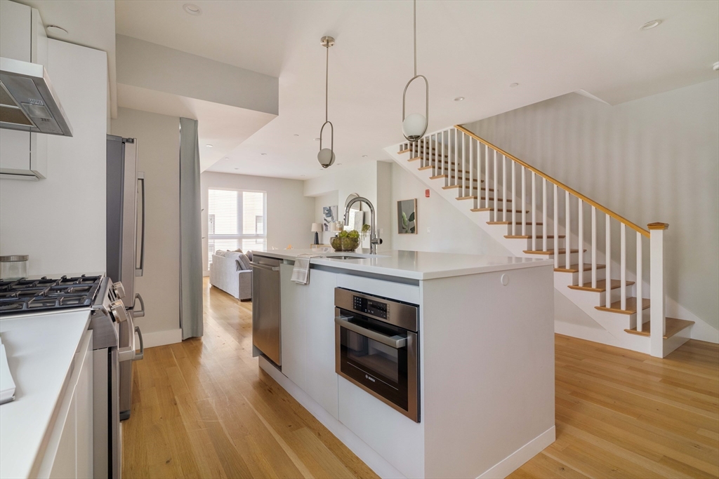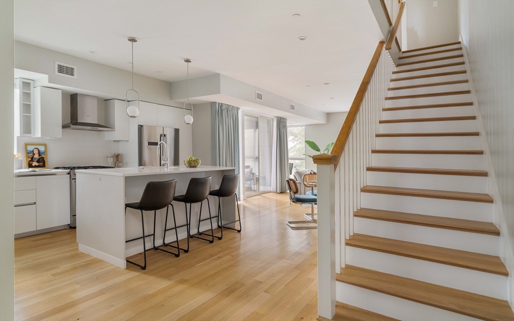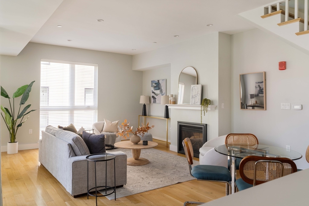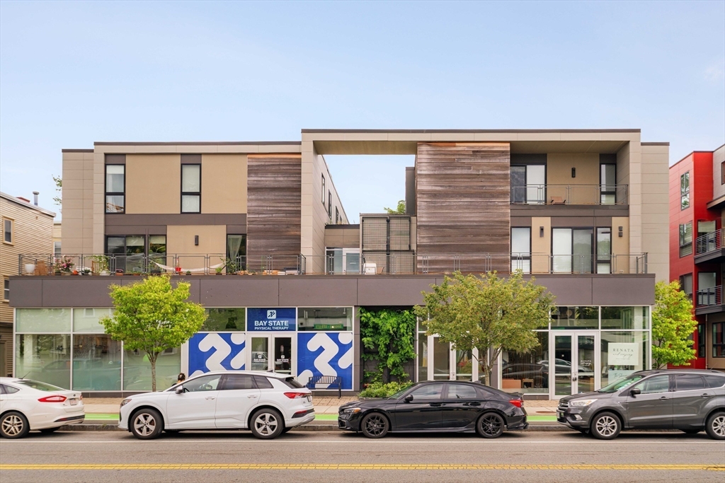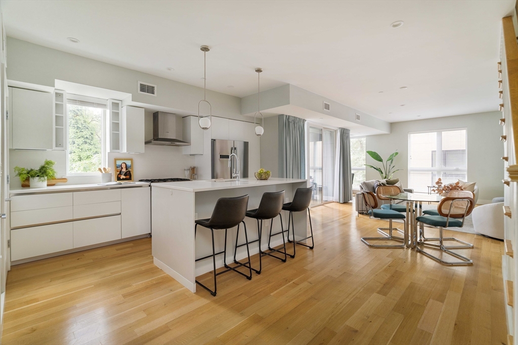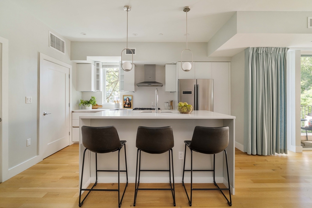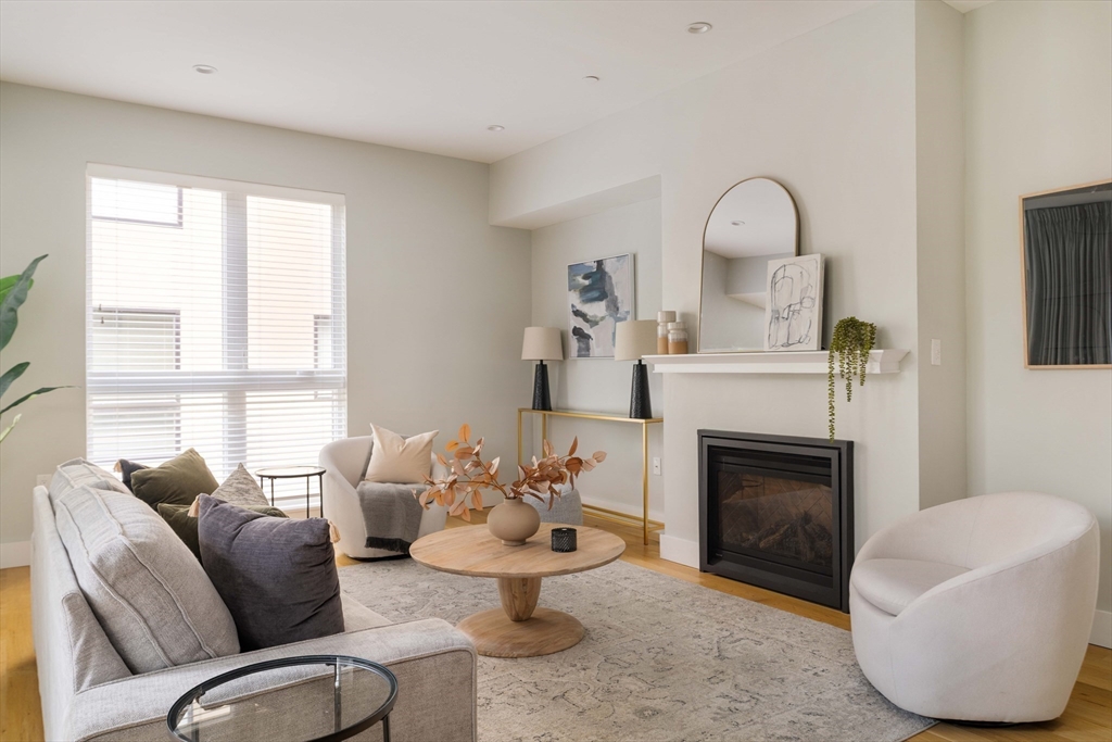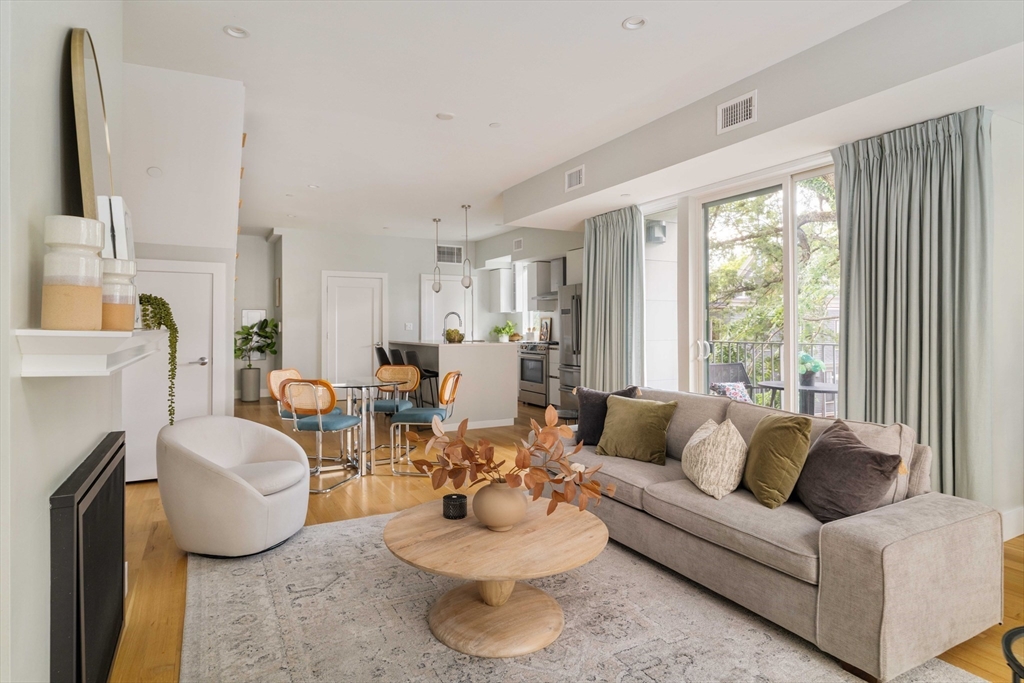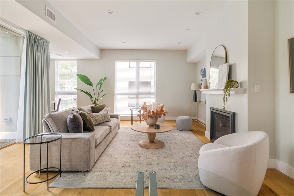 Welcome to 260 Beacon Street, Unit 211 — a beautiful 2-level Scandinavian-style 2+ bed, 2.5 bath condo in a professionally managed elevator building. The open-concept layout features an airy living space with oversized windows, hardwood flooring, a modern gas fireplace, and a private deck overlooking the garden. The ultra functional kitchen is equipped with quartz countertops, Bosch stainless steel appliances, white cabinets, pendant lighting and a decked out floor-to-ceiling pantry closet. Upstairs, the spacious primary suite offers an ensuite bath, the second bedroom and bonus office share a large bath, and the laundry closet rounds out the living quarters. With two garage parking spaces under the building, convenience is unmatched. Additional common outdoor spaces include a front deck and a backyard. Situated in a prime location near Porter Square and Harvard Square, with dining, shopping and entertainment options abounding!