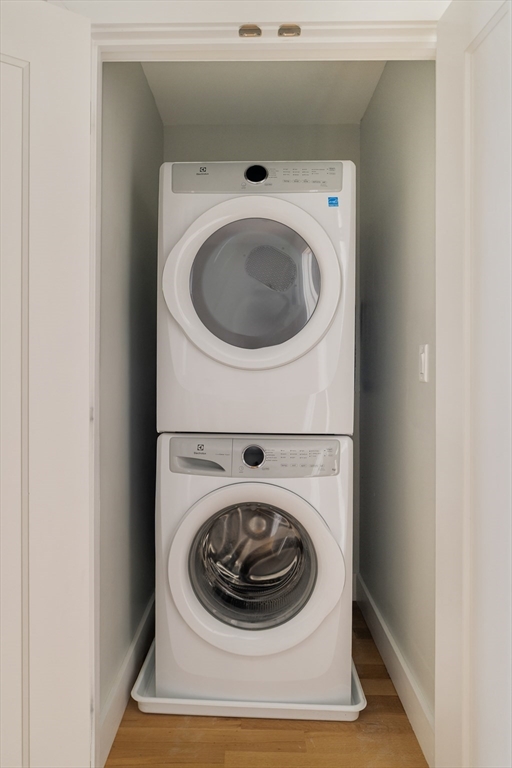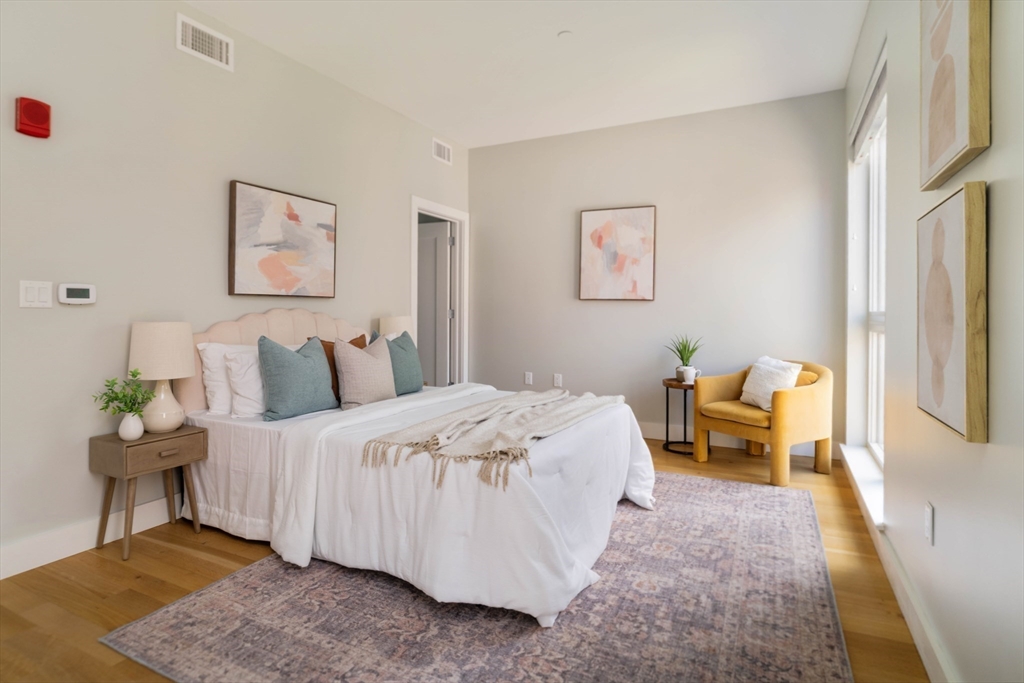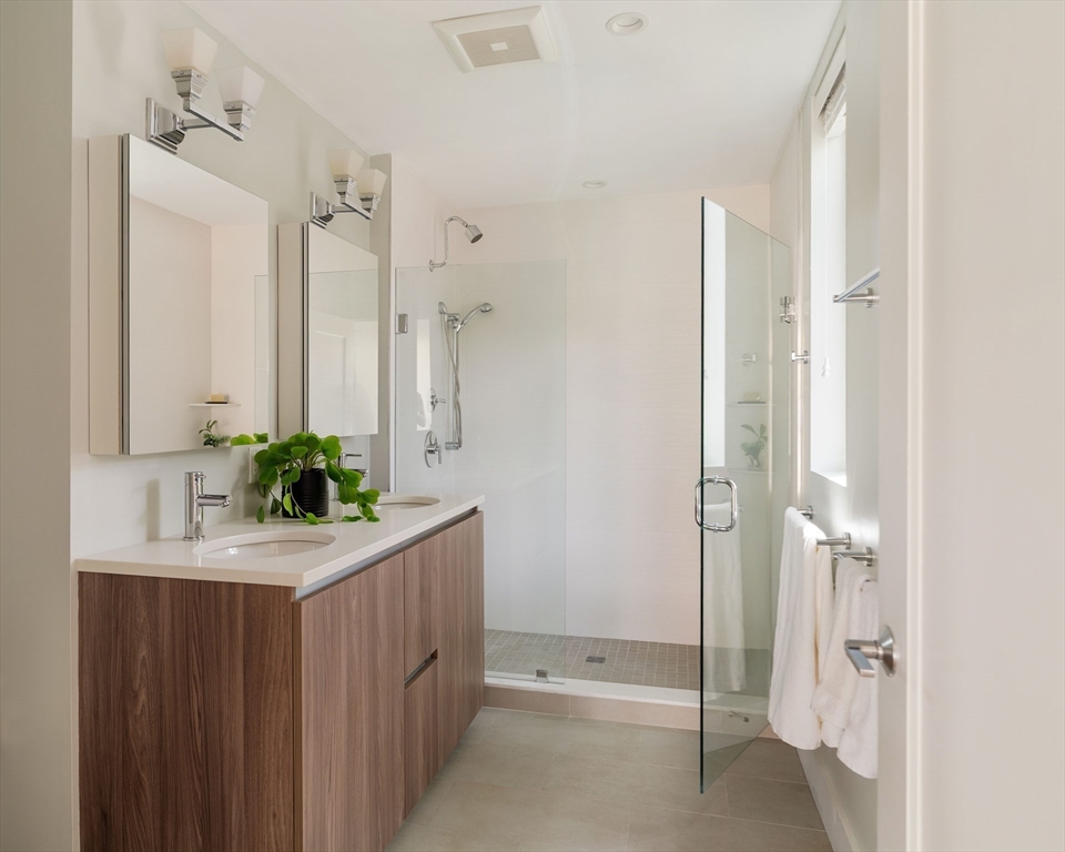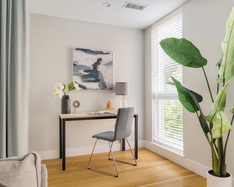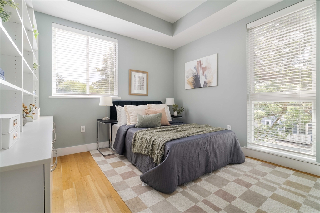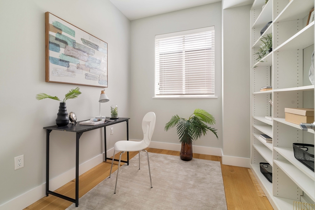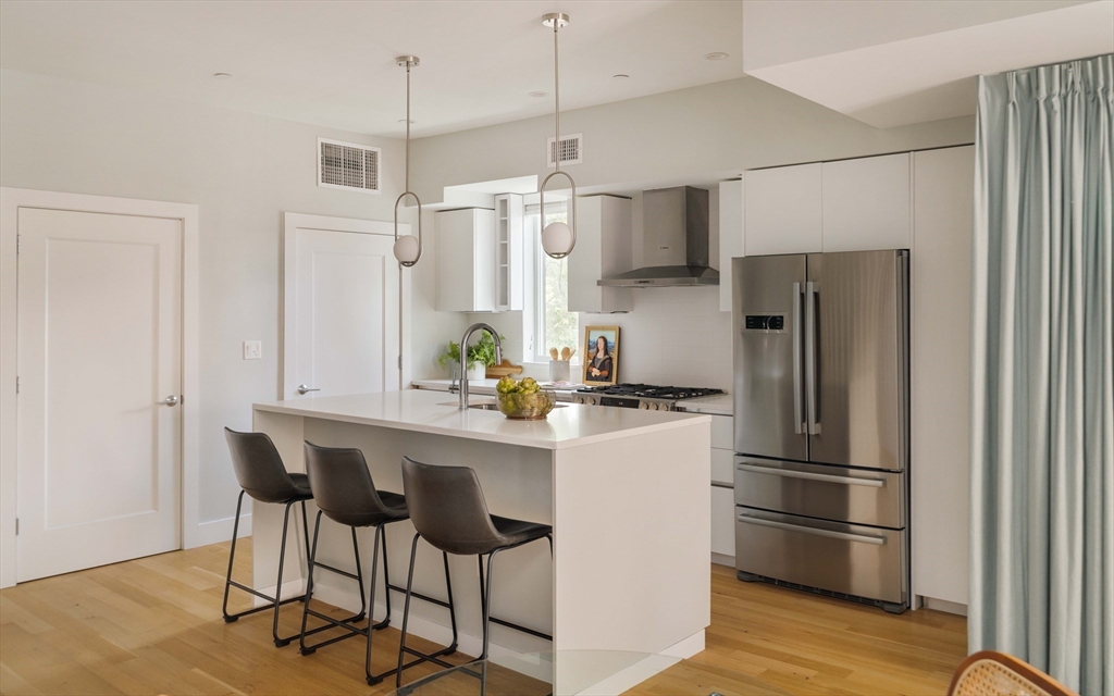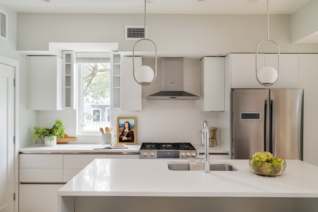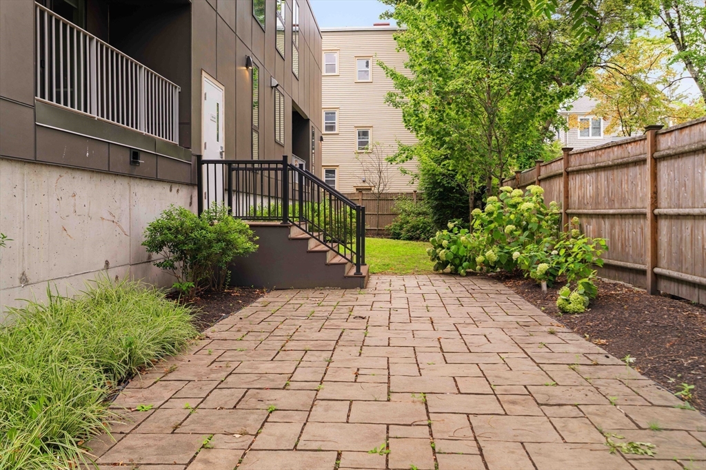 Welcome to 260 Beacon Street, Unit 211 — a beautiful 2-level Scandinavian-style 2+ bed, 2.5 bath condo in a professionally managed elevator building. The open-concept layout features an airy living space with oversized windows, hardwood flooring, a modern gas fireplace, and a private deck overlooking the garden. The ultra functional kitchen is equipped with quartz countertops, Bosch stainless steel appliances, white cabinets, pendant lighting and a decked out floor-to-ceiling pantry closet. Upstairs, the spacious primary suite offers an ensuite bath, the second bedroom and bonus office share a large bath, and the laundry closet rounds out the living quarters. With two garage parking spaces under the building, convenience is unmatched. Additional common outdoor spaces include a front deck and a backyard. Situated in a prime location near Porter Square and Harvard Square, with dining, shopping and entertainment options abounding!