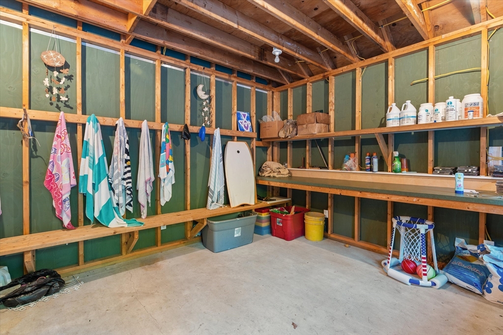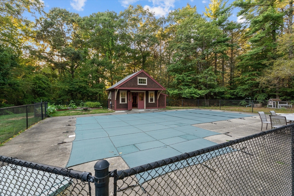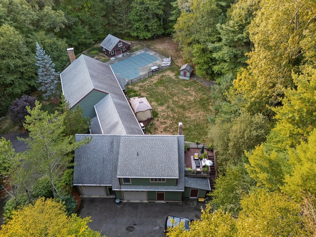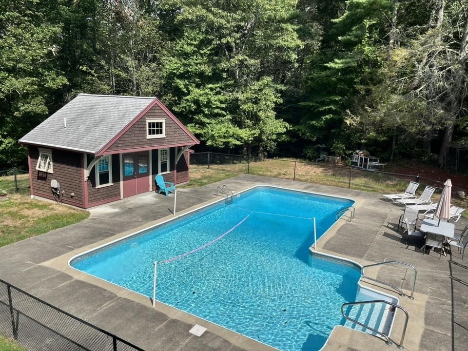 Nestled on 3 acres in sought-after Squinn Brook Estates, this custom home is set back approx. 300 feet for privacy and tranquility. A saltwater inground pool with pool house and half bath makes summer living a breeze. Inside, the spacious floor plan offers a den, inviting living room with wood stove, kitchen with island and eating area, and a dining room enhanced by black walnut trim flooring. A convenient home office and half bath with laundry complete the main level. The highlight is the in-law apartment, featuring a generous main bedroom and full bath, perfect for extended family or guests. Additional amenities include a built-in shed, 2-car garage, and a phenomenal workshop ideal for hobbies or a professional workspace. With versatile living areas, thoughtful details, and exceptional outdoor space, this property offers a rare combination of comfort, function, and lifestyle. Don’t miss the opportunity to call this special estate your new home!