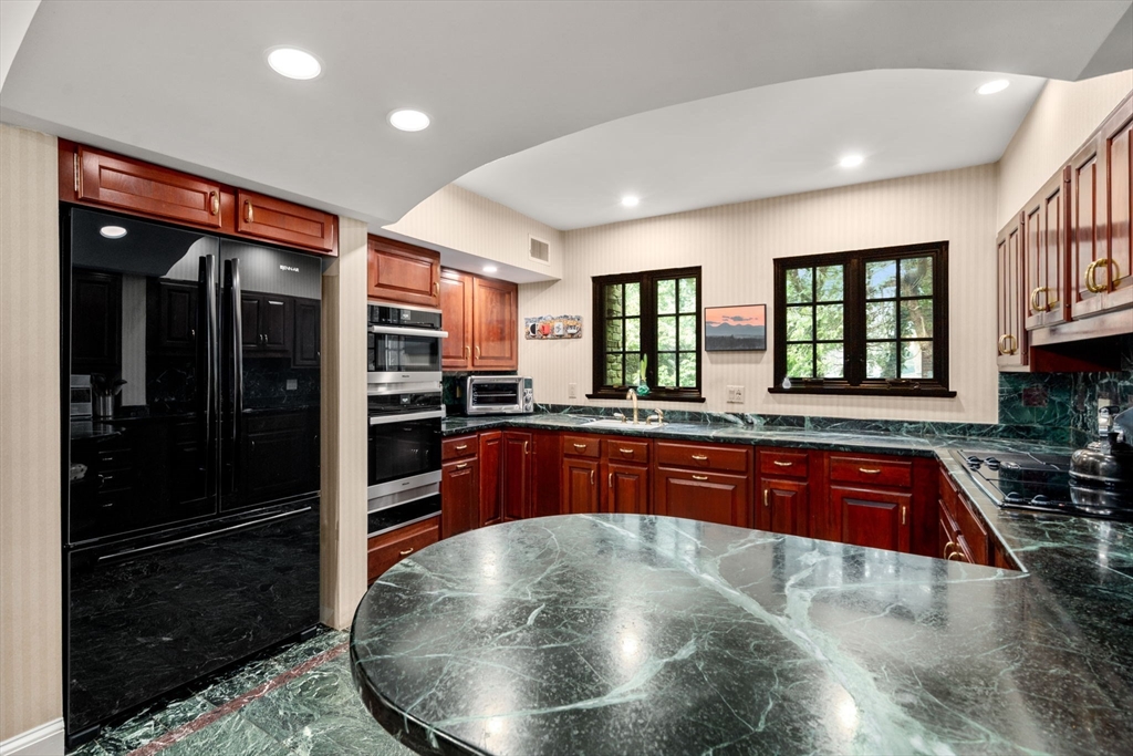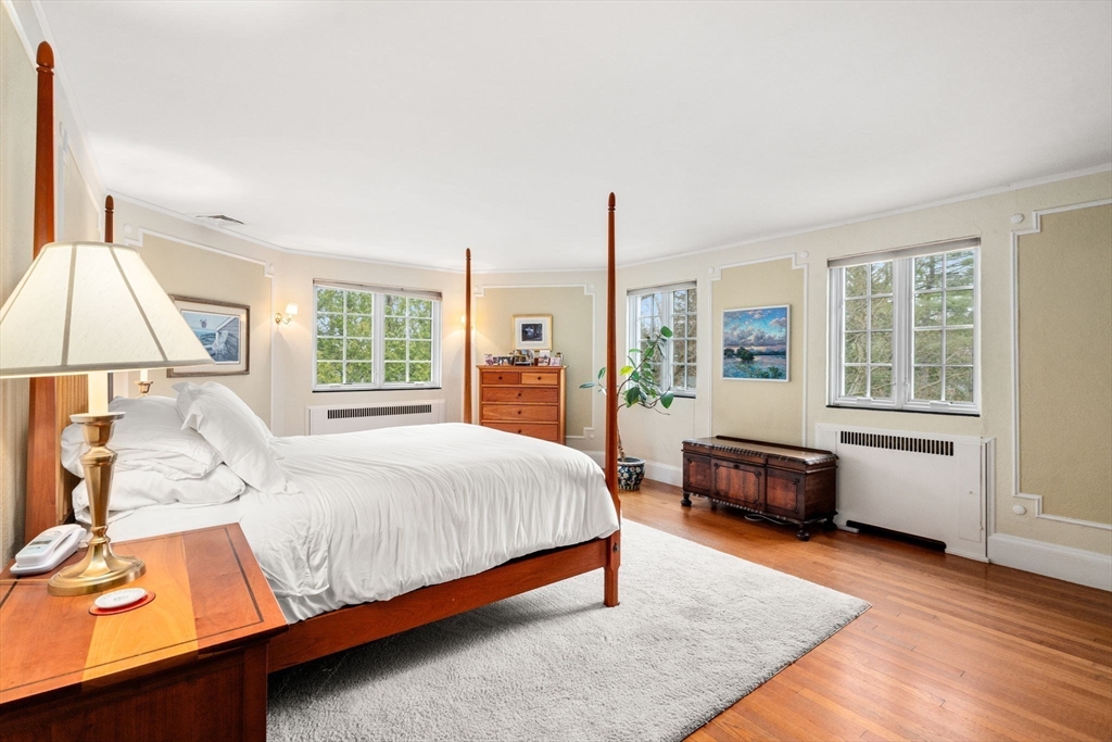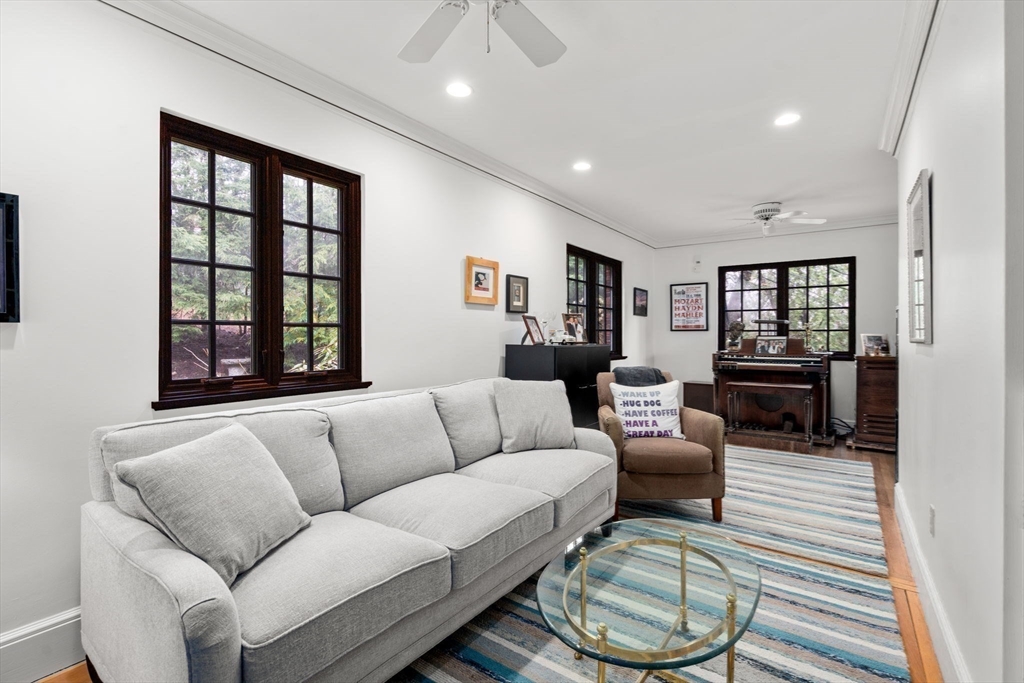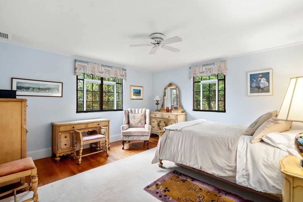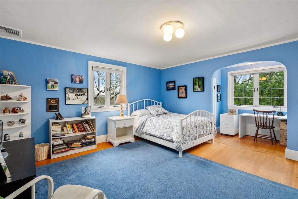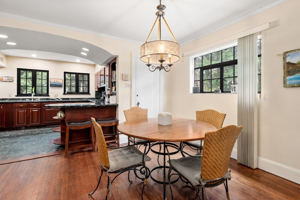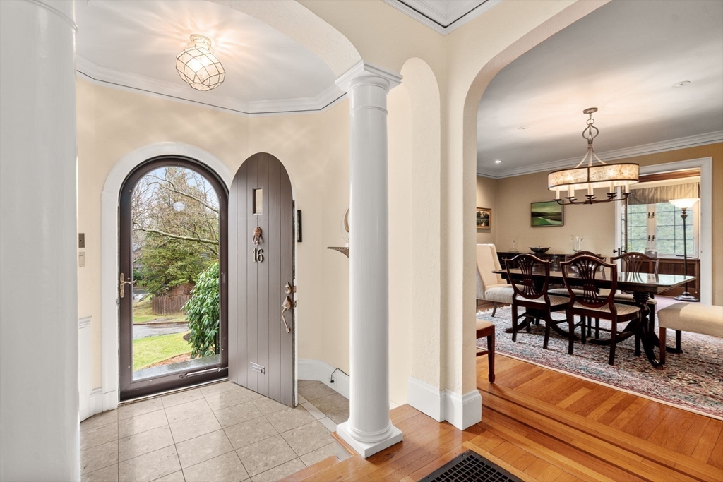 Nestled atop a gentle knoll on a tree-lined street, this English Tudor offers timeless elegance with thoughtful updates. Located in the Baker School district and minutes from Chestnut Hill, this 5-bedroom, 5-bath home combines character with inviting living spaces. A sun-filled step-down living room with fireplace, a formal dining room, and oversized windows set the tone for gracious entertaining. Intricate crown moldings, inlaid hardwood floors, and soaring ceilings showcase the home’s craftsmanship. The 1st floor also includes a bright eat-in kitchen, family room, private office, & full bath. Upstairs, the primary suite features an ensuite bath and walk-in closet, joined by two bedrooms with balcony and a charming turret room. The 3rd floor adds two more bedrooms and full bath. The lower level includes a direct-entry 2-car garage, a versatile family room w/kitchenette, exercise room, full bath, and laundry. Outside, relax in a private, beautifully landscaped yard w/bluestone patio.