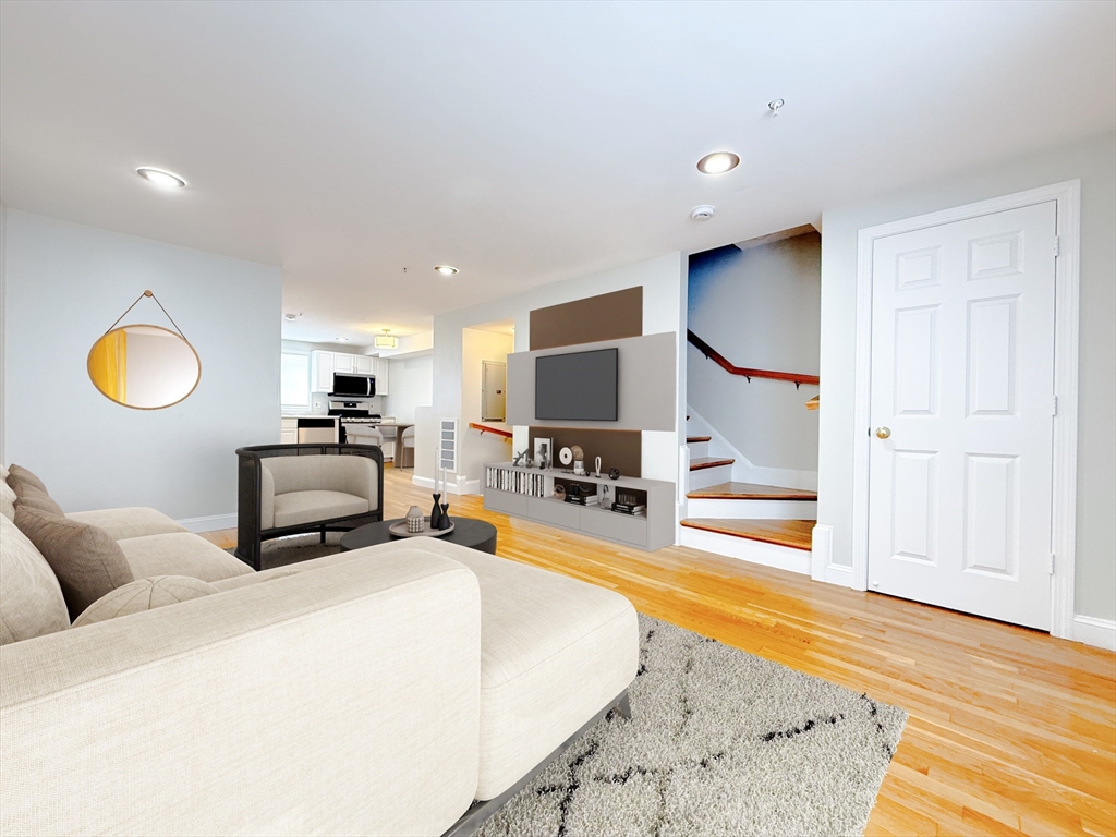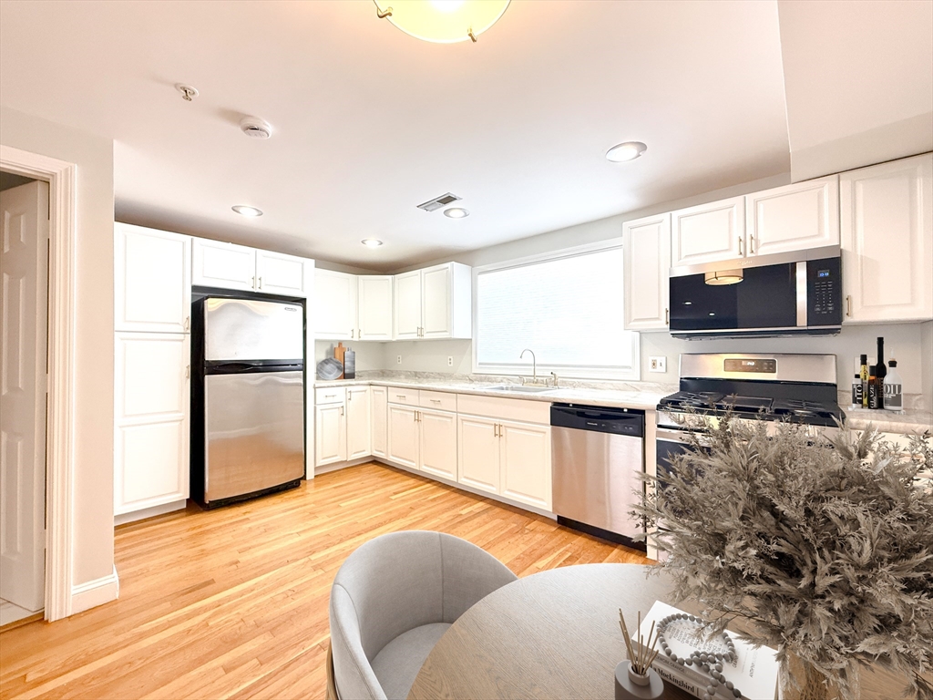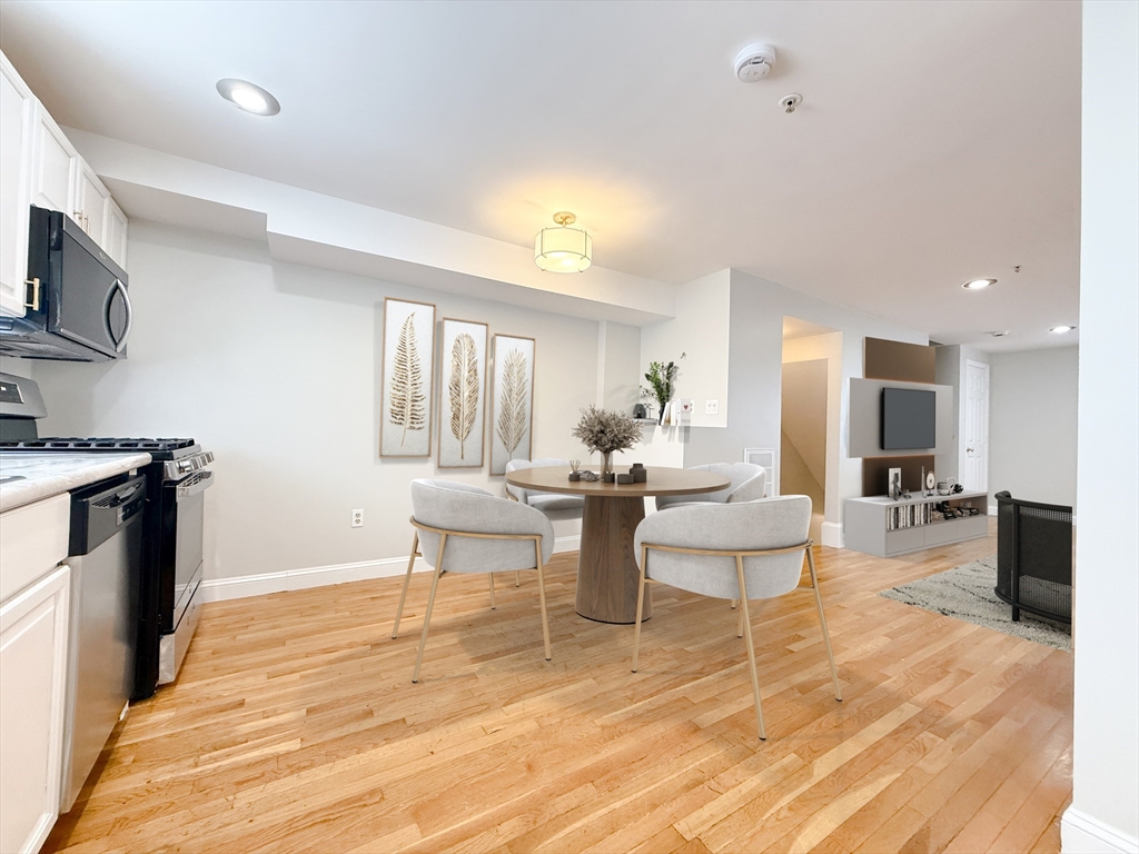 Beautiful sunlit townhouse with private garage parking! This spacious 4-level, 3 bed, 2.5 bath unit built in 2001 offers the best of city living with a single-family feel. Features include hardwood floors throughout, central AC, recessed lighting, in-unit laundry, and abundant natural light. The open-concept main level boasts an eat-in kitchen with SS appliances, living room, and half bath—perfect for entertaining. A flexible first-floor bonus room works as an office, mudroom, or storage. The top-floor primary suite includes double closets, private full bath, and covered outdoor deck. Two additional bedrooms share another full bath. Not to mention an attached garage, off-street parking, low condo fees, and a well-managed association. Prime location near schools, MBTA bus routes, Geneva/Harvard Ave commuter rail with direct South Station access, Grove Hall shopping, and Franklin Park. Surrounded by neighborhood revitalization, this home is a rare find under $600K in Boston!