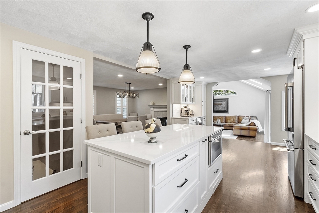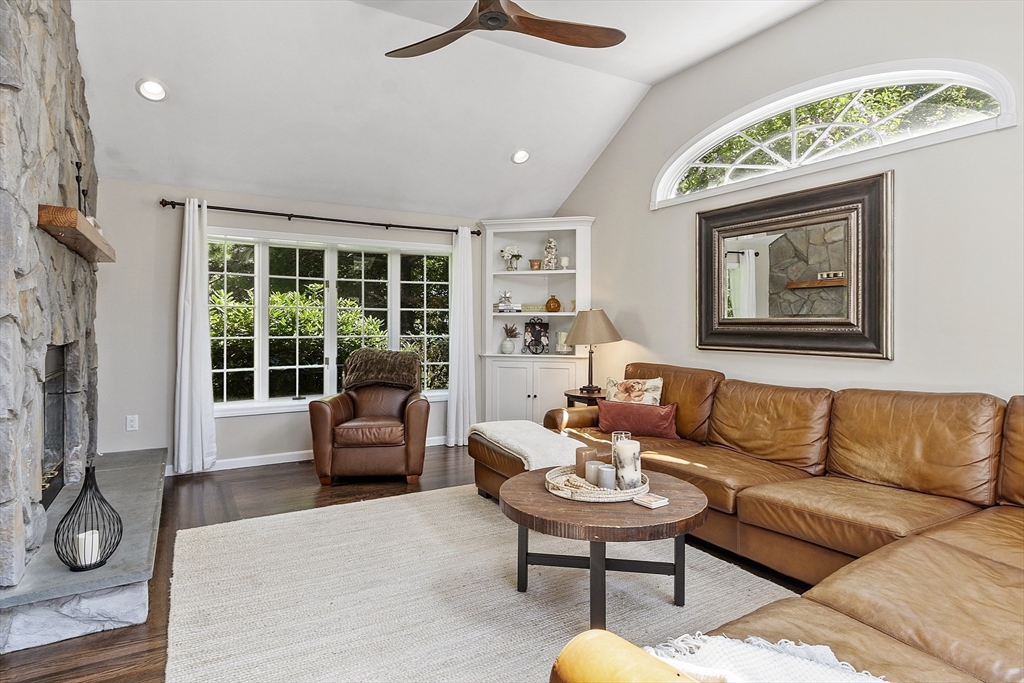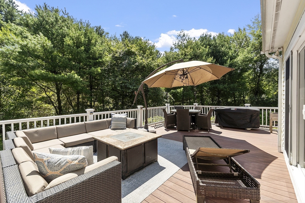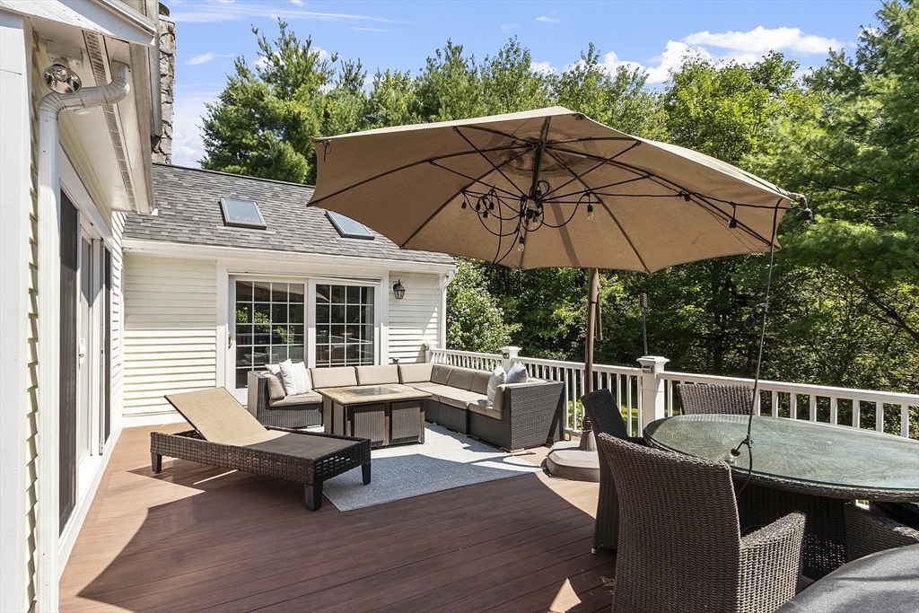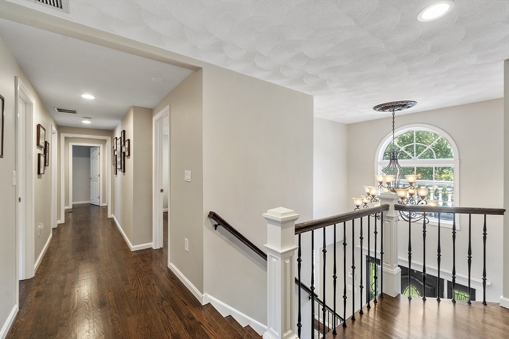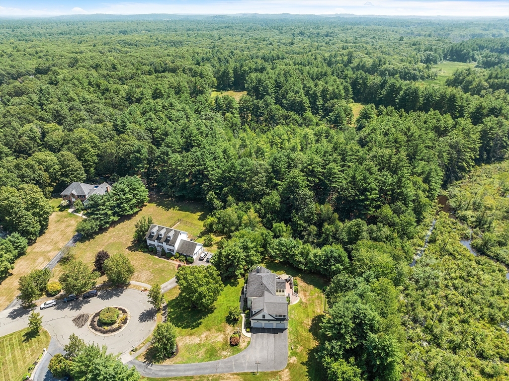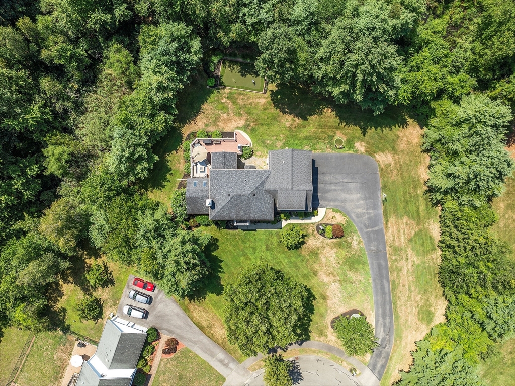 Stunning home at Cul-de-Sac end 1.95 Acres of Privacy & Beauty.Step inside to stunning floor plan that seamlessly blends open-concept living w/ timeless elegance. At the heart of the home is an exquisite white kitchen, a true chef's dream,featuring 6 burner gas stove, custom cabinetry, quartz island & separate coffee bar. The Great room impresses w/ vaulted ceilings & dramatic floor to ceiling two-sided stone fireplace also enjoyed from elegant dining room.Cozy family room wrapped w/ windows provide perfect spot to relax & unwind w/ direct access to large deck that overlooks private backyard oasis complete with putting green for home fun! All bedrooms are generously sized, including private primary suite located in its own wing,added just 13 years ago. A sunlit home office on 2nd level offers the ideal work from home setup. Partially finished lower level includes theater/sportsroom, exercise areas adding versatile space for every lifestyle need.3 car garage for your sporty needs!