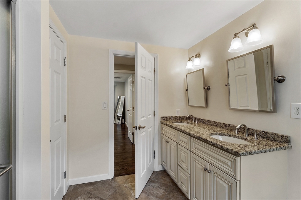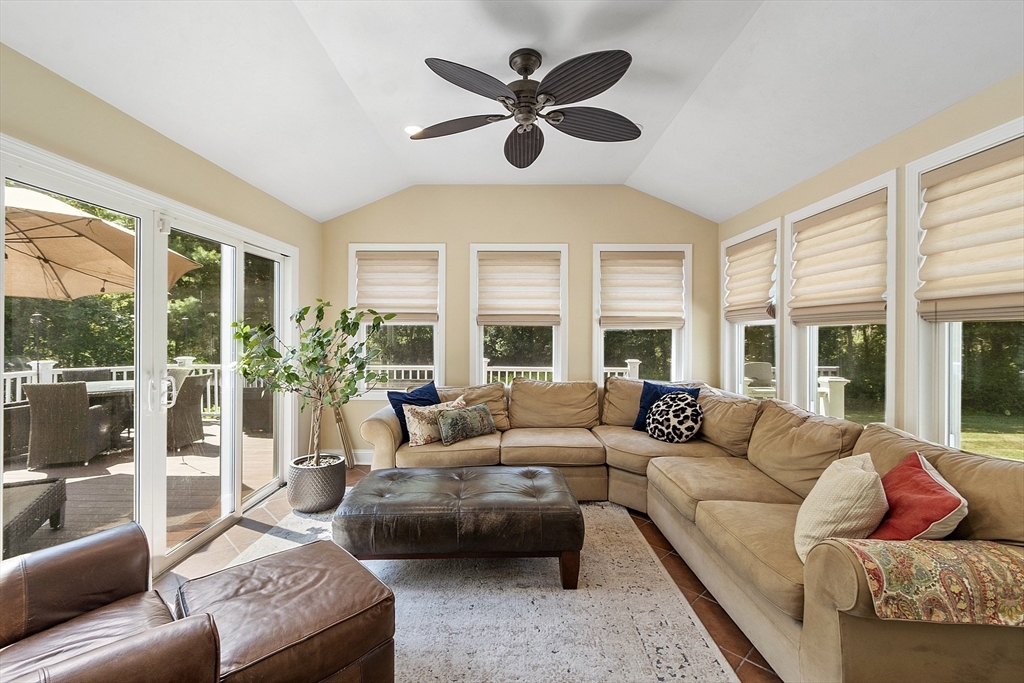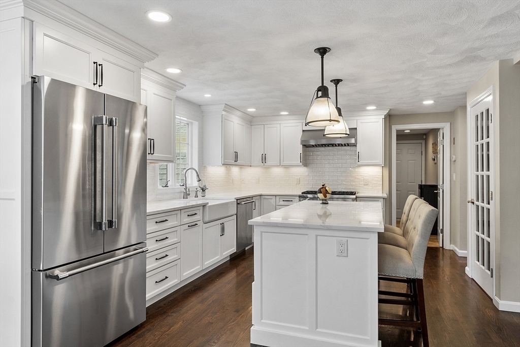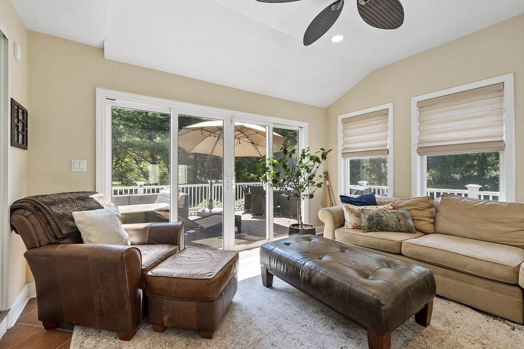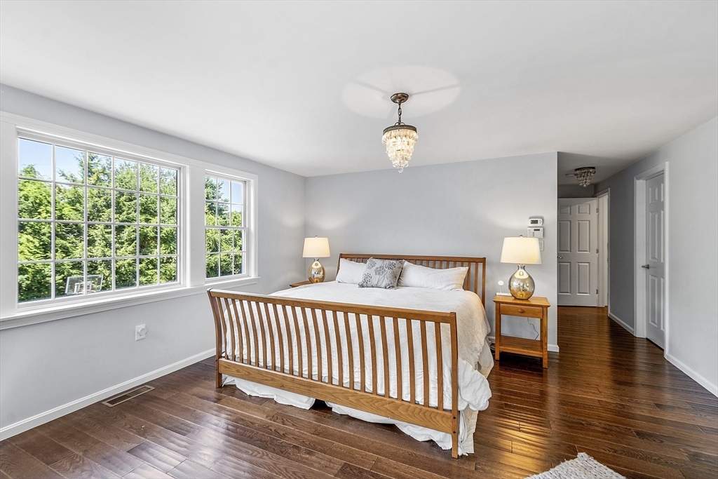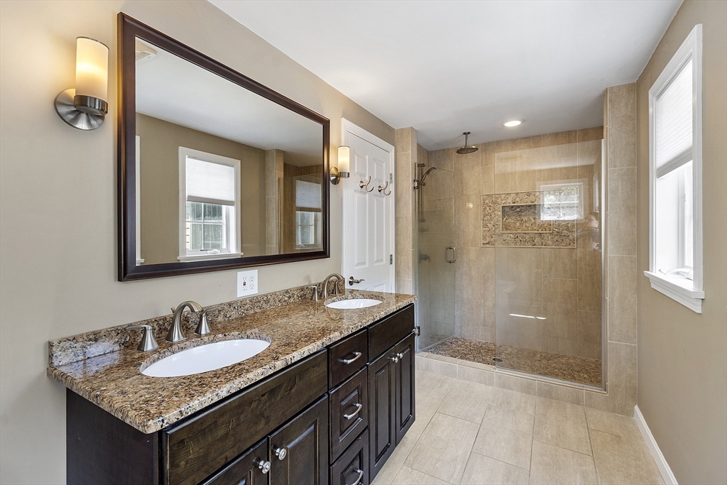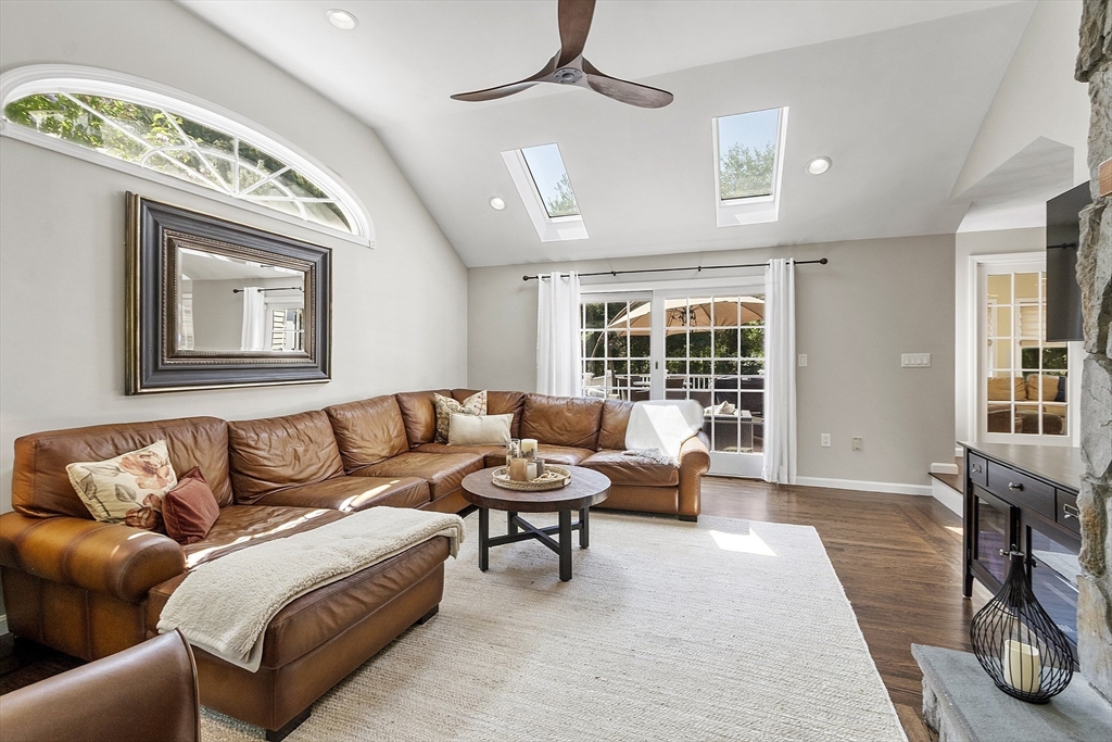 Stunning home at Cul-de-Sac end 1.95 Acres of Privacy & Beauty.Step inside to stunning floor plan that seamlessly blends open-concept living w/ timeless elegance. At the heart of the home is an exquisite white kitchen, a true chef's dream,featuring 6 burner gas stove, custom cabinetry, quartz island & separate coffee bar. The Great room impresses w/ vaulted ceilings & dramatic floor to ceiling two-sided stone fireplace also enjoyed from elegant dining room.Cozy family room wrapped w/ windows provide perfect spot to relax & unwind w/ direct access to large deck that overlooks private backyard oasis complete with putting green for home fun! All bedrooms are generously sized, including private primary suite located in its own wing,added just 13 years ago. A sunlit home office on 2nd level offers the ideal work from home setup. Partially finished lower level includes theater/sportsroom, exercise areas adding versatile space for every lifestyle need.3 car garage for your sporty needs!