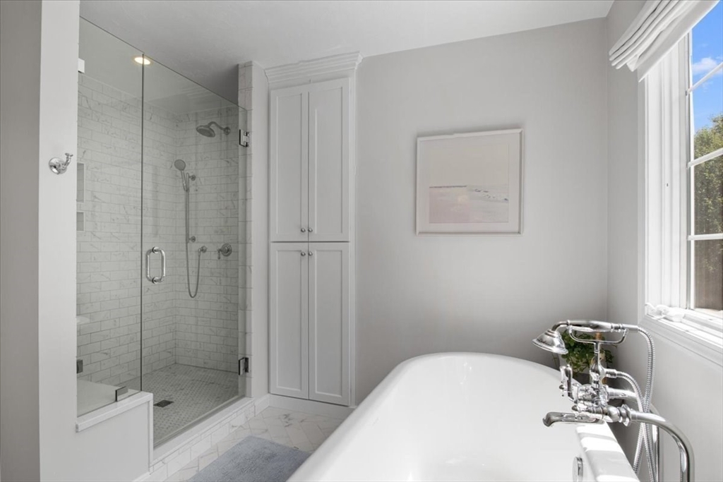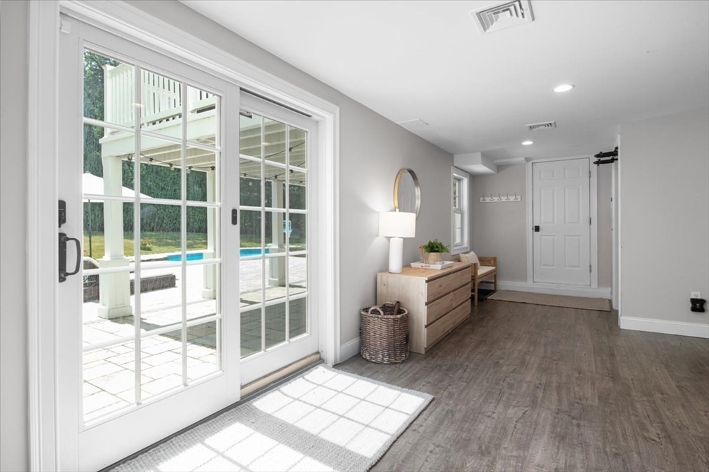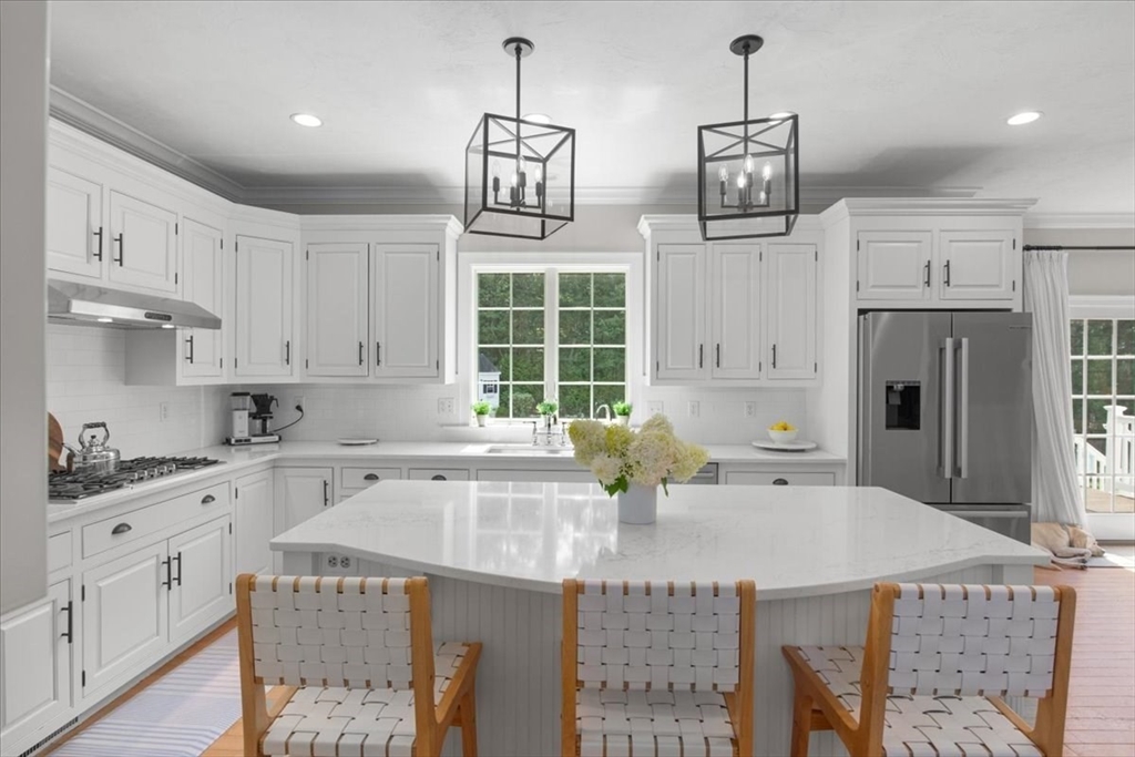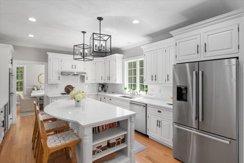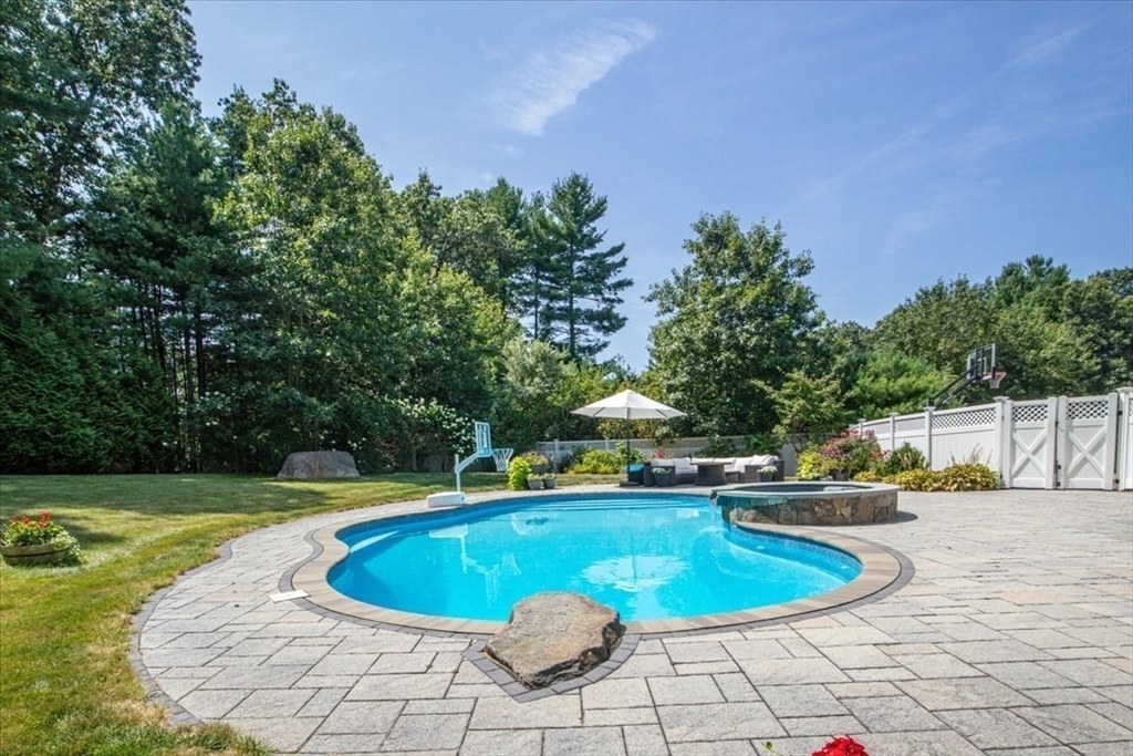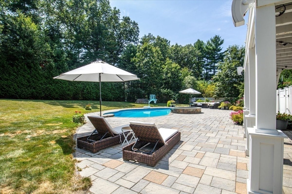 Tucked away in one of Norfolk’s most desirable neighborhoods, this beautifully maintained home blends modern updates with timeless charm. Step inside to a bright, open floor plan with a spacious living room featuring custom built-ins, gleaming hardwoods, and an inviting dining area. The updated kitchen offers granite countertops, stainless appliances, an oversized island, dry bar, walk-in pantry, and ample cabinetry. Upstairs, discover generously sized bedrooms, including a serene primary suite with two custom closets and a renovated spa-like bath. A convenient upstairs laundry adds function. Outdoors, enjoy a large deck, heated saltwater pool with spa, and manicured grounds ideal for entertaining or relaxing. A full-house Koehler generator ensures peace of mind. Nestled on a quiet cul-de-sac, this home provides privacy and tranquility while remaining close to Norfolk’s town center, commuter rail, schools, and local amenities.