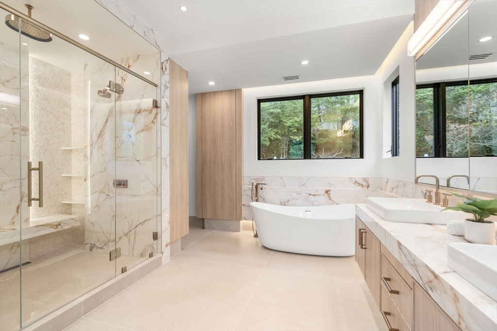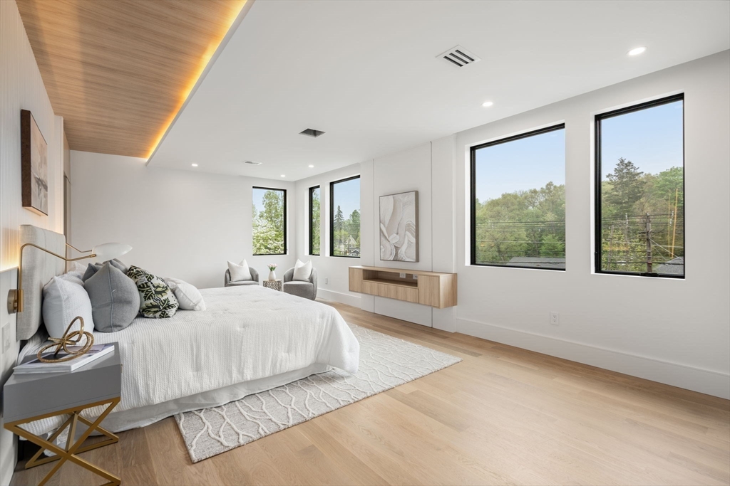 Packed with Luxury! This exceptional 5-bedroom, 5-bathroom home blends thoughtful design with high-end finishes throughout. Perfect for those seeking minimal exterior maintenance. A bright, open floor plan with soaring ceilings and oversized windows creates a welcoming atmosphere perfect for modern living and entertaining. The chef’s kitchen features premium appliances, custom cabinetry, and elegant countertops, flowing seamlessly into the living and dining areas. A versatile main-level bedroom with full bath is ideal for guests or home office use. Upstairs, the luxurious primary suite offers a spa-like bath with soaking tub and glass-enclosed shower, plus generous closet space. Additional highlights include a finished lower level, attached 2-car garage, mudroom, and ample storage. Located minutes from Newton Centre, Newton Highlands, Chestnut Hill, and top-rated schools. Incredible opportunity for immediate equity.