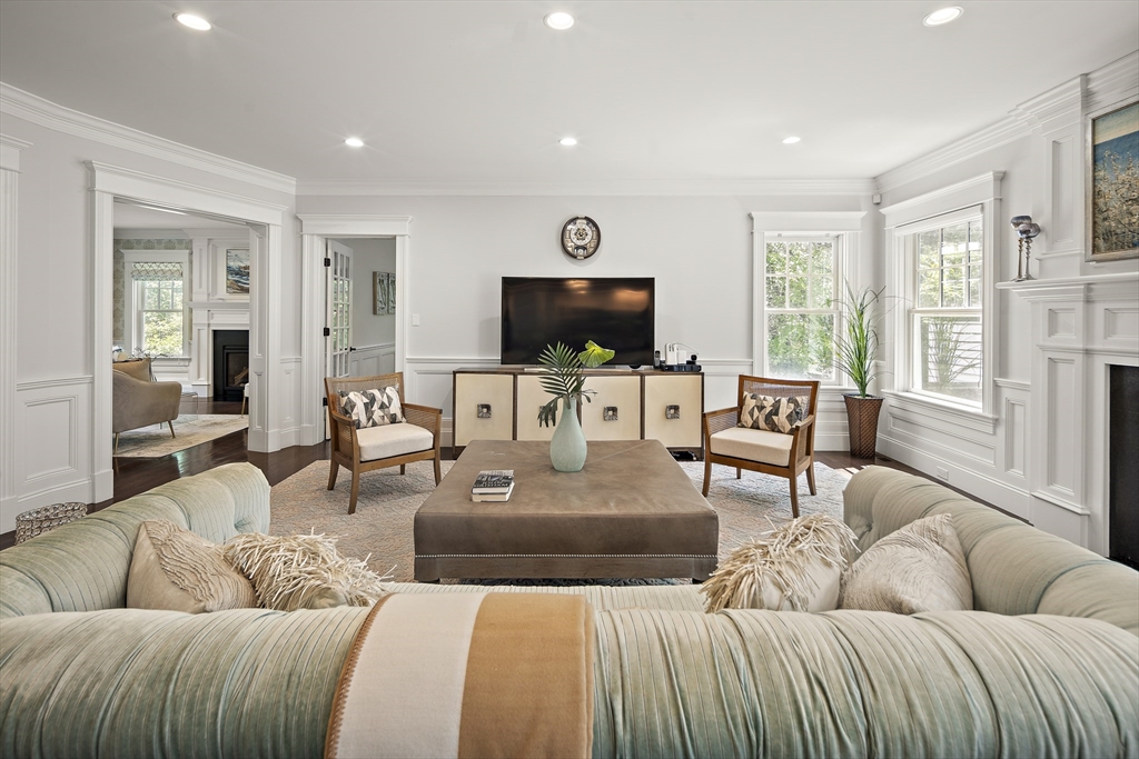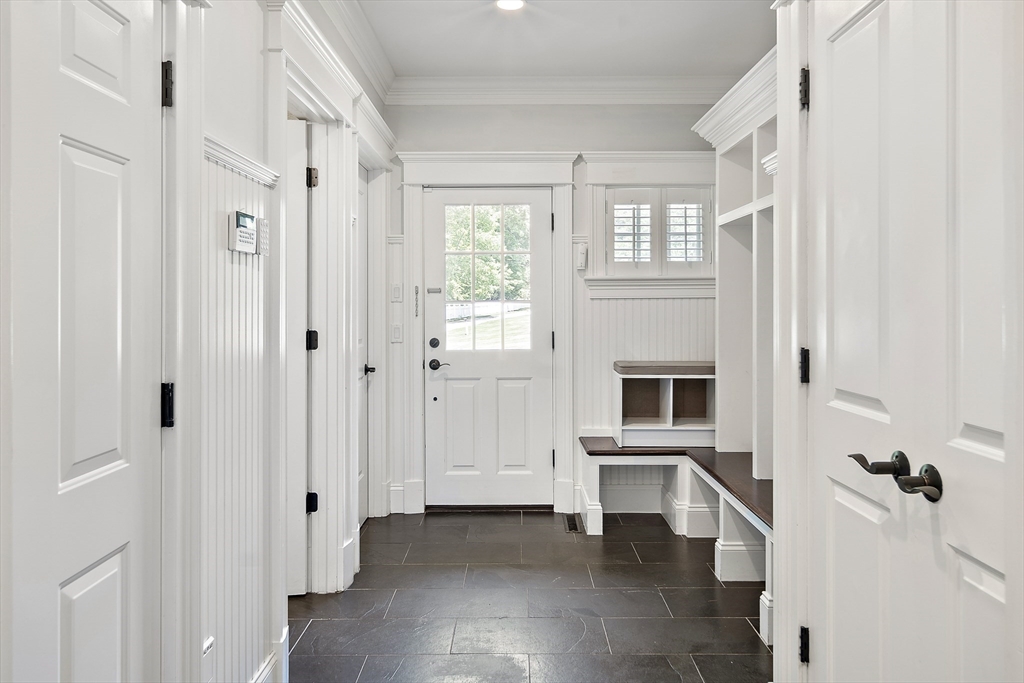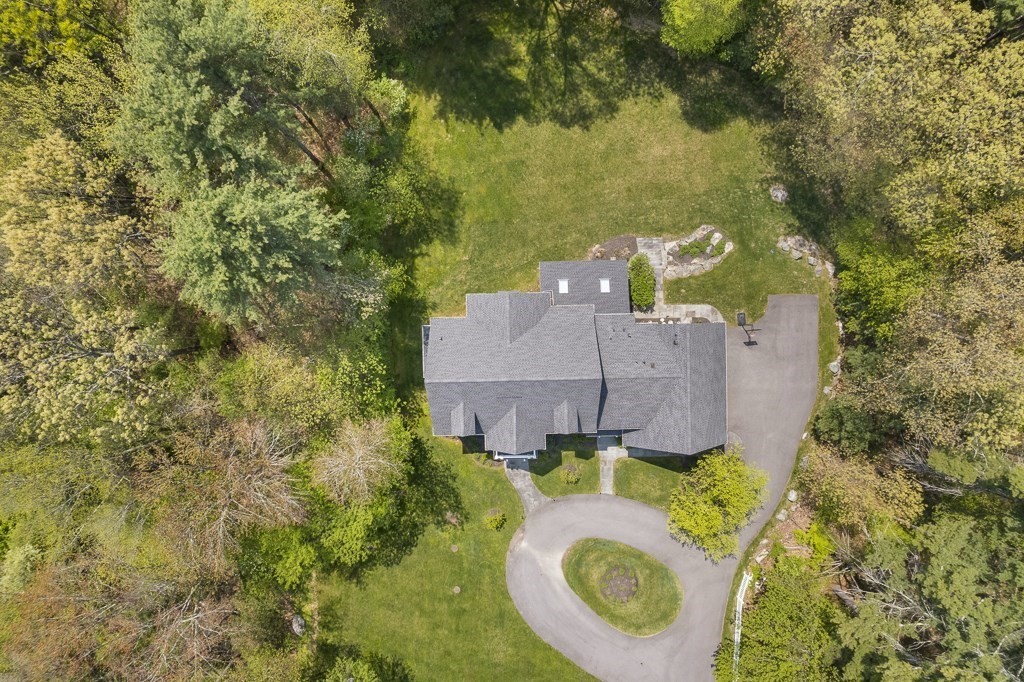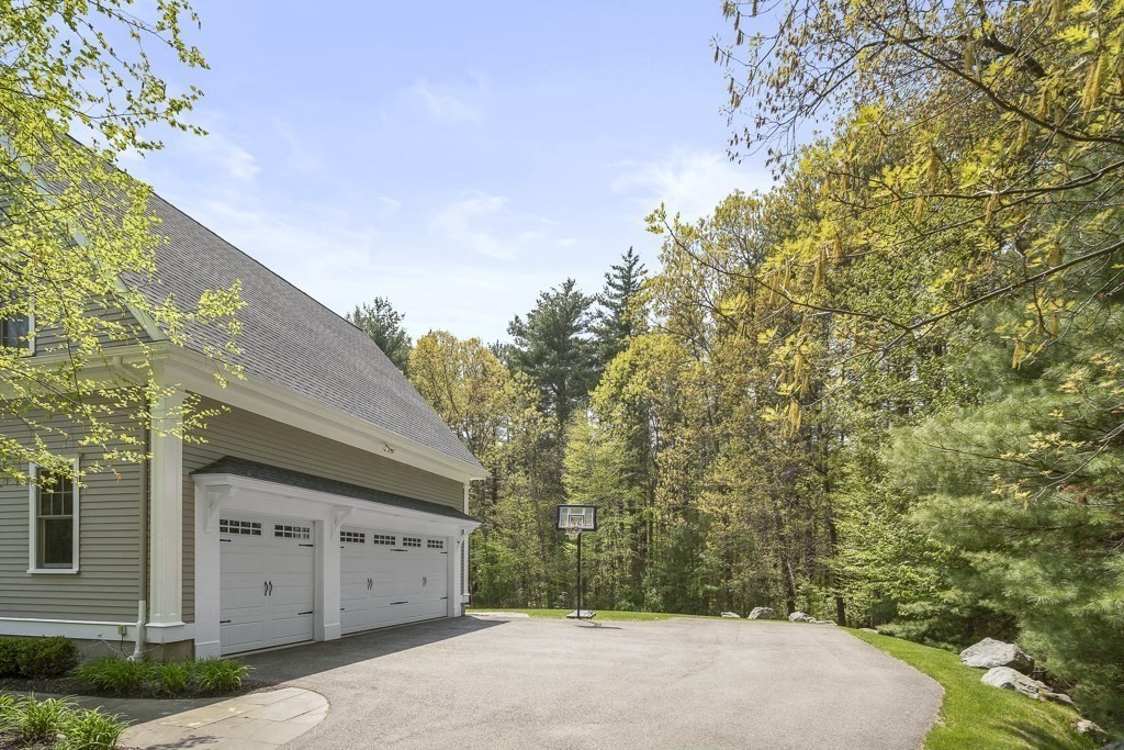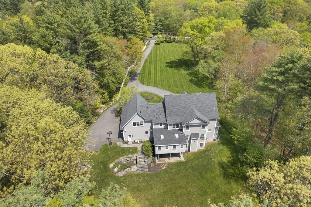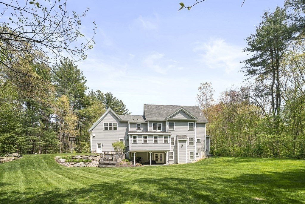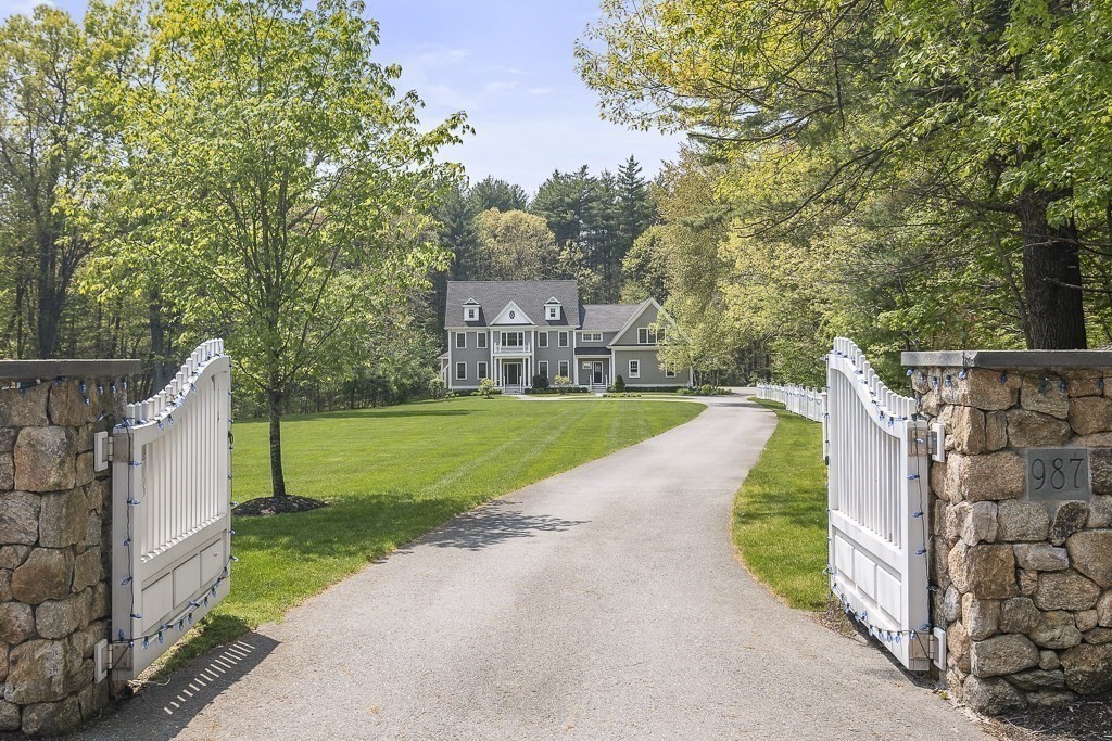 Perched on 3.68 secluded acres, this estate is approached via a grand driveway, ensuring privacy and tranquility. The STUNNING residence captivates with its striking curb appeal and sprawling grounds. Built by a renowned local craftsman, the home features a gourmet kitchen outfitted with high-end cabinetry, top-tier appliances, and luxurious countertops. Elegant architectural details abound, including custom millwork, built-ins, crown molding, wainscoting, and a coffered ceiling, all set within a thoughtfully designed open layout tailored for sophisticated buyers. Premium finishes shine throughout. Enhanced with Smart Home Technology and Indoor AirPlus certification, this home effortlessly blends modern innovation with refined living. Bordering conservation land with access to scenic trails, it offers a serene retreat into nature. Ample space allows for a pool, cabana, and guest house, while the walk-out lower level impresses with 9-ft ceilings and expansive windows
