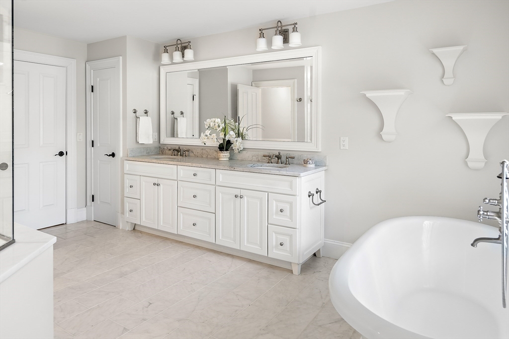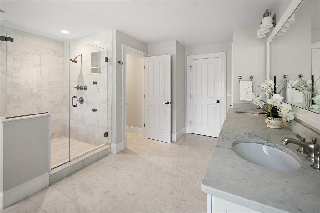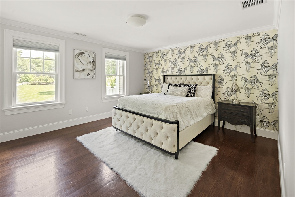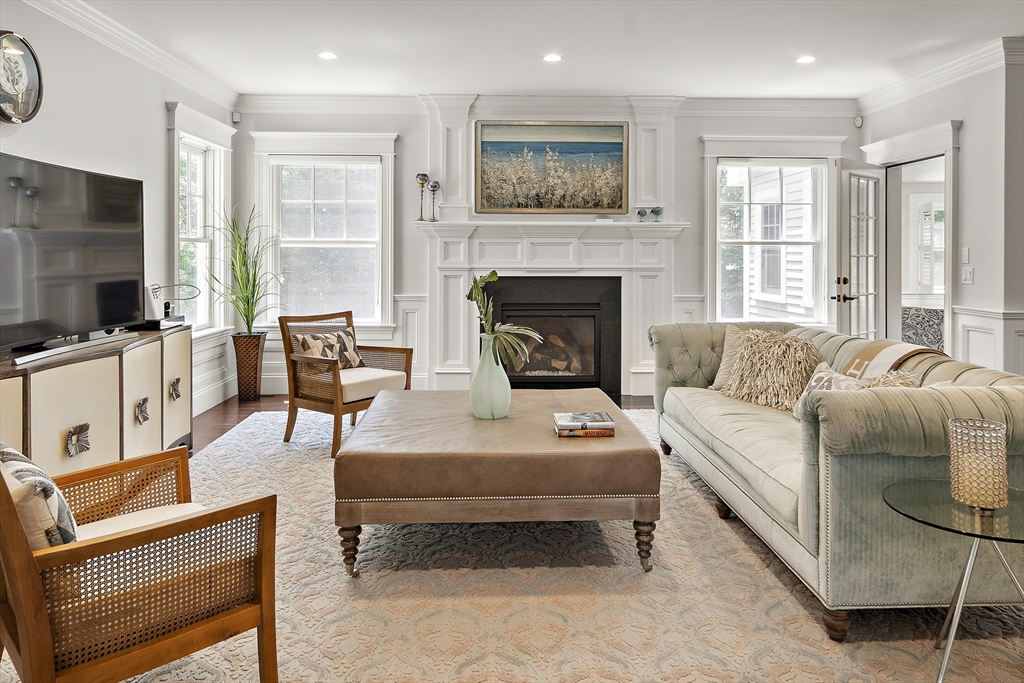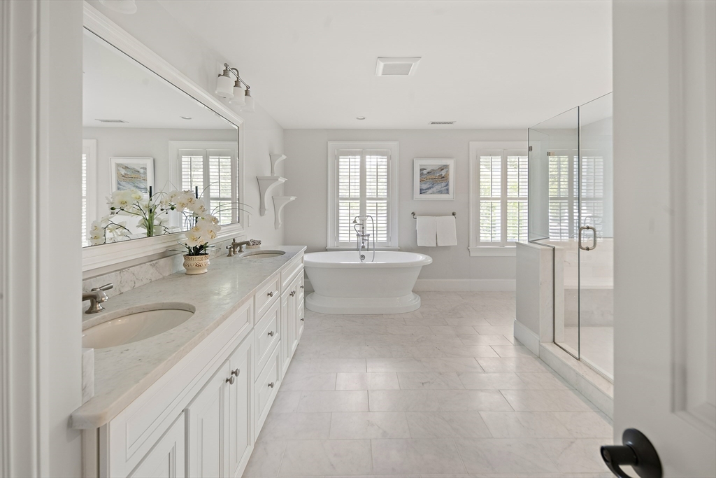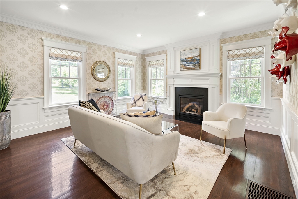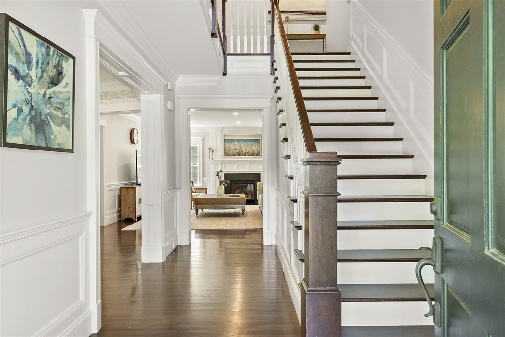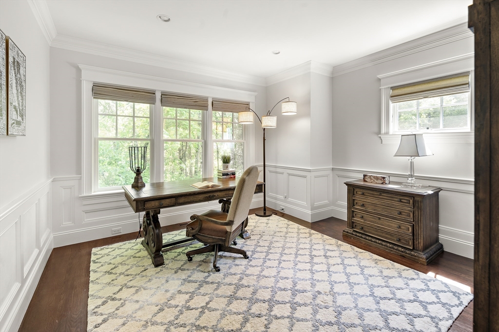 Perched on 3.68 secluded acres, this estate is approached via a grand driveway, ensuring privacy and tranquility. The STUNNING residence captivates with its striking curb appeal and sprawling grounds. Built by a renowned local craftsman, the home features a gourmet kitchen outfitted with high-end cabinetry, top-tier appliances, and luxurious countertops. Elegant architectural details abound, including custom millwork, built-ins, crown molding, wainscoting, and a coffered ceiling, all set within a thoughtfully designed open layout tailored for sophisticated buyers. Premium finishes shine throughout. Enhanced with Smart Home Technology and Indoor AirPlus certification, this home effortlessly blends modern innovation with refined living. Bordering conservation land with access to scenic trails, it offers a serene retreat into nature. Ample space allows for a pool, cabana, and guest house, while the walk-out lower level impresses with 9-ft ceilings and expansive windows