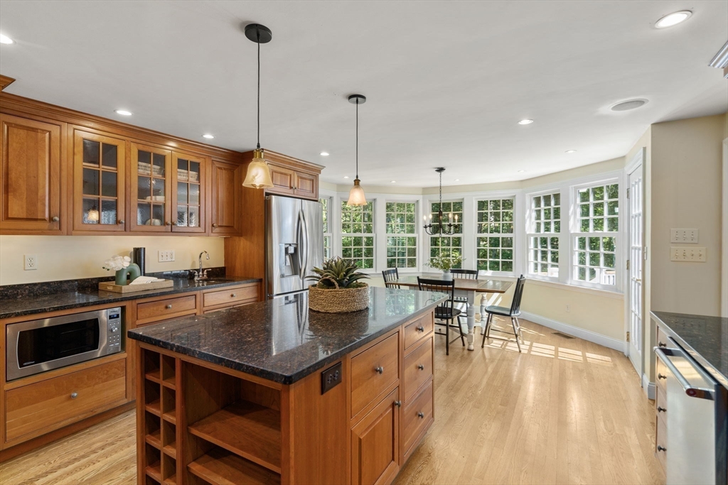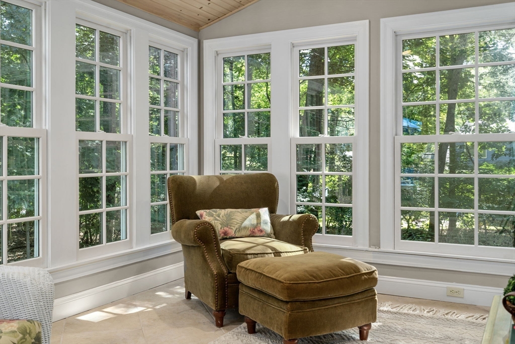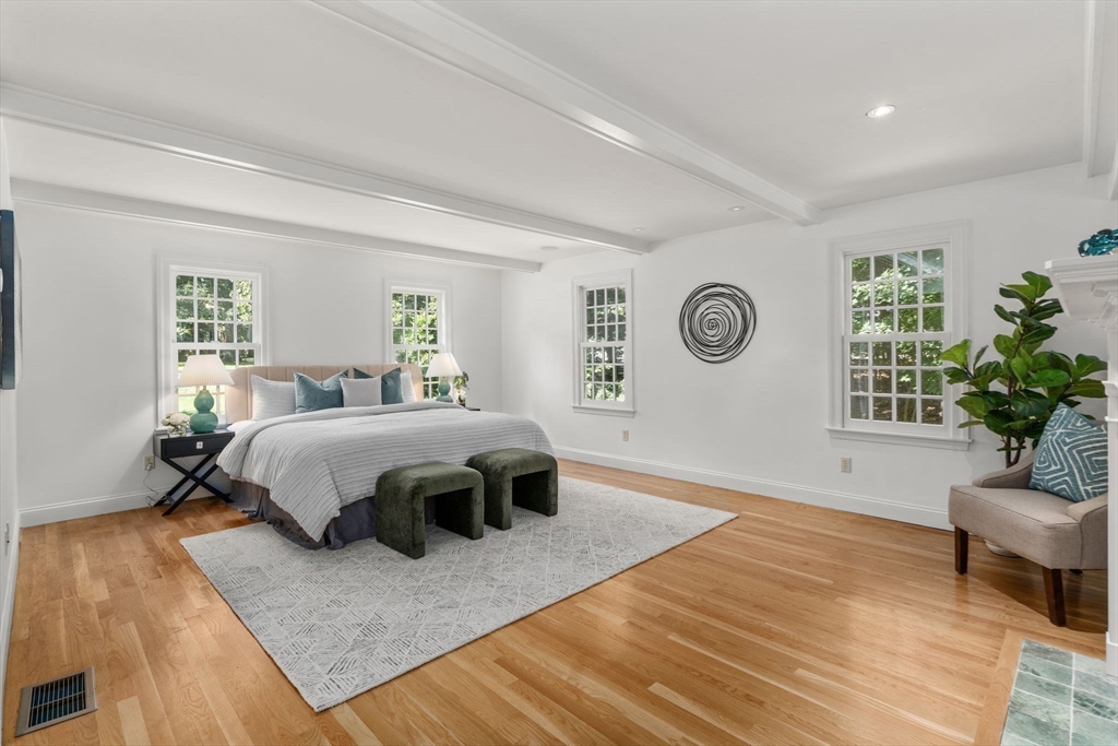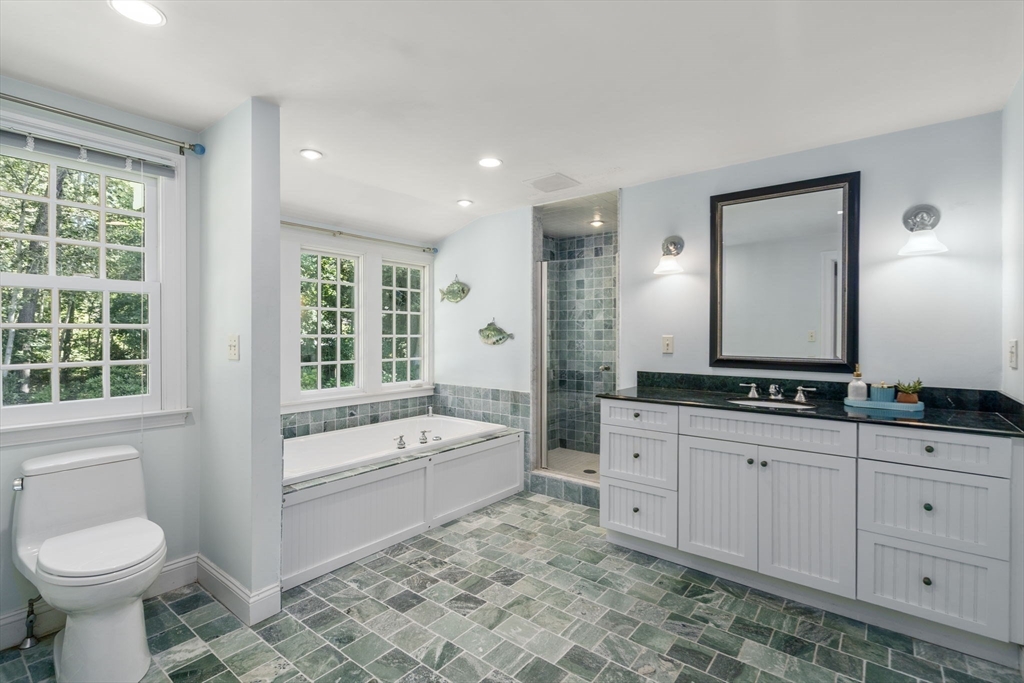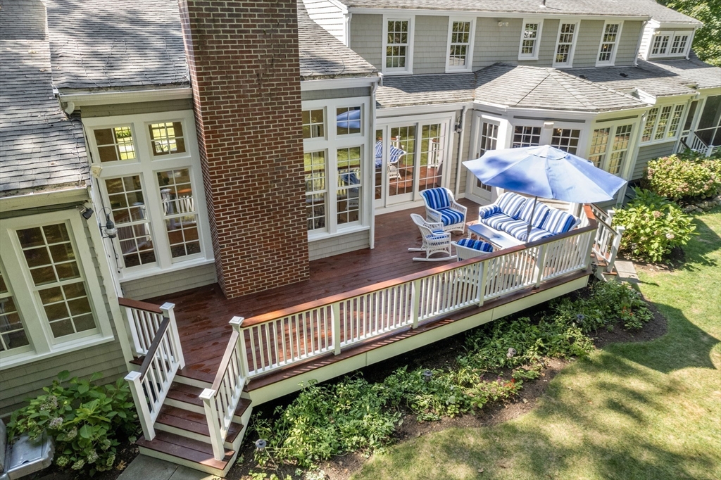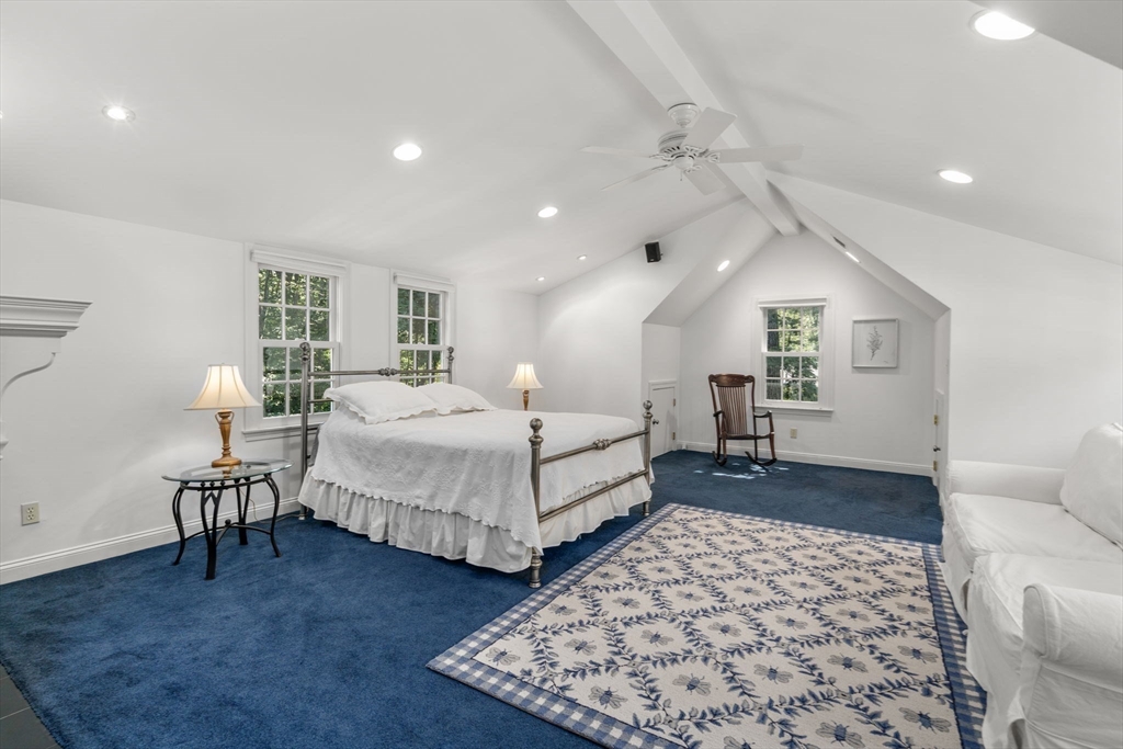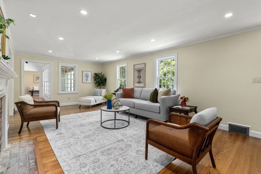 Stunning Architect-Designed Estate Home in south Wayland. Experience luxury in this 2004 fully renovated and expanded estate home on 29,800 sq ft of landscaped grounds. Enjoy a walk-to-everything lifestyle in a sought-after neighborhood. With over 4,500 sq ft of living space, including 2,700 sq ft on the main level, this home features 5 bedrooms, 4 bathrooms, and 5 fireplaces. Flexible living spaces include a grand family room with a cathedral ceiling and dramatic fieldstone fireplace, a chef's kitchen with premium appliances, and a stunning sunroom with floor-to-ceiling windows. Beautiful primary bedrooms on both floors, each with a fireplace, create a private sanctuary. Bonus/office room adds charm. The home boasts over 70 premium windows, a new hydro air HVAC system, a whole-house stereo, and mahogany porches and deck. Walk to ALL schools, town pool, trails, eateries & minutes to major commuter routes. The architecturally designed layout maximizes space and flexible family living.