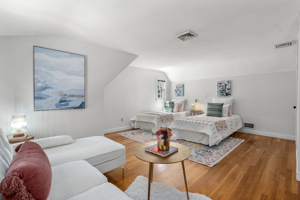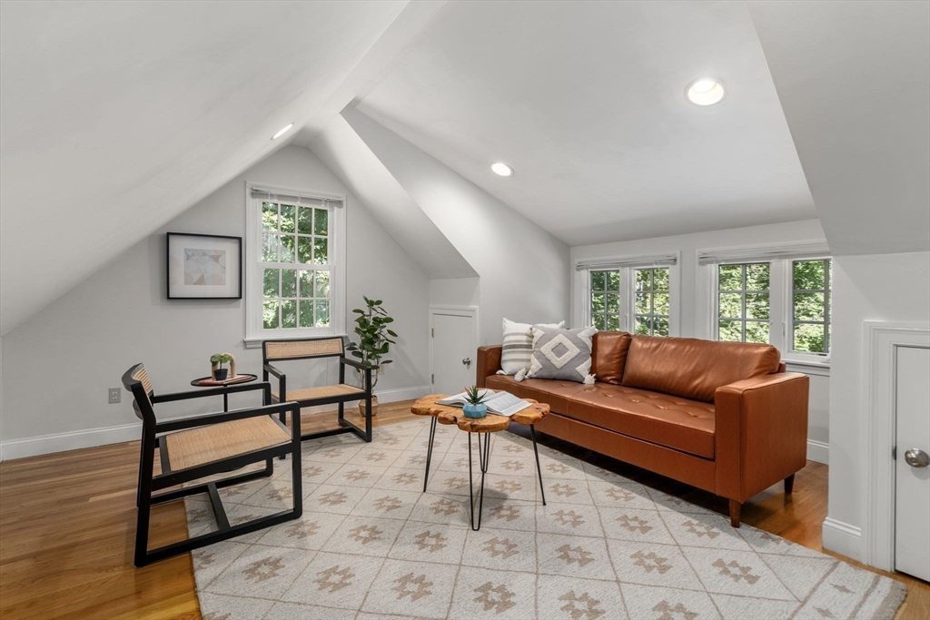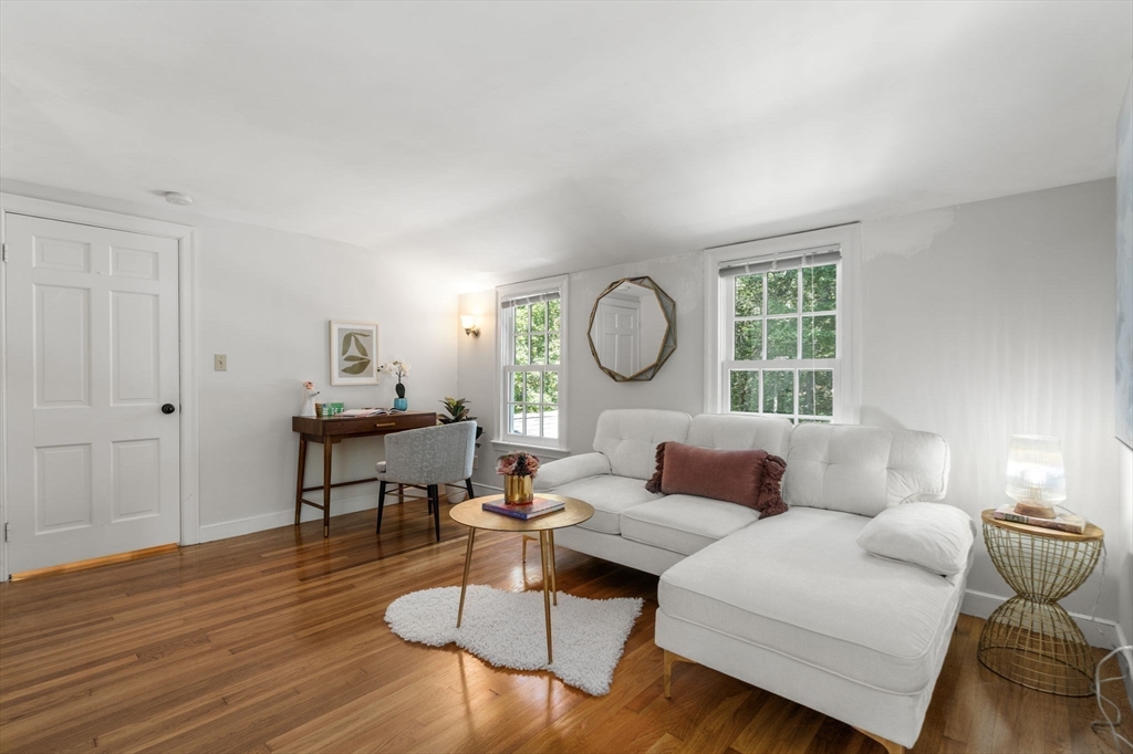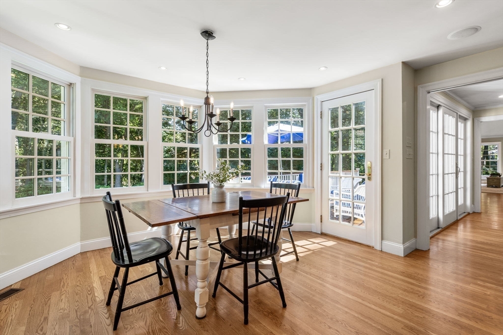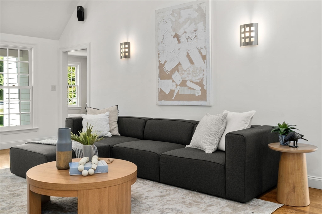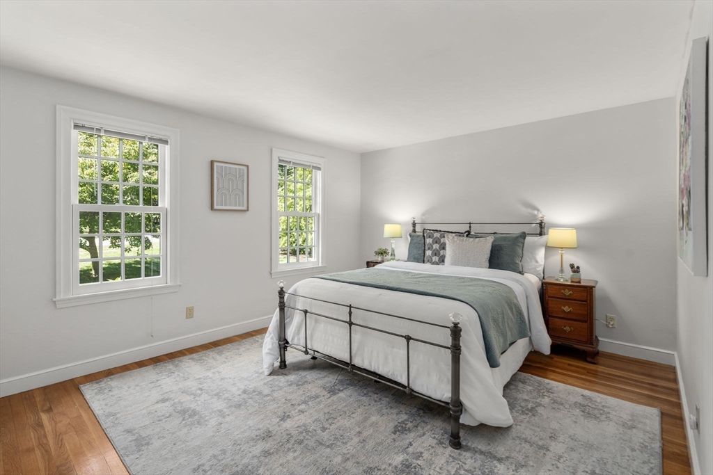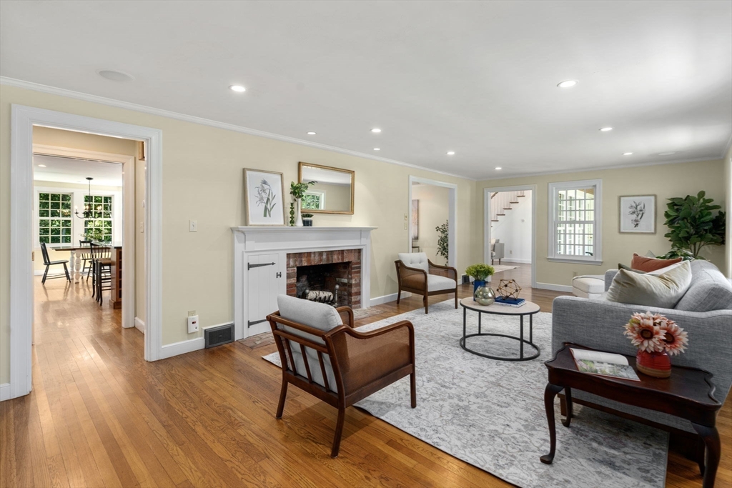 Stunning Architect-Designed Estate Home in south Wayland. Experience luxury in this 2004 fully renovated and expanded estate home on 29,800 sq ft of landscaped grounds. Enjoy a walk-to-everything lifestyle in a sought-after neighborhood. With over 4,500 sq ft of living space, including 2,700 sq ft on the main level, this home features 5 bedrooms, 4 bathrooms, and 5 fireplaces. Flexible living spaces include a grand family room with a cathedral ceiling and dramatic fieldstone fireplace, a chef's kitchen with premium appliances, and a stunning sunroom with floor-to-ceiling windows. Beautiful primary bedrooms on both floors, each with a fireplace, create a private sanctuary. Bonus/office room adds charm. The home boasts over 70 premium windows, a new hydro air HVAC system, a whole-house stereo, and mahogany porches and deck. Walk to ALL schools, town pool, trails, eateries & minutes to major commuter routes. The architecturally designed layout maximizes space and flexible family living.