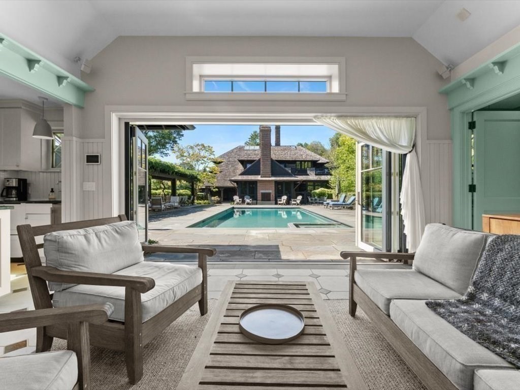 Tucked away, this extraordinary 2.45-acre estate perfectly captures the essence of refined coastal living. A rare offering, the property combines serene privacy with sophisticated design, making it equally ideal as a private retreat or an exceptional family compound. The main residence exudes timeless charm, thoughtfully blending original architectural details with modern amenities. Enjoy sweeping views of rolling lawns and a wisteria-covered trellis. Inside, you’ll find beautifully appointed living spaces and a chef’s kitchen designed for both function and style. The home offers four spacious bedrooms, each with its own en-suite bath, creating a sense of comfort and retreat for family and guests alike. Beyond the main house, the estate features a luxurious pool house with a working greenhouse that overlooks the pool and gardens, an outdoor shower, and a private entrance to a separate au pair suite—ideal for extended family or guests. This is truly a once-in-a-lifetime opportunity!