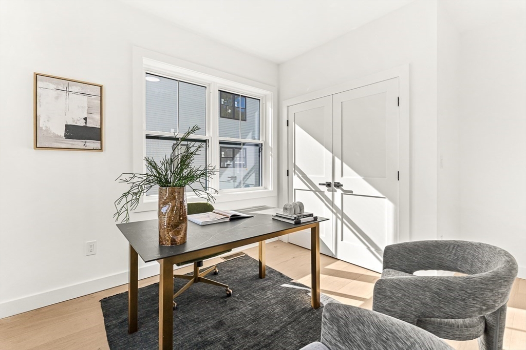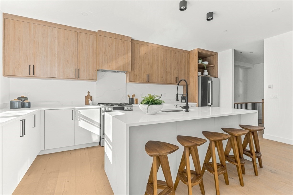 Introducing a stunning front, south facing new construction attached single/townhome by the esteemed TreeTop Group, offering 6 beds and 4 full baths across a refined four-level layout. The open-concept main level impresses with soaring ceilings and a chef’s kitchen featuring a large center island with waterfall quartz countertops, premium stainless steel appliances, and abundant cabinet storage. Overlooking the main living space, the second floor offers 4 spacious bedrooms, 2 full baths, laundry, and oversized windows that fill the home with natural light. The primary suite showcases a custom walk-in closet and spa-like bath w/ soaking tub and tiled walk-in shower. A finished third floor provides a flexible retreat, while the fully finished basement includes a recreation room, full bath, and guest bedroom. Outdoor living shines w/ a private, fenced side yard, and the heated two-car garage with 14ft high ceilings. Ideally located across from Sylvan St. Park and minutes from Oak Grove.