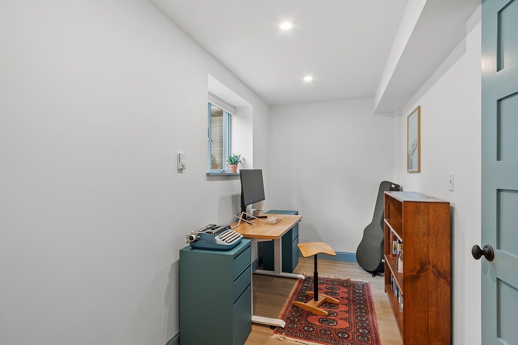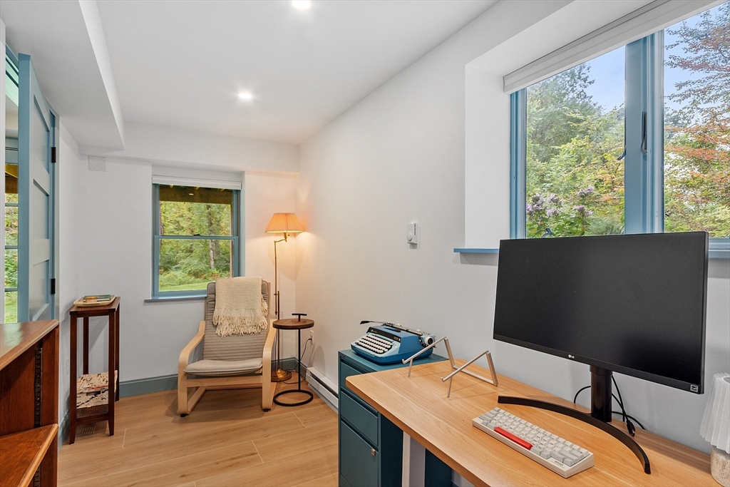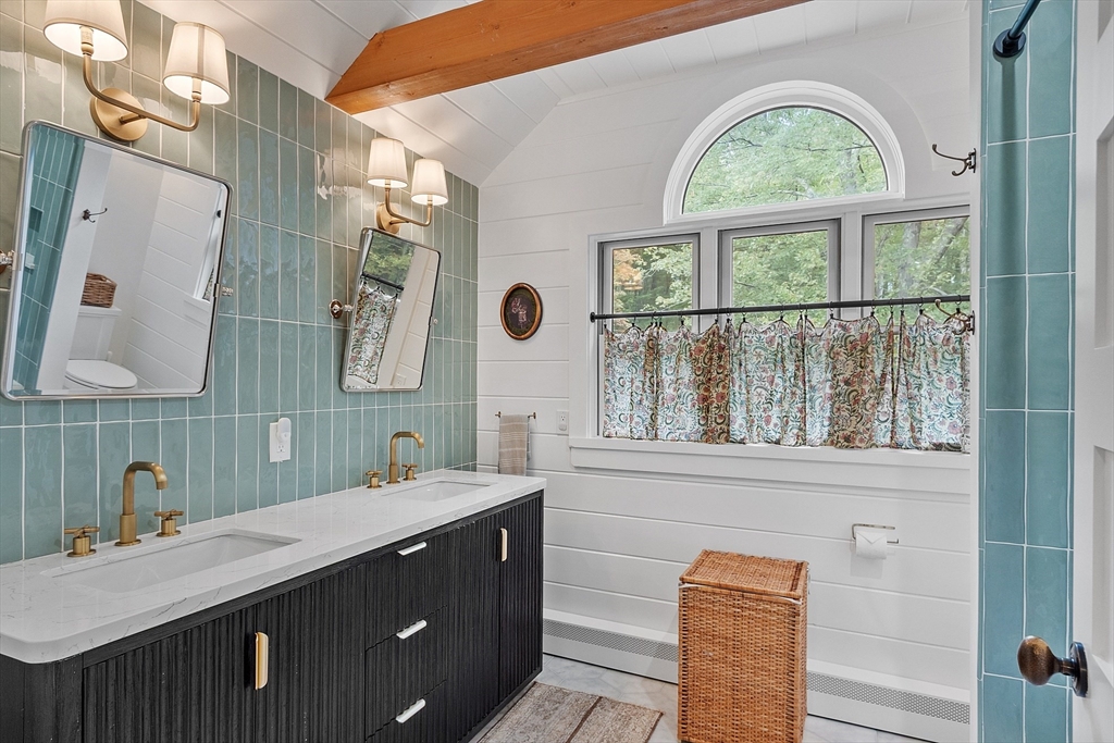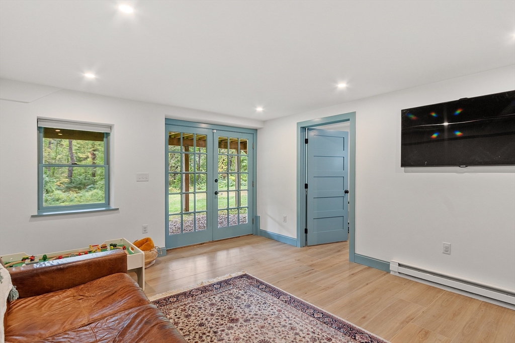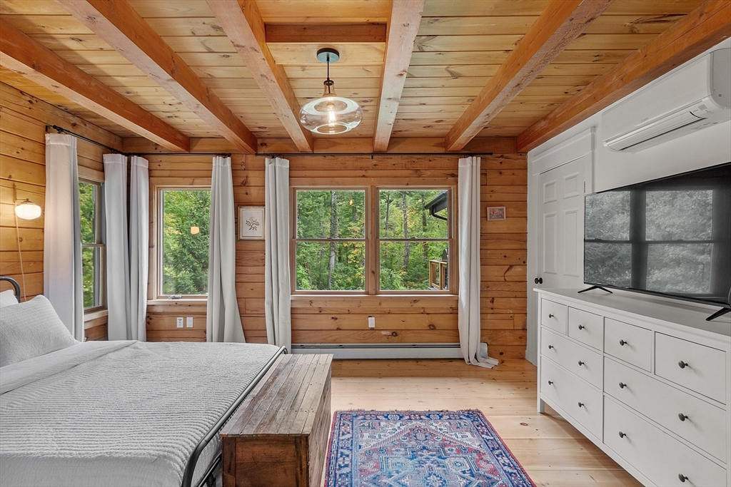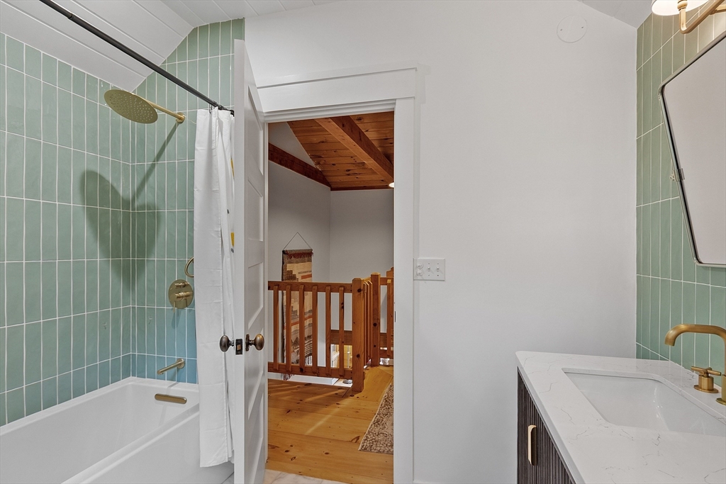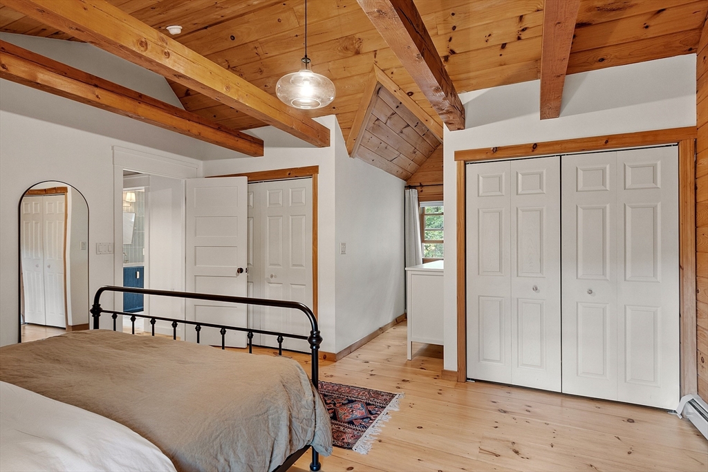 This beautifully reimagined post-and-beam log home offers timeless design with thoughtful modern enhancements. The striking kitchen features granite counters, a premium Viking oven and dishwasher, and blends seamlessly with the home’s natural charm. A spacious first-floor primary suite includes a luxurious bath with shower, double vanity, and quartz countertops. Upstairs, the full bath features elegant marble countertops. Refinished hardwood floors run throughout, and the dramatic log-beam living room is anchored by a cozy fireplace. The finished basement adds valuable living space with a home office and playroom. Enjoy the welcoming farmer’s porch or entertain on the back deck overlooking a peaceful yard. Extensive updates throughout, including a new roof and new water treatment system. Nestled on a scenic lot just a short walk from conservation trails and the Ryan playing fields, this home offers convenient access to major commuter routes and the highly rated Harvard school system.