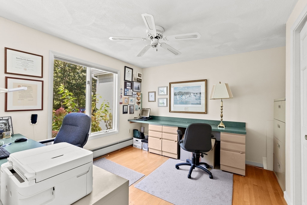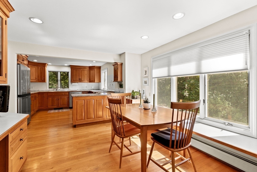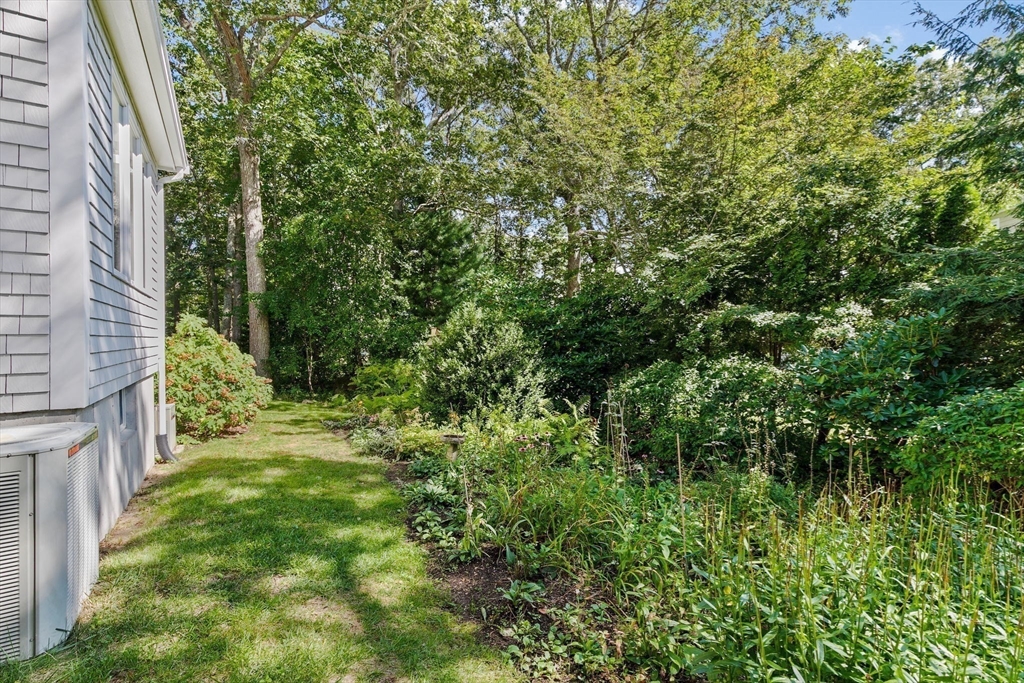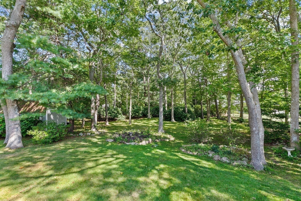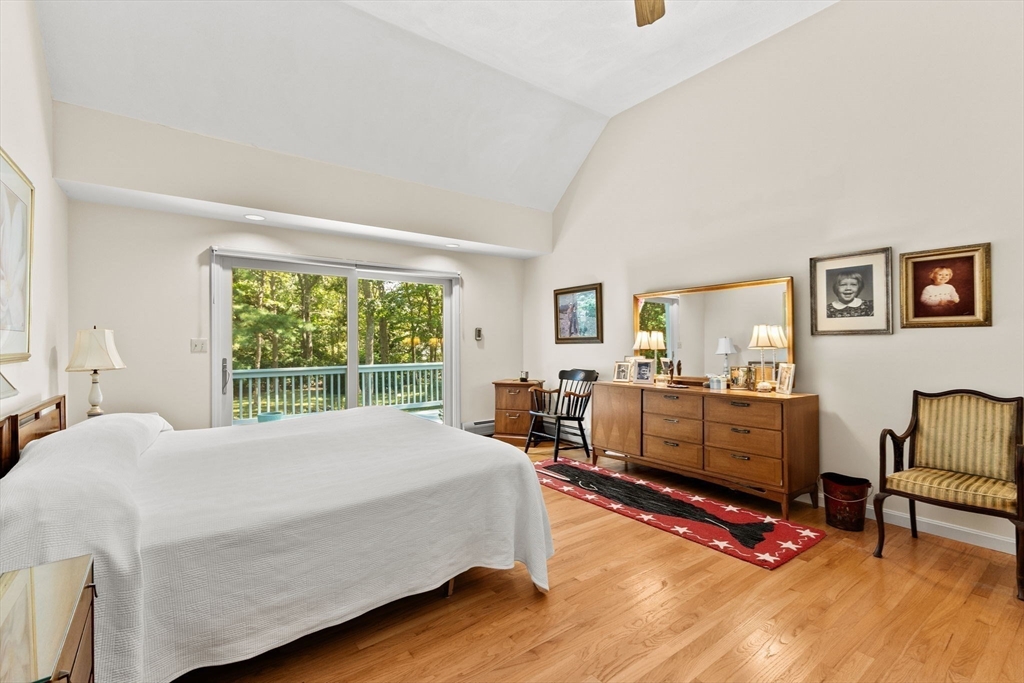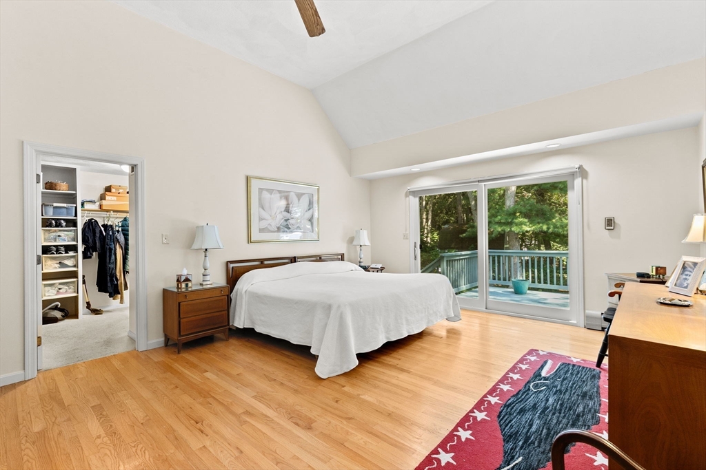 Privacy abounds in this well-maintained contemporary Cape located in the desirable Point Connet community. Offering 4 bedrooms and 3 baths, including a first-floor primary suite with en suite bath, the home features vaulted ceilings, sun-filled spaces, a cozy fireplace, cherry wood built-ins, and ample storage. The park-like grounds invite you to step outside, with a spacious deck overlooking a private backyard—perfect for relaxing, entertaining, or enjoying nature. Recent updates include a new roof, furnace, hot water heater, granite entry stairs with railing, new bulkhead, and freshly painted exterior. A two-car garage and location outside a flood zone add peace of mind. Discover the timeless charm of Point Connett, the sandy beach is just a stroll away, nearby are the newly refurbished tennis/pickleball courts, and just outside of the association enjoy the land trust walking trails.