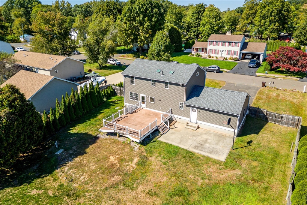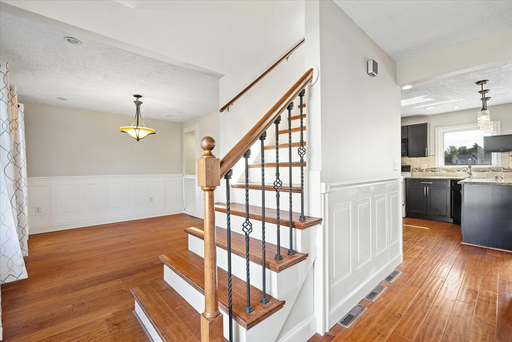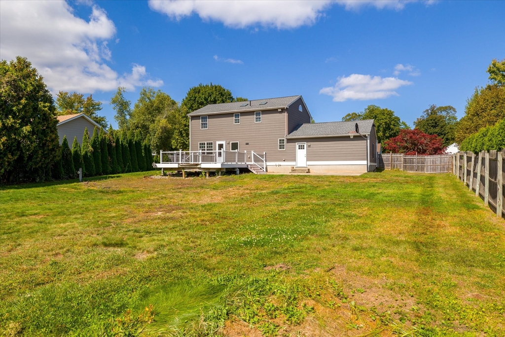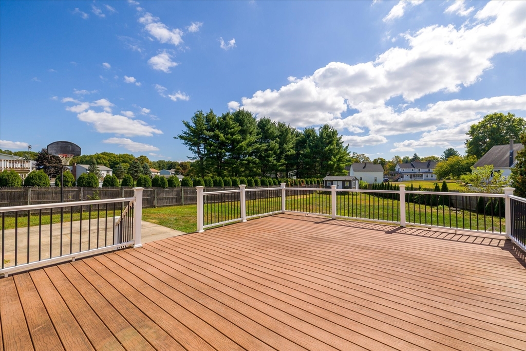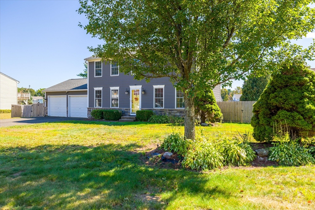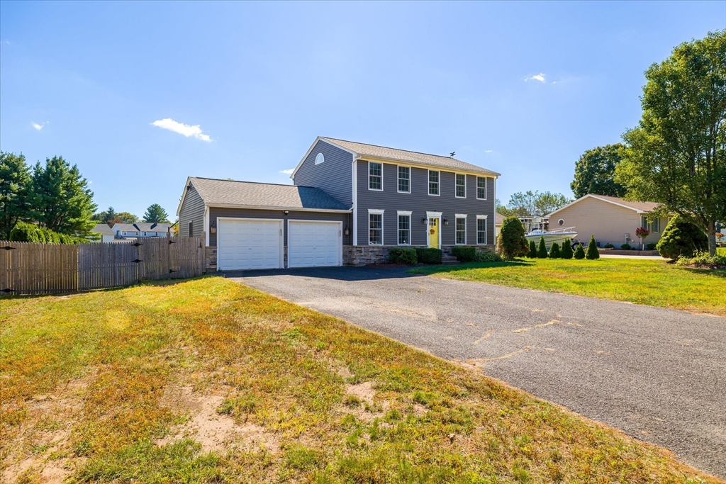 Welcome to 30 Rising Street in Feeding Hills, MA! This 3-bedroom, 2.5-bath Colonial blends charm with modern comfort. Enjoy hardwood floors throughout, a sun-filled living room, and a formal dining room with classic wainscoting. The spacious kitchen features stone counters and opens to the backyard with a large composite deck, complete with extra footing to allow for enclosure if desired—perfect for entertaining! The main level also includes a convenient half bath with laundry. Upstairs, the primary suite boasts a lofted ceiling with beams, a walk-in closet, and a private bath, while two additional bedrooms share a full hall bath. The finished basement offers endless possibilities for a media room, playroom, gym, or office. Additional highlights include an attached 2-car garage, a spacious fenced backyard, and a newer shed. With updates including the roof, siding, windows, garage doors, bathroom skylights, and more, all that’s left to do is move in! Schedule your showing today!
