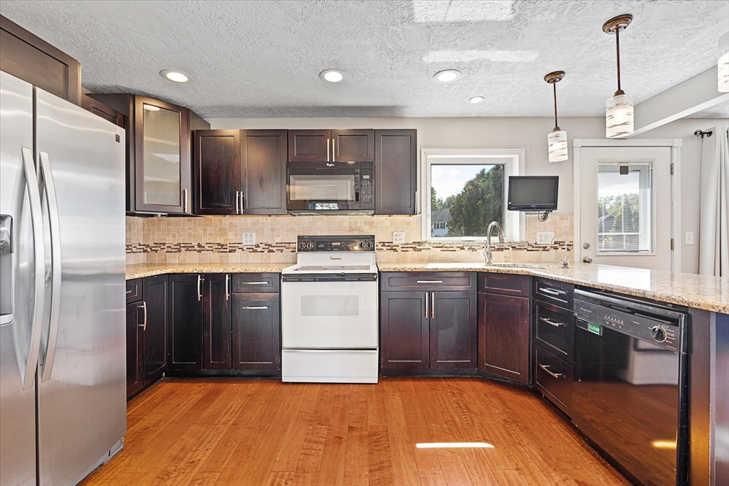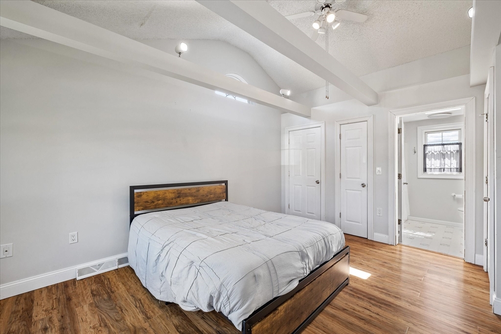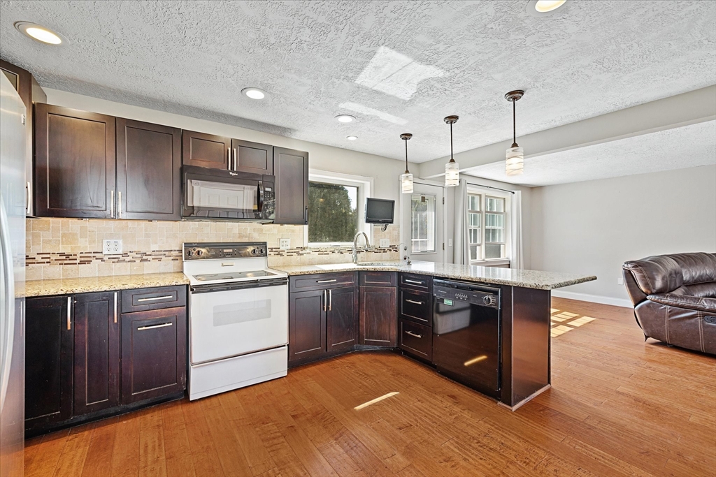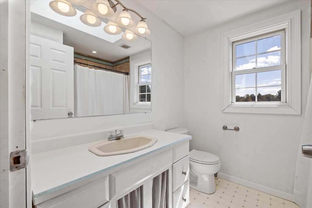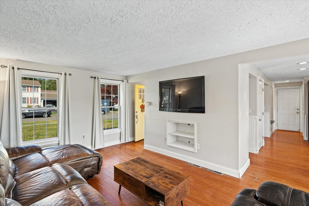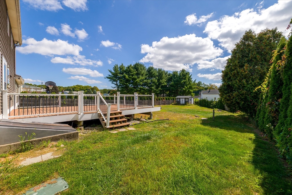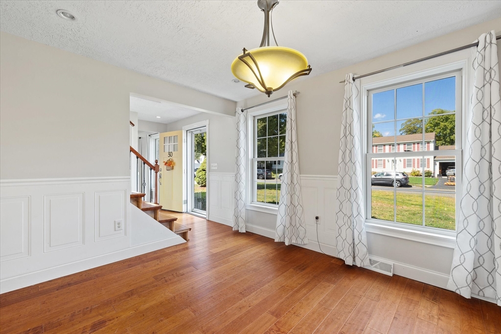 Welcome to 30 Rising Street in Feeding Hills, MA! This 3-bedroom, 2.5-bath Colonial blends charm with modern comfort. Enjoy hardwood floors throughout, a sun-filled living room, and a formal dining room with classic wainscoting. The spacious kitchen features stone counters and opens to the backyard with a large composite deck, complete with extra footing to allow for enclosure if desired—perfect for entertaining! The main level also includes a convenient half bath with laundry. Upstairs, the primary suite boasts a lofted ceiling with beams, a walk-in closet, and a private bath, while two additional bedrooms share a full hall bath. The finished basement offers endless possibilities for a media room, playroom, gym, or office. Additional highlights include an attached 2-car garage, a spacious fenced backyard, and a newer shed. With updates including the roof, siding, windows, garage doors, bathroom skylights, and more, all that’s left to do is move in! Schedule your showing today!