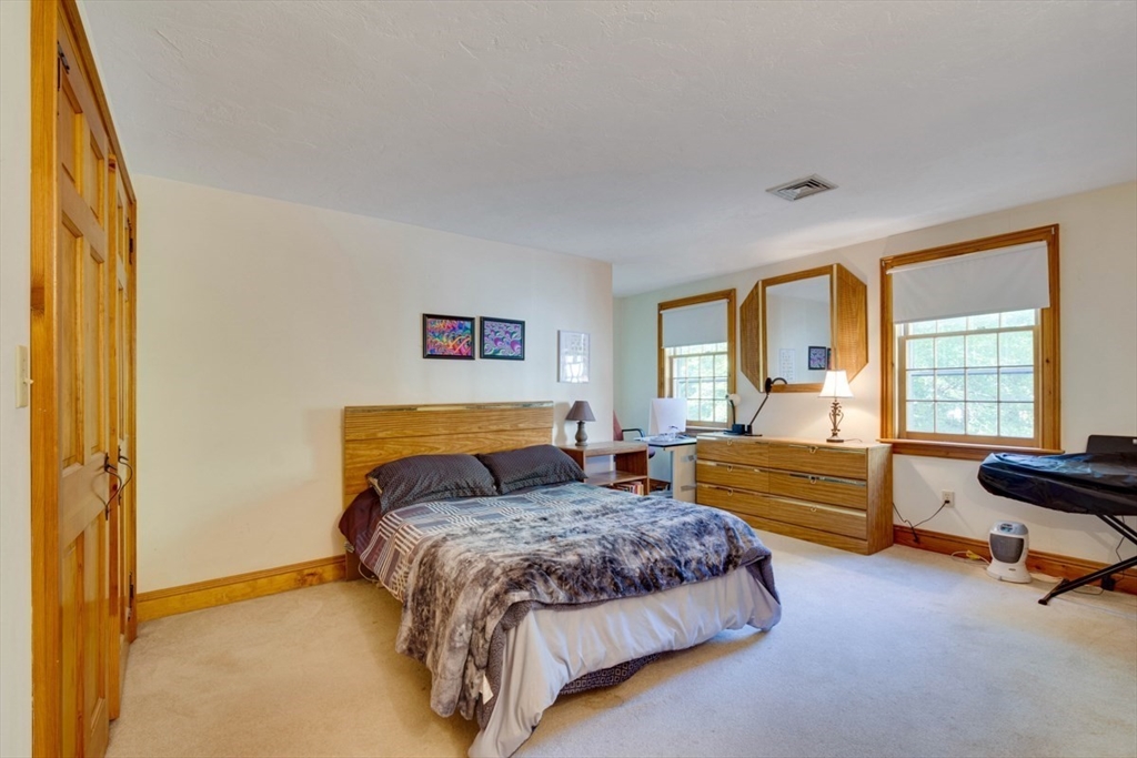 Welcome to this inviting Colonial in Groton’s sought-after Crosswinds neighborhood. Set back on a private level lot, this spacious home offers over 3,300 sq ft of flexible living space with four generous bedrooms and two and a half baths. The expansive bright living room flows into a large dining room while the kitchen opens to a large fireplaced family room and inviting sunroom, creating the perfect atmosphere for relaxing or entertaining. Step out onto two decks overlooking the peaceful outdoor space. The first-floor laundry room offers ample storage and central air-conditioning provides year-round comfort. Upstairs, the large primary suite features a soaking tub, separate shower, and walk-in closet, along with three additional bedrooms and a full bath. Very spacious rooms throughout with a versatile layout. Shopping just minutes away. Enjoy direct access to a network of walking trails and the Squannacook River Rail Trail, all within one of Groton’s most desirable neighborhoods.
