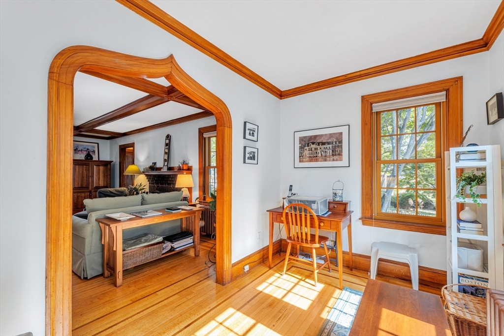 This meticulously maintained English Tudor is located on a sought-after tree lined street. Offering 3+ bedrooms and 1.5 bathrooms, this residence blends traditional charm with modern updates. Step inside to find beautiful gumwood archways and period details that evoke timeless elegance. The inviting fireplace living room features stunning hardwood floors and a beamed ceiling, complemented by classic French doors that add to the home’s character. The updated kitchen and bathrooms reflect the pride of ownership, offering a perfect mix of functionality and style. With thoughtful updates throughout as well as an update to include a 2nd floor laundry with new washer & dryer, this home is move-in ready, offering modern comfort while retaining its historic appeal. Light filled four- season sunroom that leads to a private patio, one car garage & off-street parking. Convenience is key, with the home located within walking distance to local shops, restaurants, and public transportation.