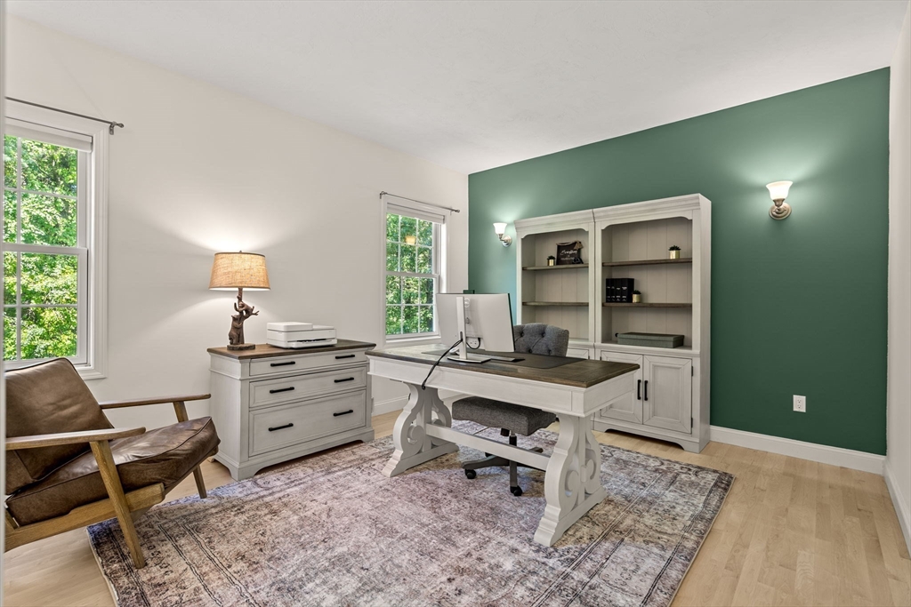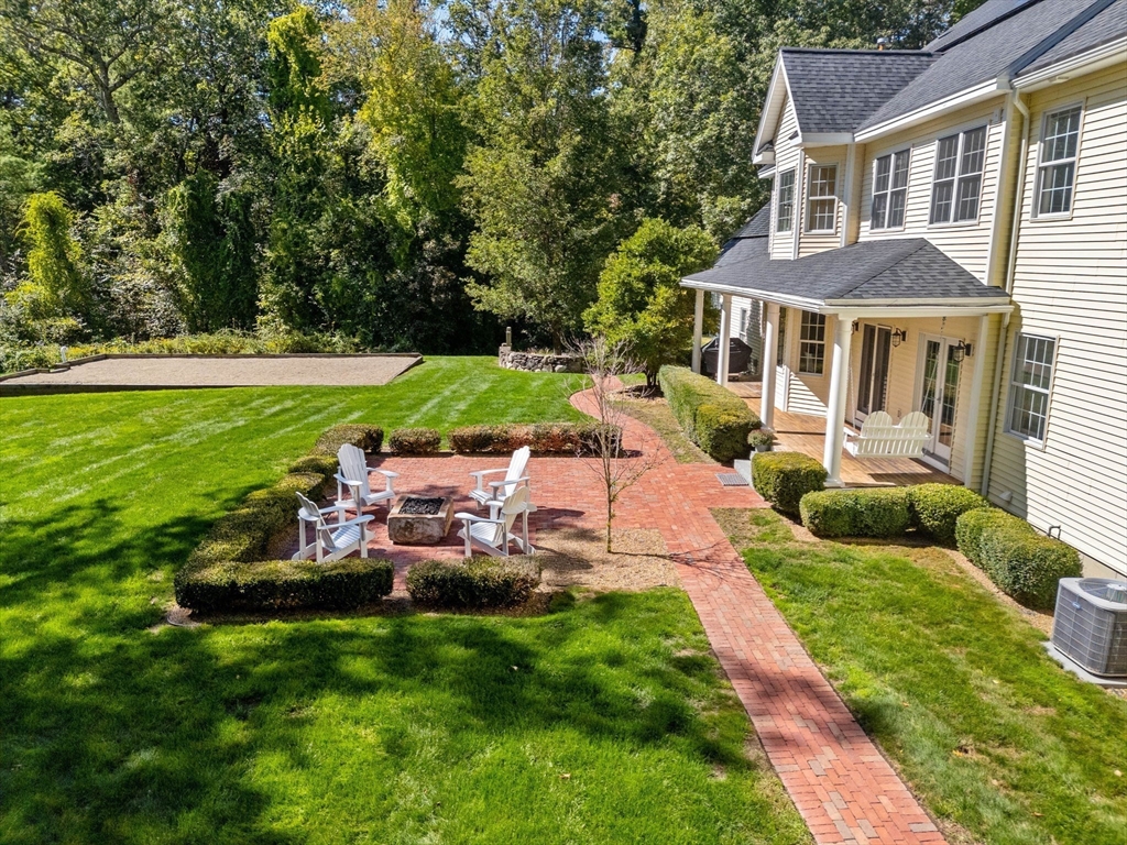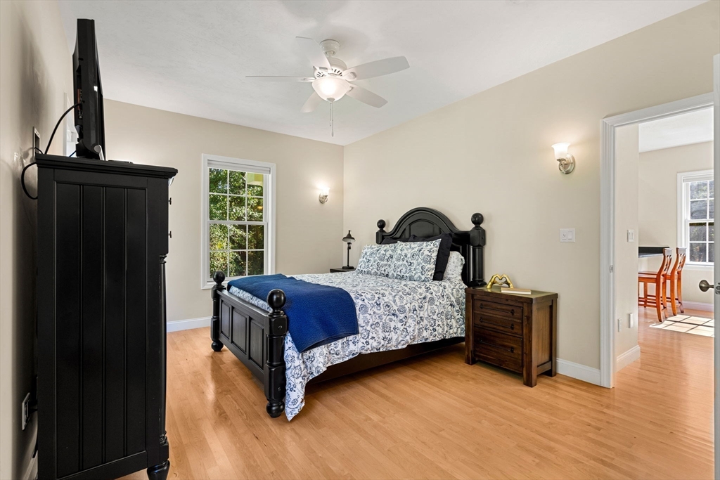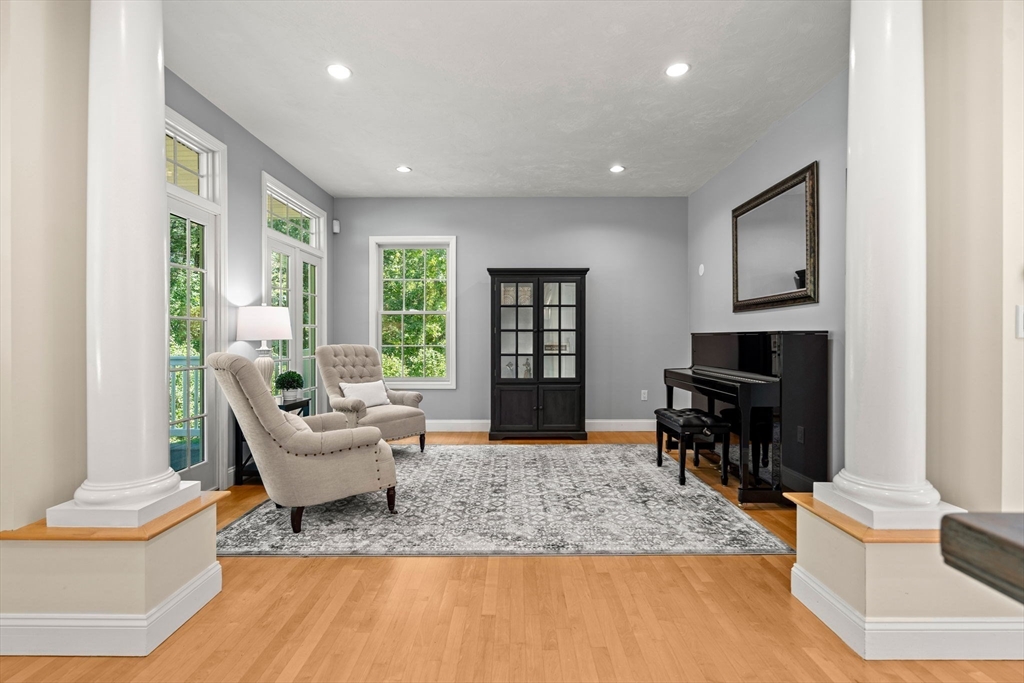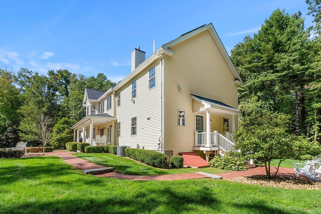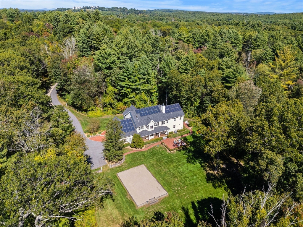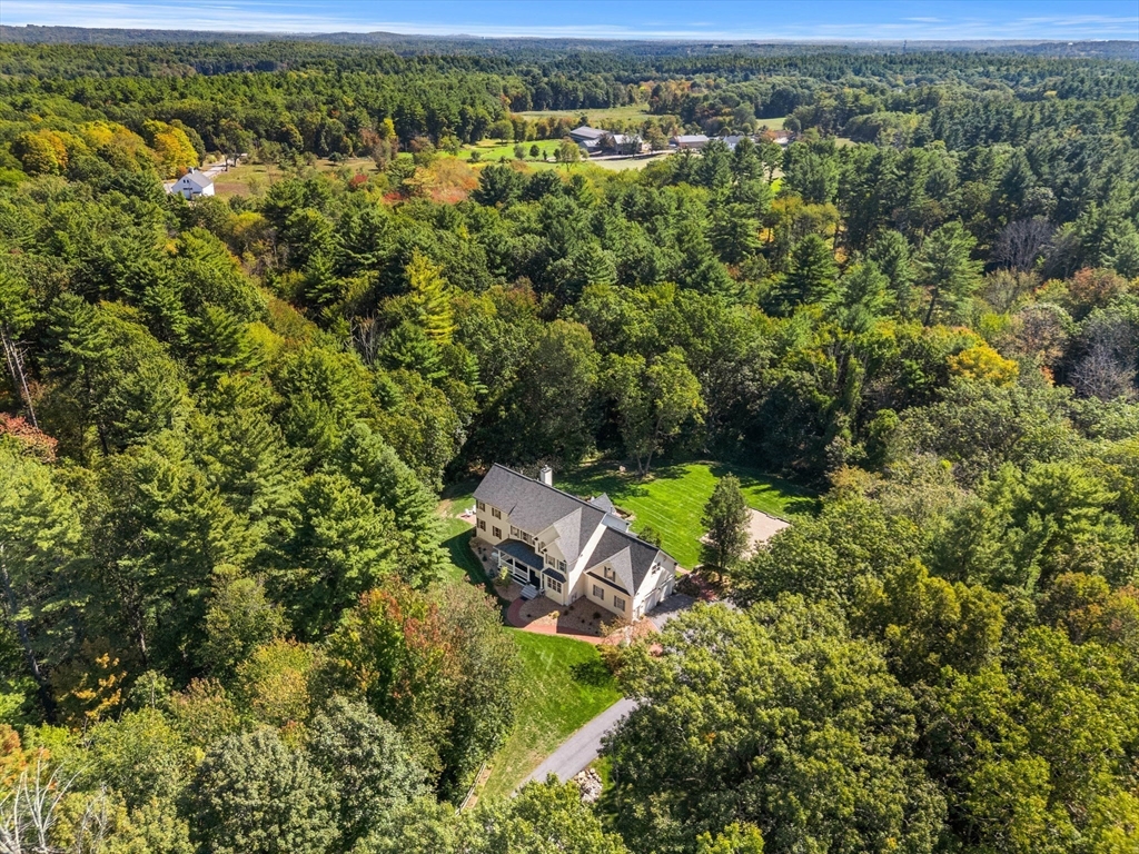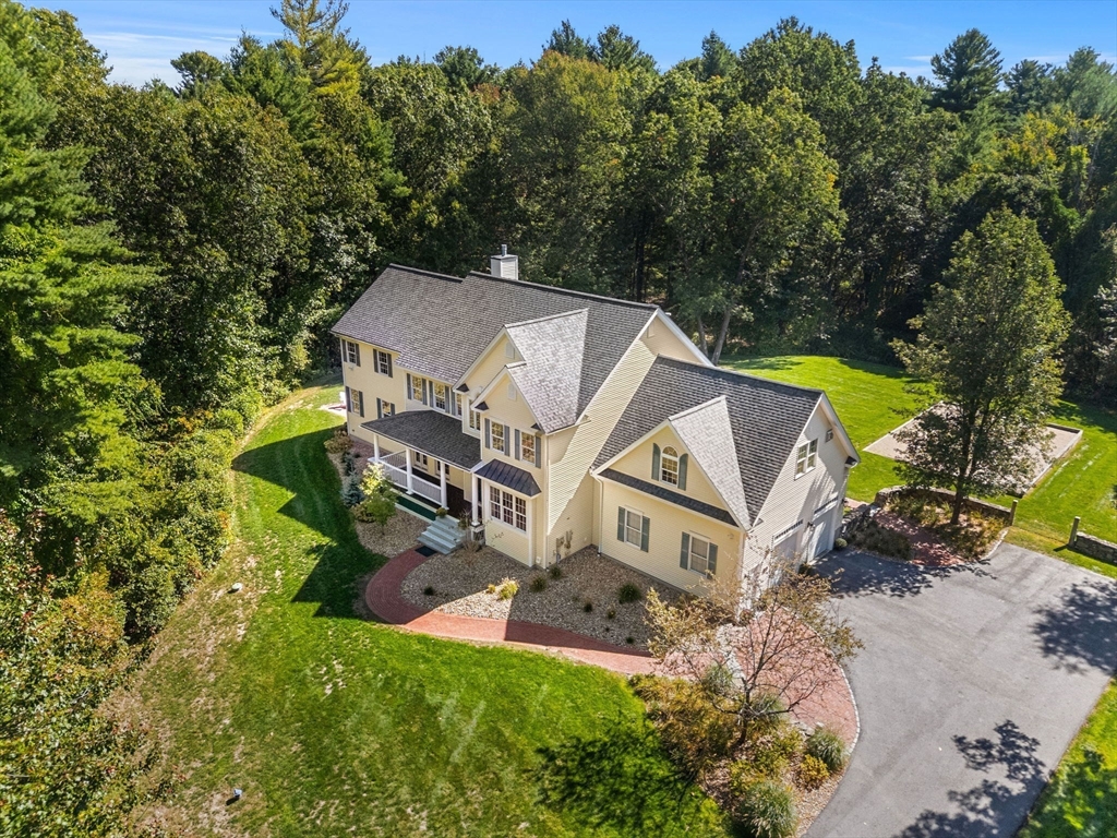 This custom Colonial on 6+ acres offers 6 bedrooms, 5 full baths, and a half bath, blending elegance with comfort. A beautiful 2-story foyer opens to maple floors, soaring ceilings, and walls of windows that fill the first floor with natural light. The dining and living rooms are enhanced with pillars and French doors, while the chef’s kitchen boasts SS appliances, gas cooking, double wall oven, and a large island flowing into a vaulted family room with a gas FP and dual French doors to the porch and patio. A custom mudroom/laundry with floor-to-ceiling cabinetry adds convenience. Upstairs, 4 bedrooms each with bath access with tile flooring, marble, and tasteful design, plus a versatile bonus room. The first floor also includes a 3-room in-law apt with its own laundry, patio, and the same high-end finishes as the main home.Owned solar panels and a full-house generator provide peace of mind. Outdoors is special with stone walls, patio, and wooded views complete this serene retreat.