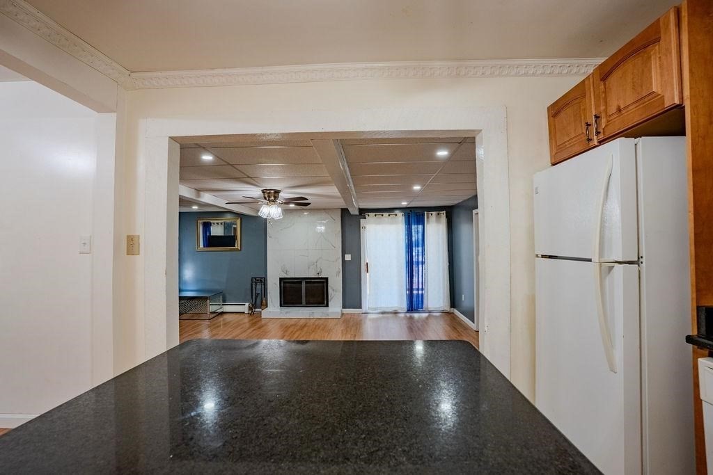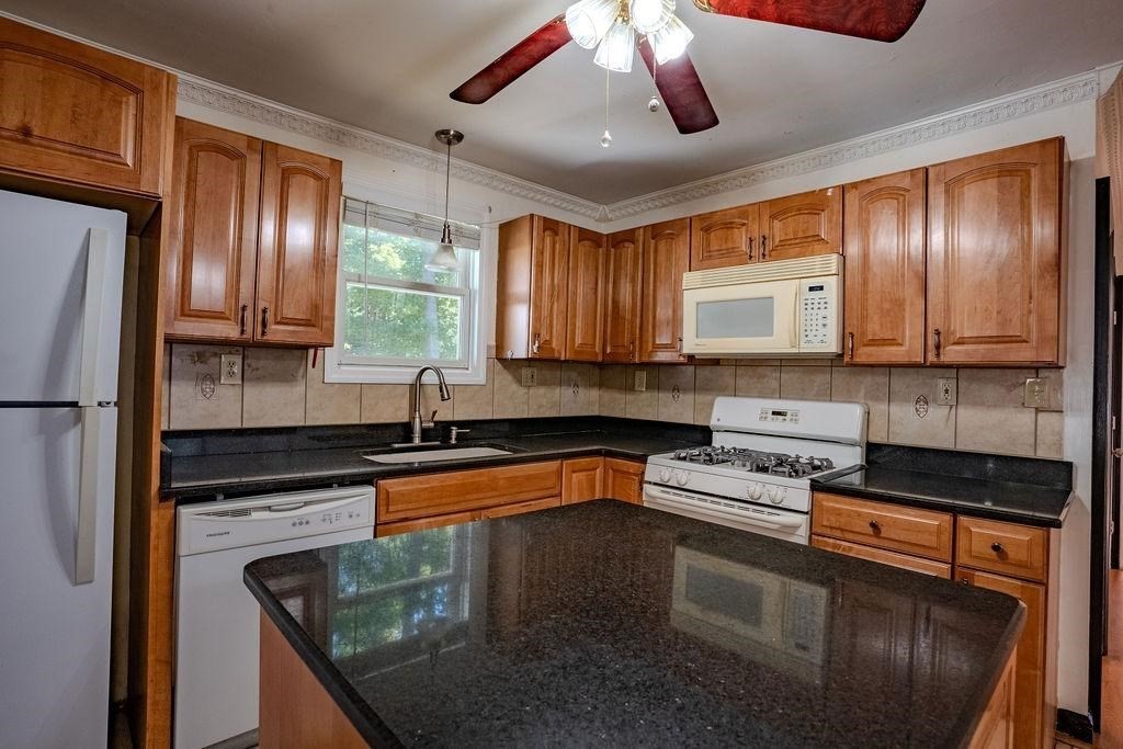 Charming Ranch in a Desirable Dracut Location. This well-maintained ranch offers the ease of single-level living with 3 spacious bedrooms, all featuring oversized closets, and a full bath with the convenience of first-floor laundry. The kitchen is designed with granite countertops and a center island, opening to a step-down living room highlighted by a modern fireplace. From the living room, access a large side deck with gazebo overlooking the expansive yard, complete with a firepit for outdoor enjoyment. An extra-large storage shed adds functionality, while significant updates provide peace of mind — including most windows, flooring, kitchen, and bath completed in 2010, along with a new metal roof and siding in 2024.This property combines comfort, style, and recent upgrades in one of Dracut’s sought-after neighborhoods. An excellent opportunity not to be missed!