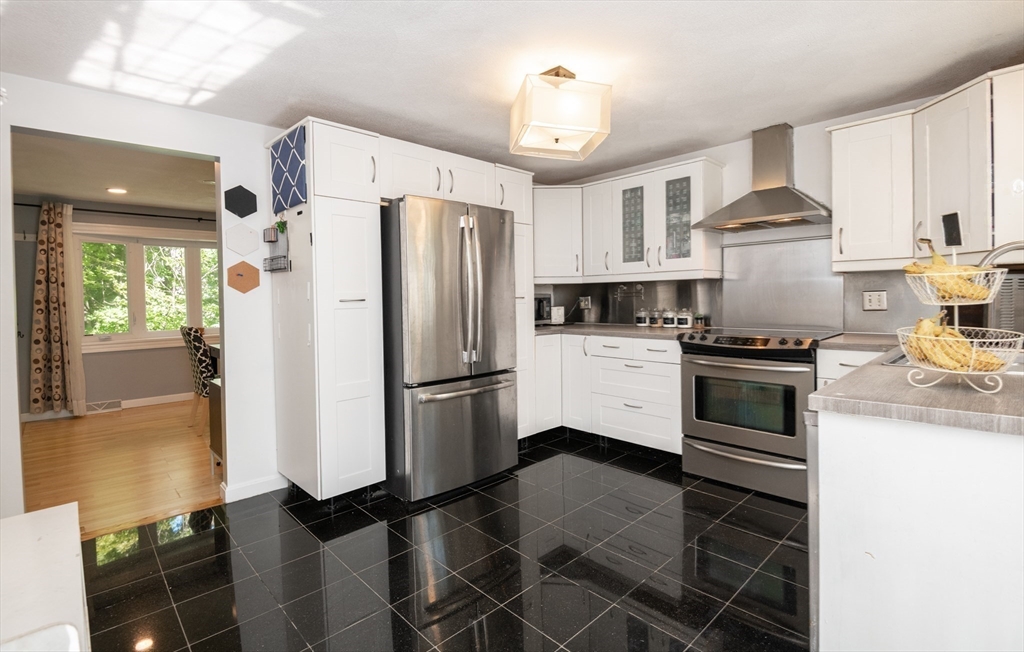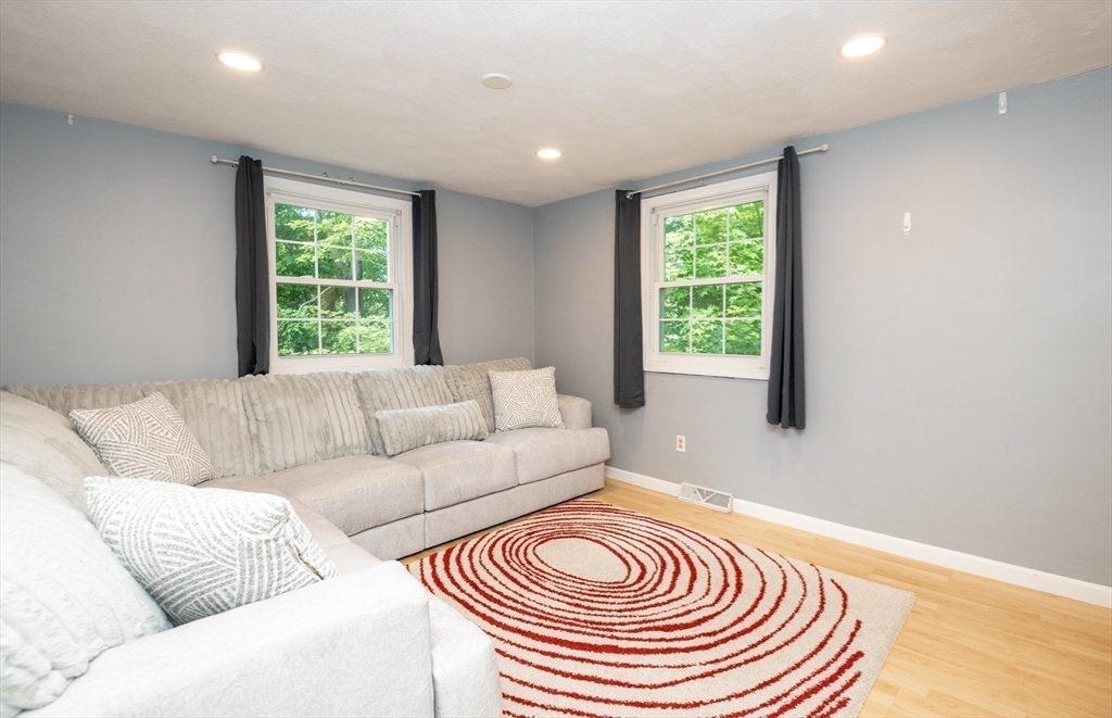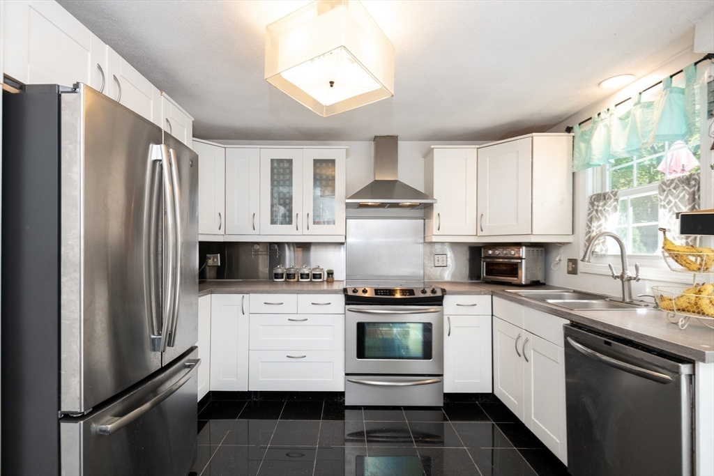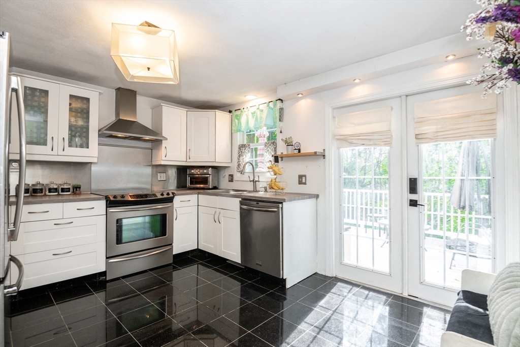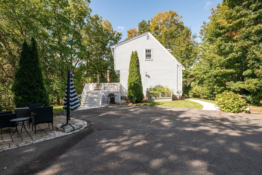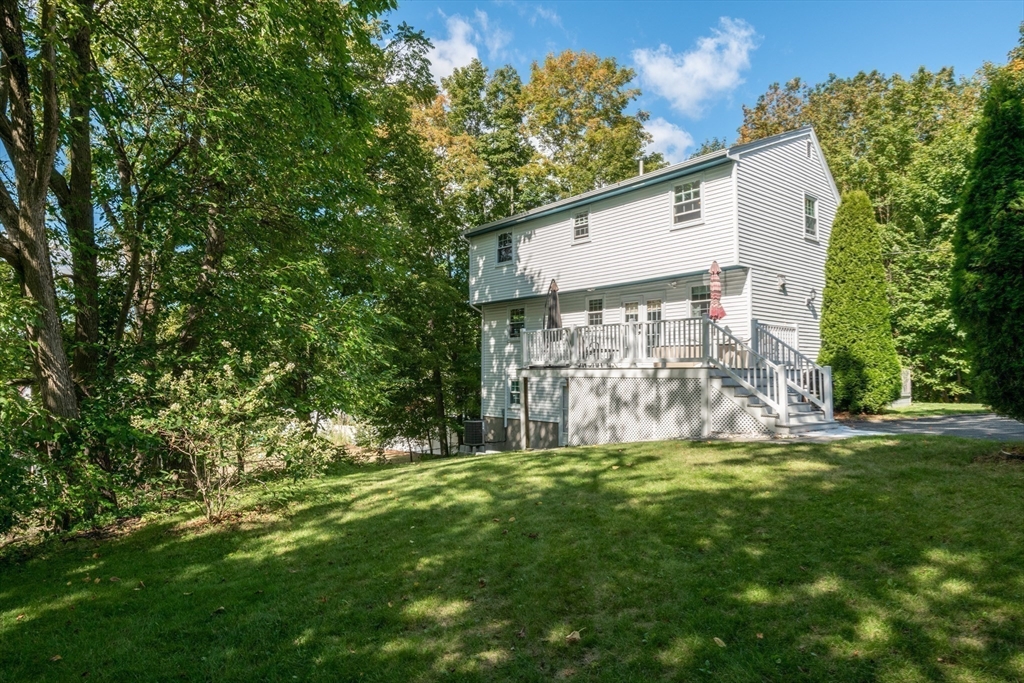 Welcome to 17 Sunnyside Road! Beautiful 4 bed 2 bath expanded Cape with 3 levels of living area, located at the end of a cul-de-sac. Tons of space inside & out of this young 1991 home. Main level includes a good-size kitchen with stainless steel appliances, ample cabinet space, & french doors that lead to a magnificent back deck! Bright dining room with a delightful bay window and recessed lighting. Living room, full bathroom, & sizeable 1st floor bedroom all included on the main level. 3 bedrooms on the 2nd floor including a tremendous primary bedroom! Full bathroom on the 2nd level as well. Pergo floors on levels 1 & 2. The home does not end there, the FINISHED WALKOUT BASEMENT is unrivaled & includes a family room/game room, along with an office & a guest bedroom. Home comes with Central AC, great storage space, & great upgrades. A peaceful lot with plenty of green space and awesome patio area. Superior location just minutes to 95 and 93, shopping, restaurants & much more!
