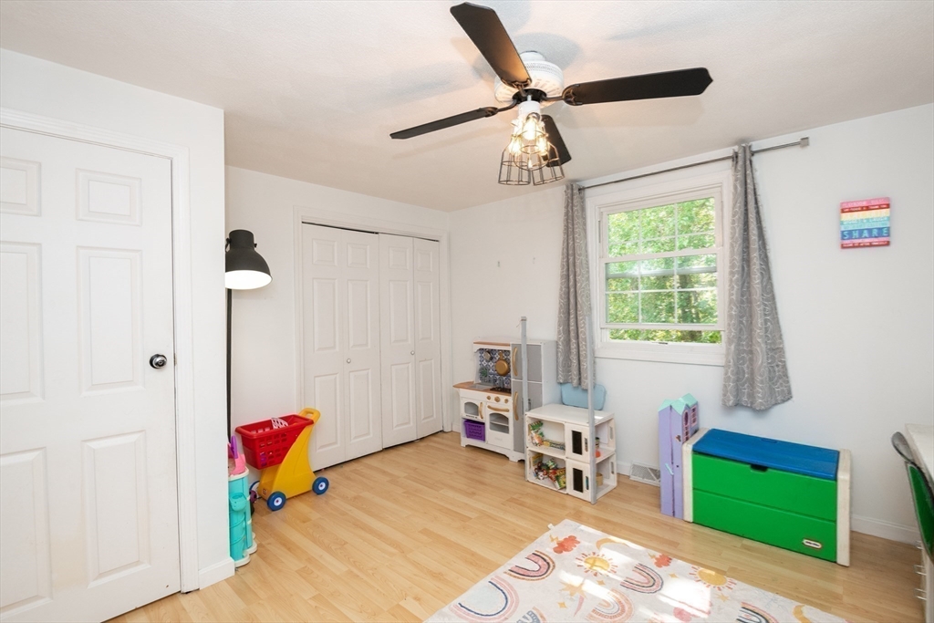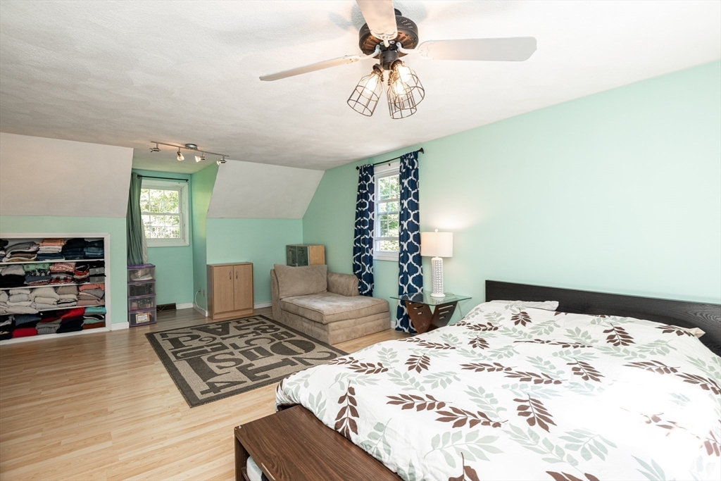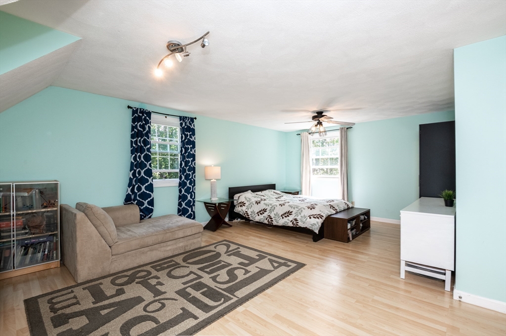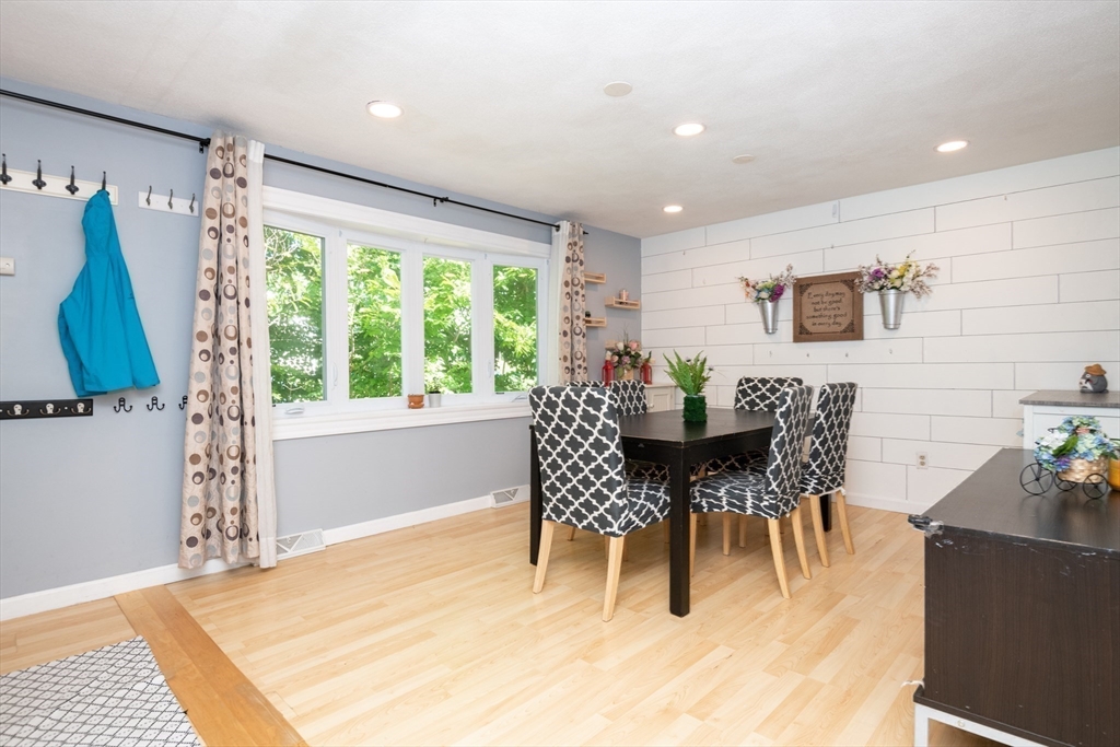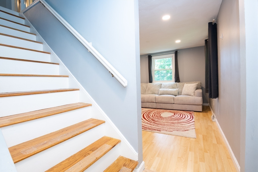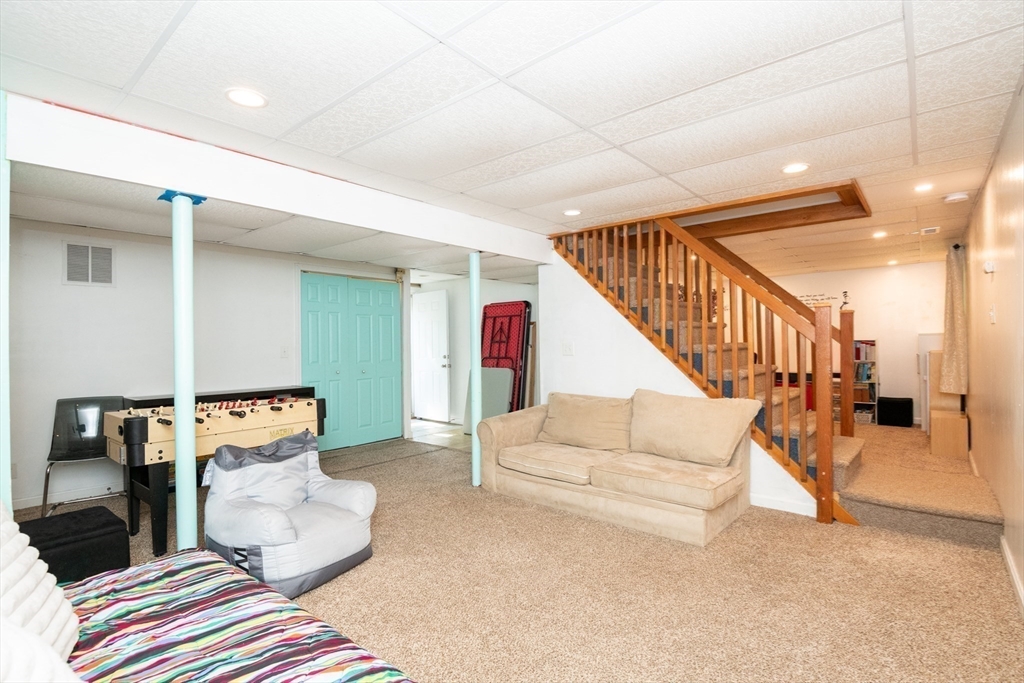 Welcome to 17 Sunnyside Road! Beautiful 4 bed 2 bath expanded Cape with 3 levels of living area, located at the end of a cul-de-sac. Tons of space inside & out of this young 1991 home. Main level includes a good-size kitchen with stainless steel appliances, ample cabinet space, & french doors that lead to a magnificent back deck! Bright dining room with a delightful bay window and recessed lighting. Living room, full bathroom, & sizeable 1st floor bedroom all included on the main level. 3 bedrooms on the 2nd floor including a tremendous primary bedroom! Full bathroom on the 2nd level as well. Pergo floors on levels 1 & 2. The home does not end there, the FINISHED WALKOUT BASEMENT is unrivaled & includes a family room/game room, along with an office & a guest bedroom. Home comes with Central AC, great storage space, & great upgrades. A peaceful lot with plenty of green space and awesome patio area. Superior location just minutes to 95 and 93, shopping, restaurants & much more!