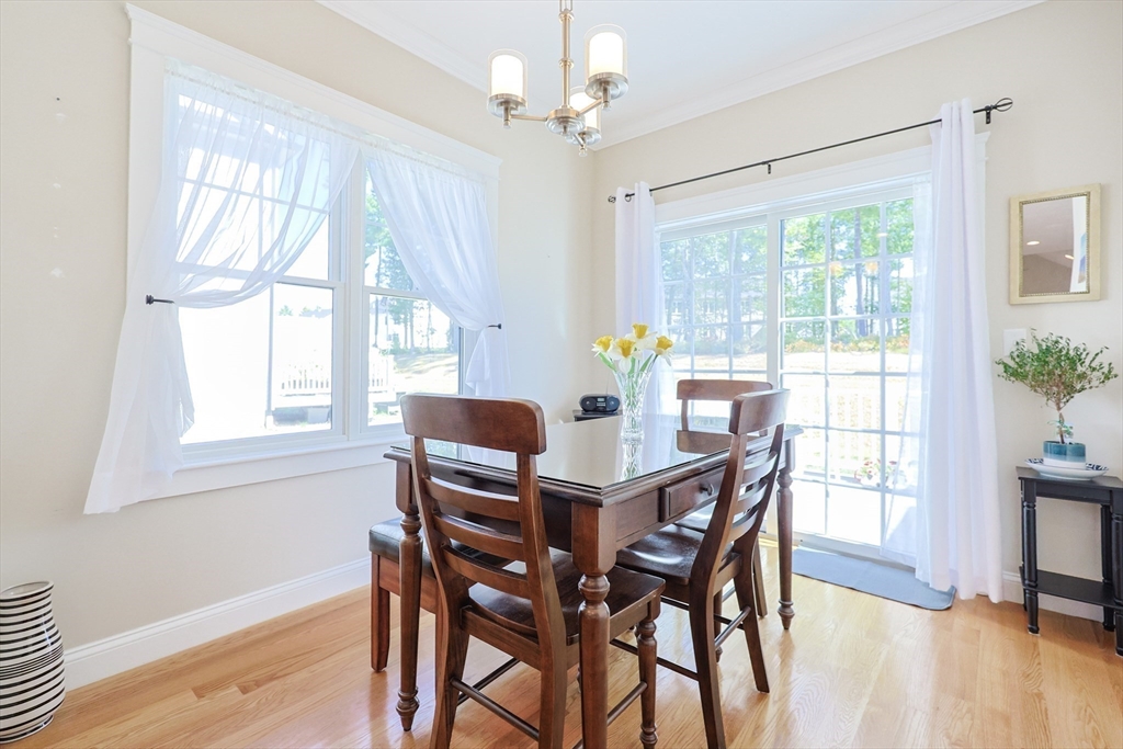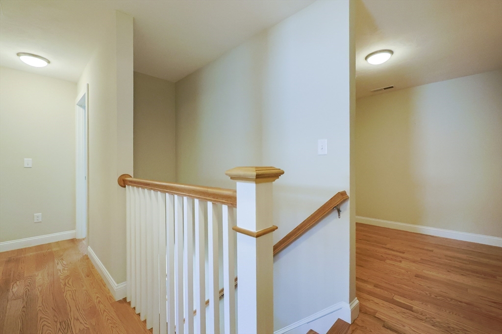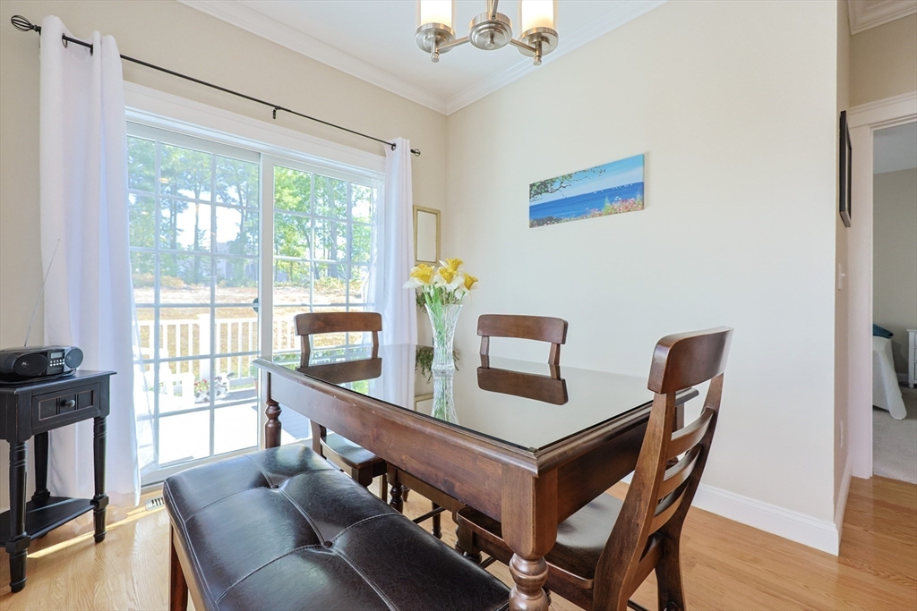 What an opportunity! As you enter the living room, kitchen and dining room all flow seamlessly with gorgeous hardwood floors and lots of natural light throughout. Kitchen has stainless steel appliances, huge island with room for seating and a pantry. Laundry conveniently located off the kitchen. Main bedroom with double door closet space has a full bath with a beautiful walk-in tile shower. Sliders open to your cozy deck. All on the first floor! Walk upstairs to a loft area perfect for home office, two good size bedrooms and full bath. Unfinished basement gives you lots of storage or potential for additional living space. Efficient gas heat, one car garage, great highway access and 5 years young! Get ready to enjoy the comfort and ease of condo living!