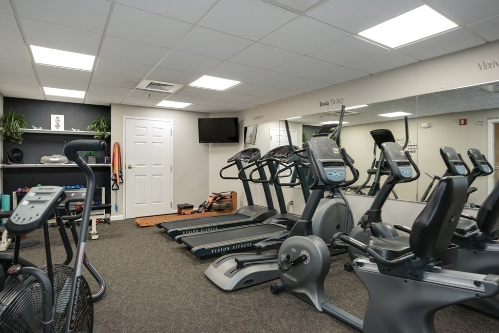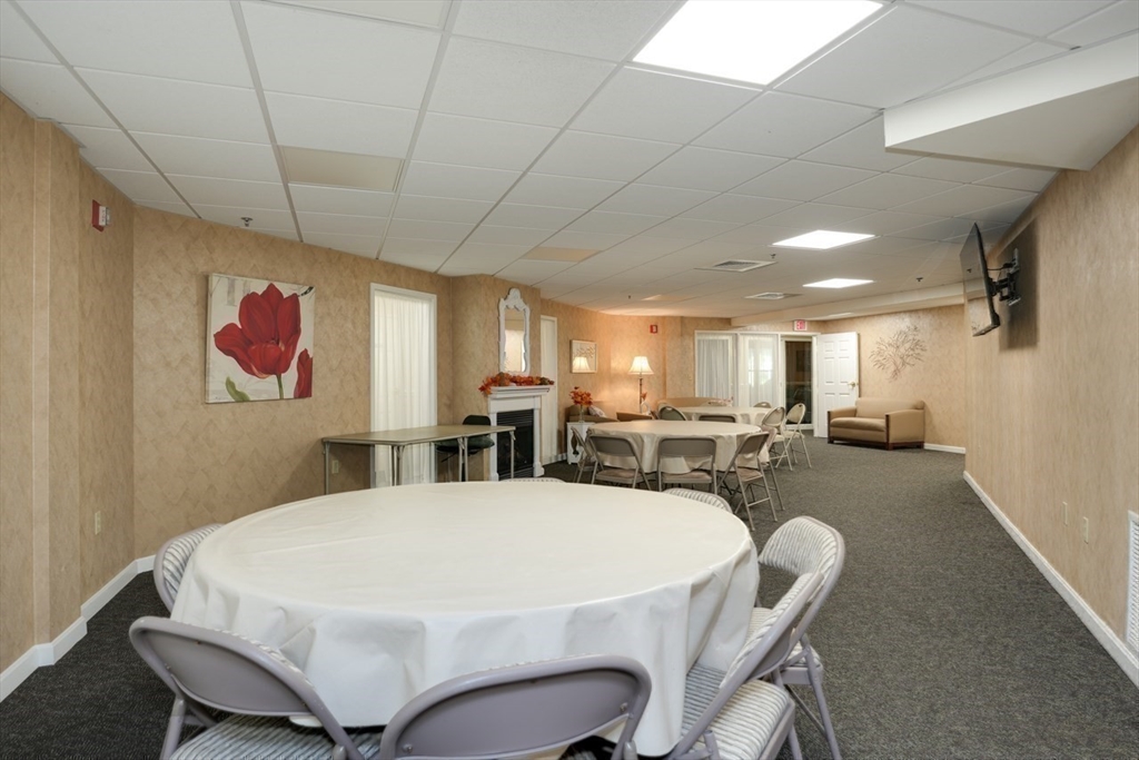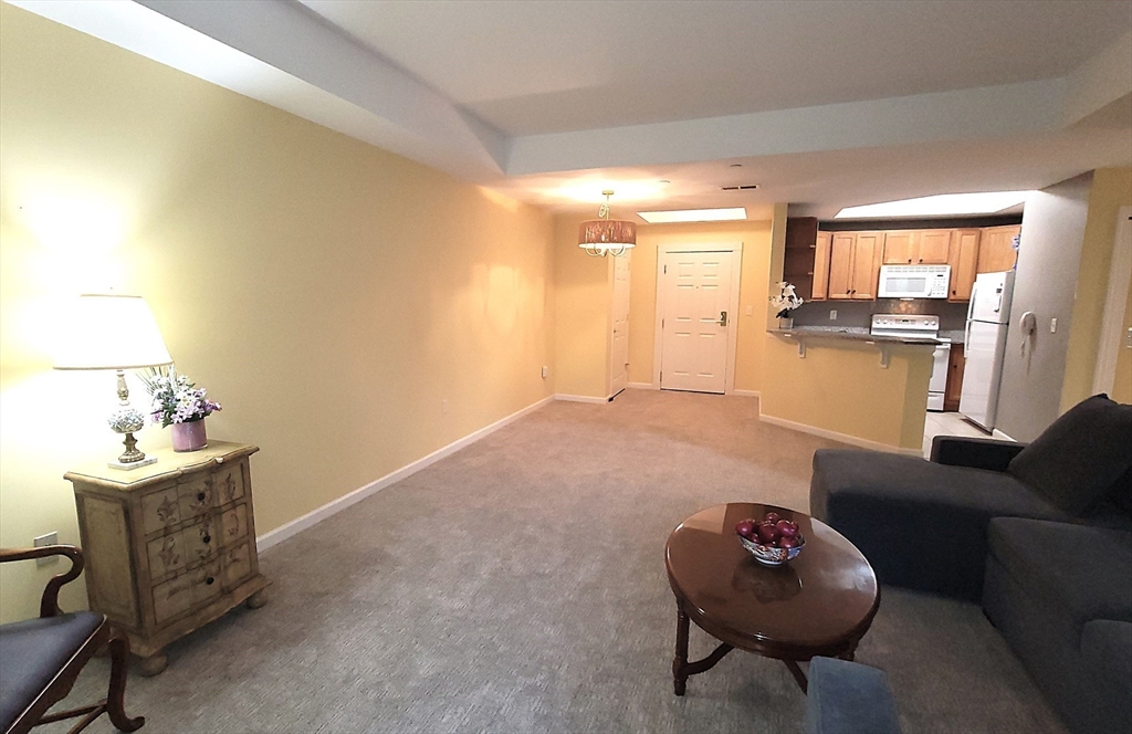 Sought after Westbrook Crossing 55+ community. (40B)requirements to be met: Application with INCOME & ASSETS LIMITS SET BY THE Dedham Housing Authority must be approved before offer can be accepted. Spacious one bedroom unit. The tray ceilings in every room add a sense of height and elegance, creating an airy atmosphere. The bedroom has a walk-in closet. The oversized bath with shower stall. Practical features include in-unit laundry, granite counters, 1 car parking and basement storage. The balcony with sliders from the living room offer a lovely spot to unwind. The building offers a newly screened in porch for outdoor gathering. Additionally, a library, conference room, 2 function rooms-1 with a kitchen and the other a pool table for personal or Westbrook organized events. A well equipped gym with varied options and weekly organized exercise class(in season)—a well-rounded inviting community with something for everyone!