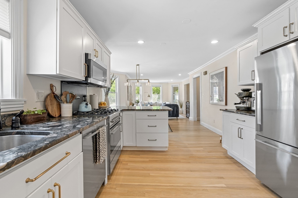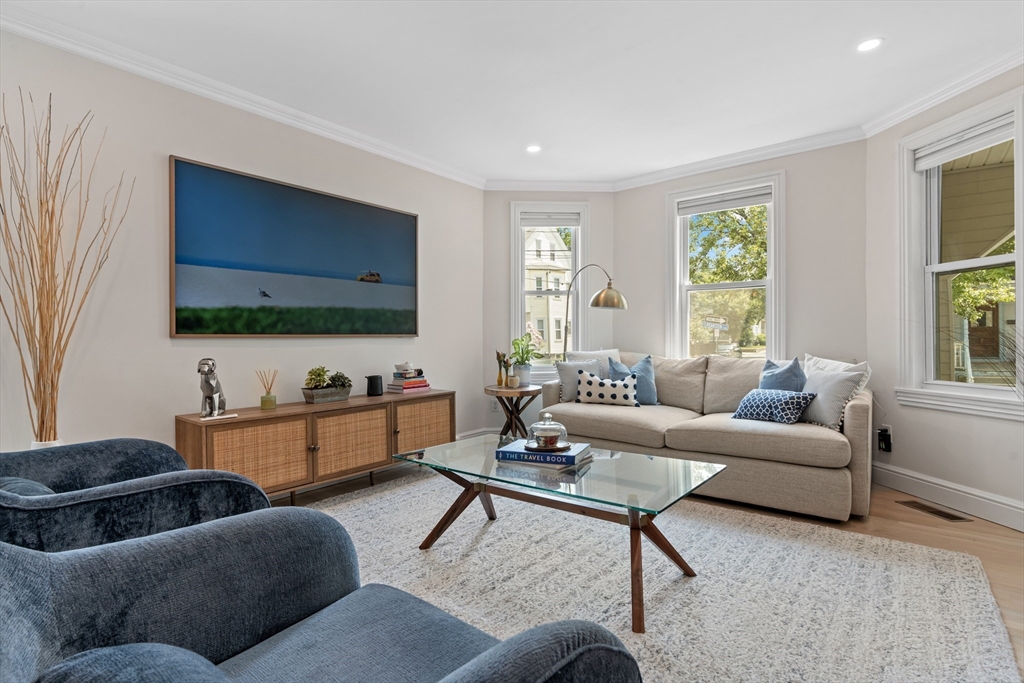 Nestled between Porter, Davis, and Ball Squares, this turnkey duplex blends historic charm with modern ease. Thoughtfully renovated, the home opens to a sun-filled kitchen with sleek Fisher & Paykel appliances, seamlessly flowing into a spacious dining and living area—perfect for entertaining or quiet evenings in. The first floor also offers a serene bedroom, a stylish powder room with in-unit laundry, and a fully refreshed full bath. Upstairs, discover a bright and airy second bedroom that feels like a peaceful retreat. Two coveted off-street parking spaces make daily life a breeze—a rare luxury in this vibrant neighborhood. This unit also comes with an oversized storage area in the basement. With cafés, boutiques, restaurants, and transit just moments away, this residence offers timeless appeal and contemporary comfort in one of Somerville’s most sought-after locations.