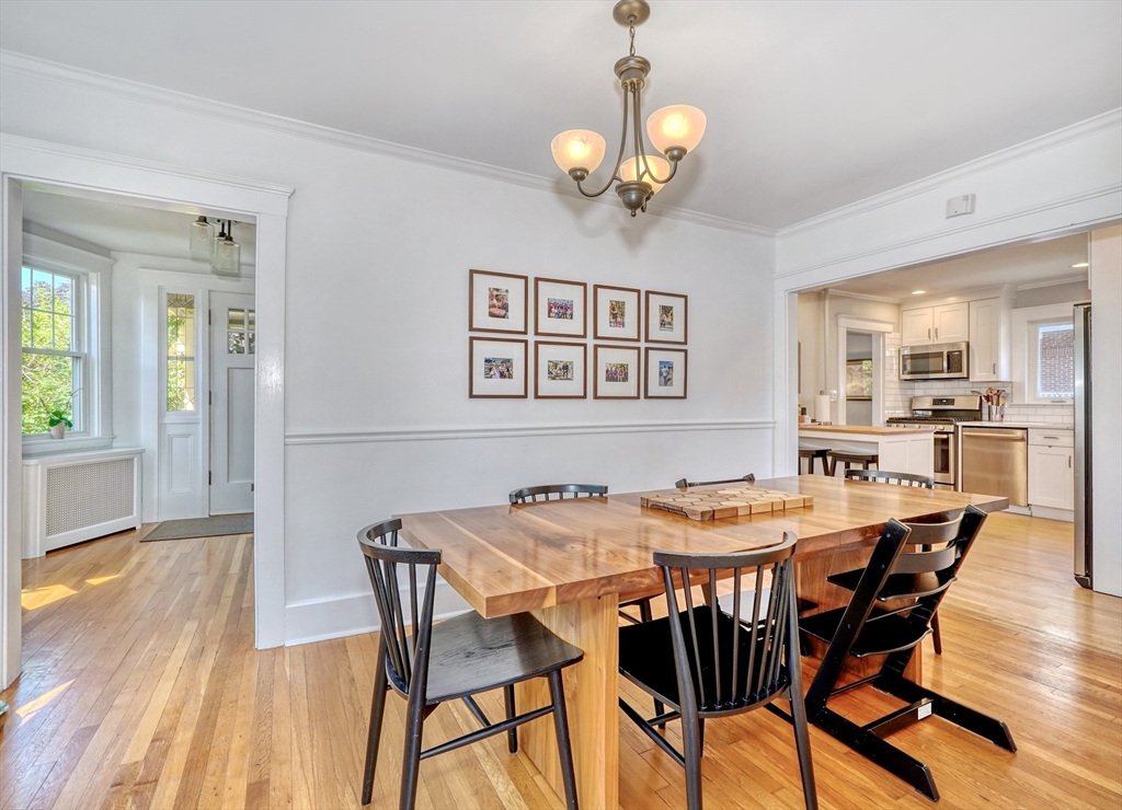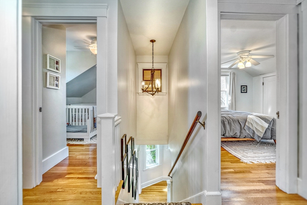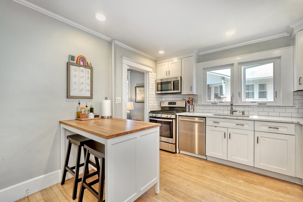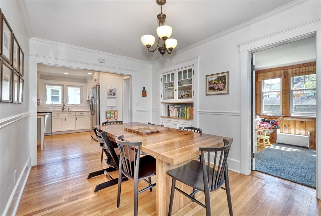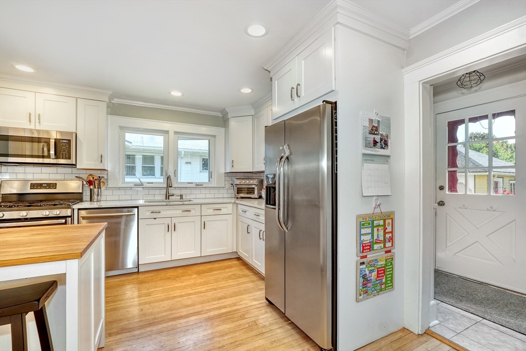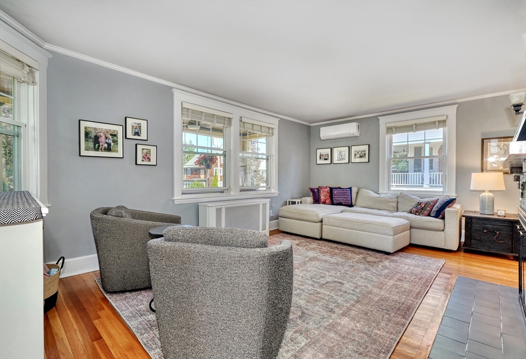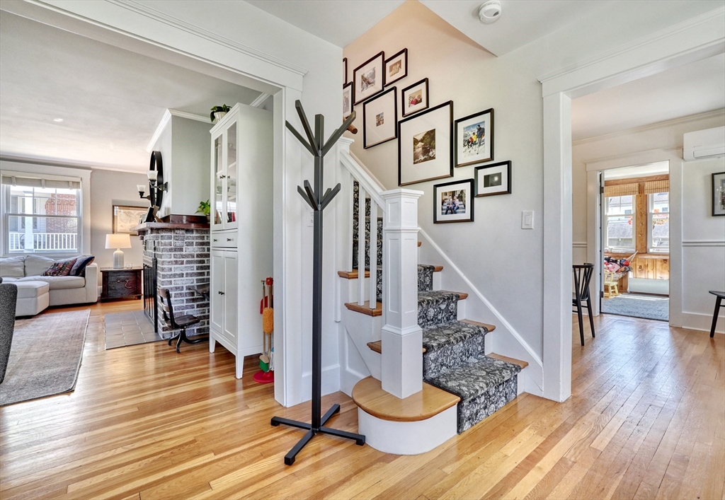 Beautifully situated, move-in-ready Craftsman home. The curb appeal and architectural design are immediate draws. A spacious wrap-around porch with ceiling fan, perfect for summer evenings. Large open foyer welcomes you. Gorgeous LR features a charming fireplace, rich moldings, and hardwood floors. Open-concept kitchen offers white cabinetry, stainless steel appliances, island, flowing seamlessly into the oversized dining room ideal for entertaining. A first-floor playroom and half bath complete the main level. Upstairs you’ll find three generously sized bedrooms with excellent closet space and spacious full bath. The basement is equipped with a mini-split for heating and cooling, offering the ceiling height and incredible potential for finishing. Enjoy outdoor living with a flat, spacious yard, back deck, and two-car garage. Located on a tree-lined street, steps to Melrose Common, Winthrop School, Mount Hood GC, busline & highways. Don't miss this gem!