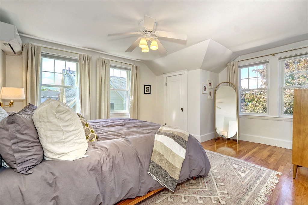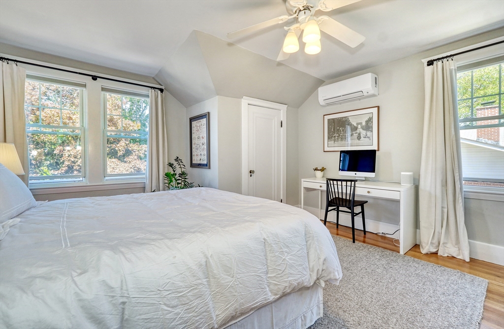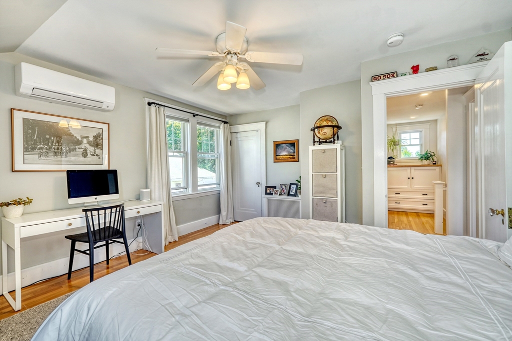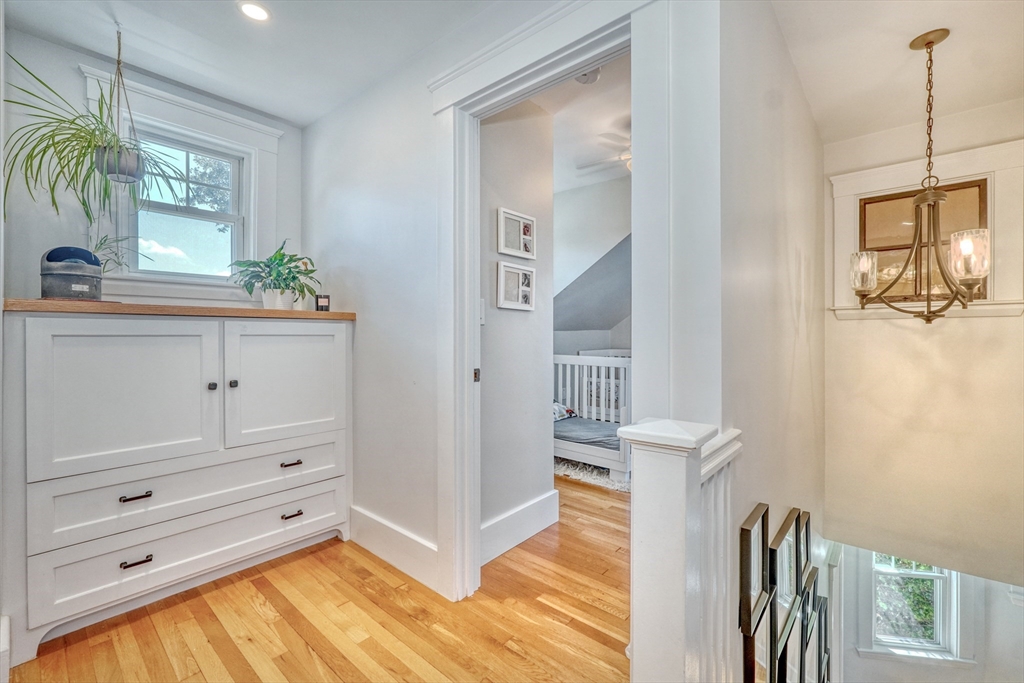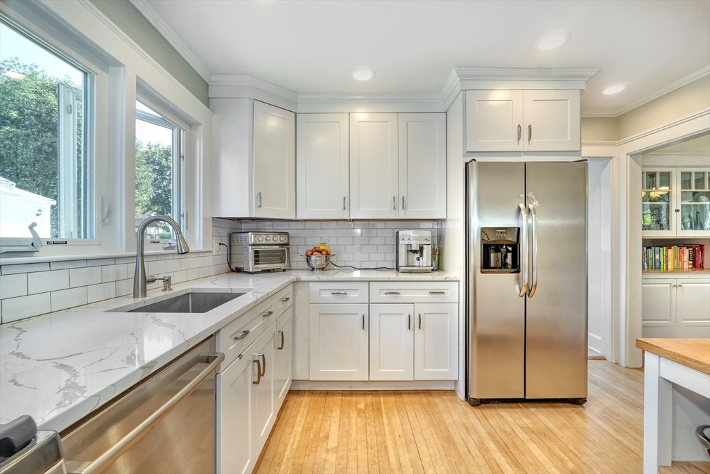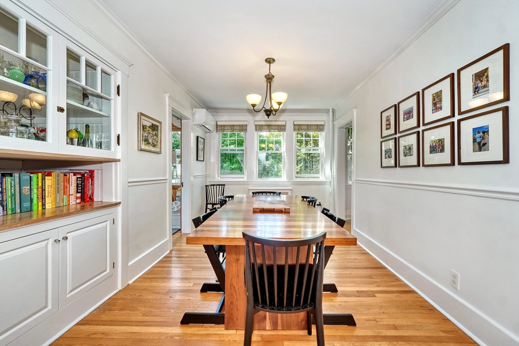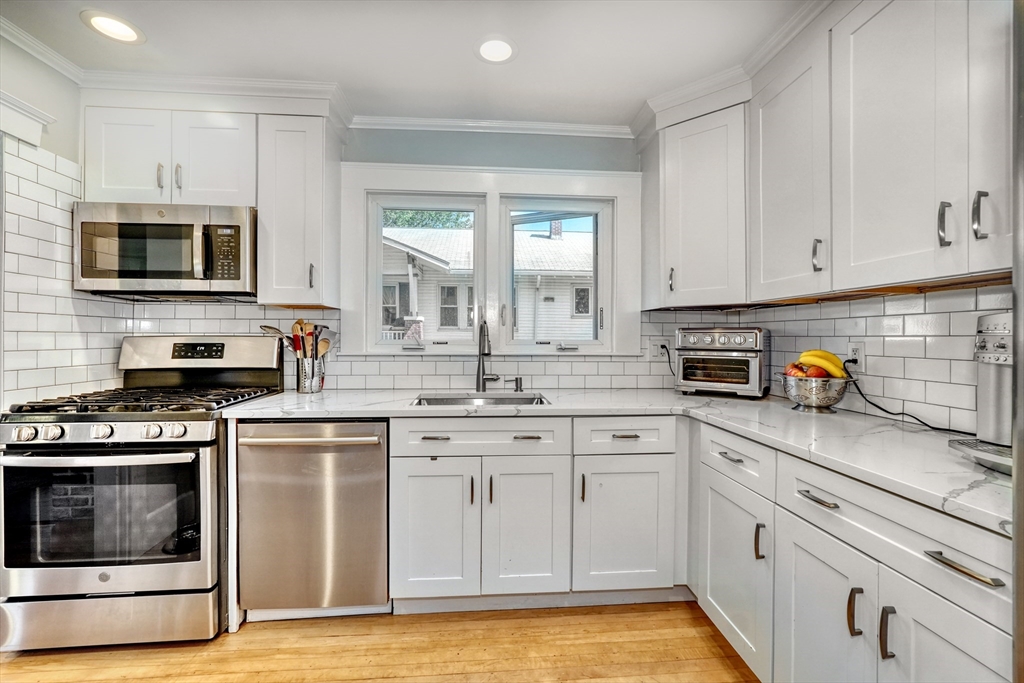 Beautifully situated, move-in-ready Craftsman home. The curb appeal and architectural design are immediate draws. A spacious wrap-around porch with ceiling fan, perfect for summer evenings. Large open foyer welcomes you. Gorgeous LR features a charming fireplace, rich moldings, and hardwood floors. Open-concept kitchen offers white cabinetry, stainless steel appliances, island, flowing seamlessly into the oversized dining room ideal for entertaining. A first-floor playroom and half bath complete the main level. Upstairs you’ll find three generously sized bedrooms with excellent closet space and spacious full bath. The basement is equipped with a mini-split for heating and cooling, offering the ceiling height and incredible potential for finishing. Enjoy outdoor living with a flat, spacious yard, back deck, and two-car garage. Located on a tree-lined street, steps to Melrose Common, Winthrop School, Mount Hood GC, busline & highways. Don't miss this gem!