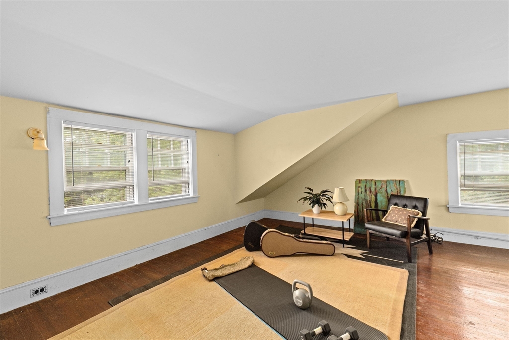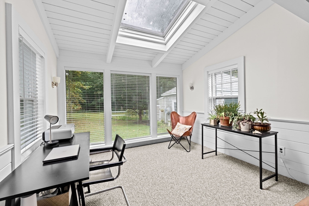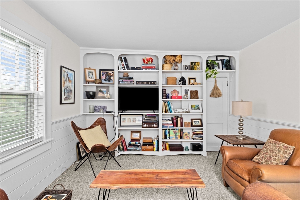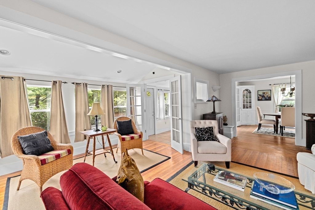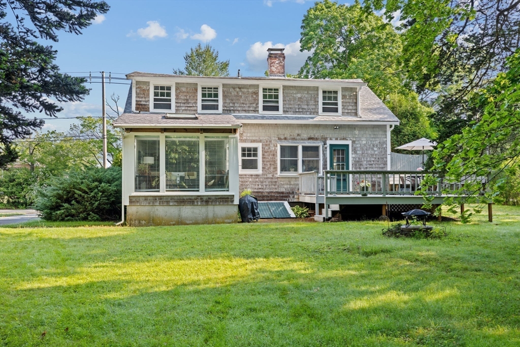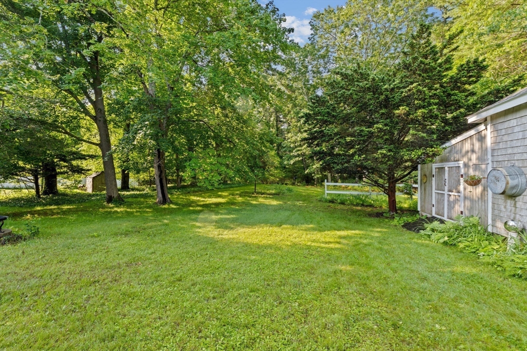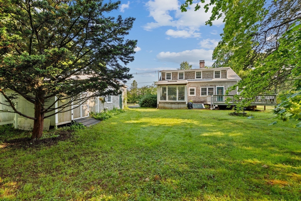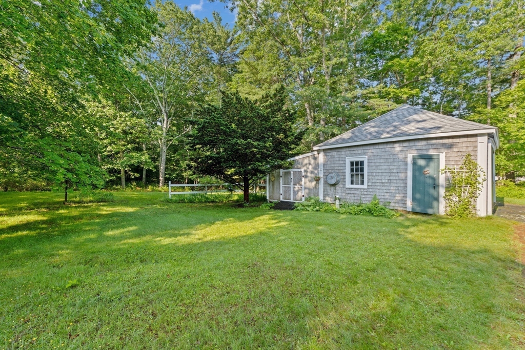 Nestled on a picturesque 1.5 acre lot, just steps from Marshfield Golf Course, this inviting home offers both charm & potential.Inside, you’ll find a spacious living room with a cozy fireplace, an expansive foyer/mudroom An open concept kitchen flows seamlessly into the dining room with French doors & built in cabinet. A bright & airy family room, enhanced with newer carpet, window treatments & wall lighting adds warmth & comfort.Fresh interior paint throughout creates a welcoming atmosphere.Upstairs, are three generously sized bedrooms plus a flexible office space.The basement features a partially finished bonus room with an oversized closet, ideal for future expansion or customization.Outside, a detached two-car garage, outdoor shower & two storage sheds provide abundant space for equipment/extra storage.With solid bones, hardwood throughout & timeless character, this property presents a rare opportunity to personalize, enhance or expand.Great opportunity in a desirable location.