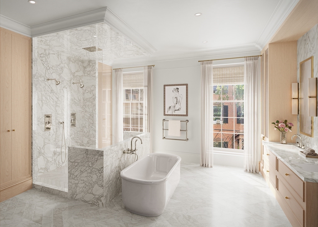 A landmark opportunity on Beacon Hill’s iconic Mt. Vernon Street - this wide, five-story NEW CONSTRUCTION single family overlooks Louisburg Square and has a rare private rear entry from famed Acorn Street. Behind the classic brick façade lies a full gut renovation with all new structural framing, high-end finishes, and an elevator to every level. Enjoy city views from the roof deck or unwind on the garden patio with a sleek entertaining kitchenette - perfect for hosting or quiet retreat. Timeless elegance meets modern luxury in every detail, from ornate custom mantels framing four gas fireplaces to a Lacanche range and many other high-end appliances. The floor-through primary suite has 2 spacious walk in closets, an opulent bathroom, and a home office. 4 additional bedrooms, an au pair suite, and two family rooms offer flexibility across all levels. 1 garage parking at Brimmer St included.