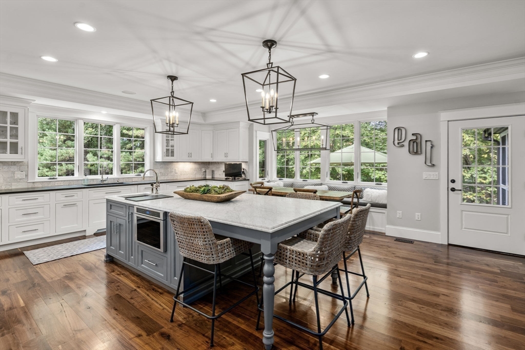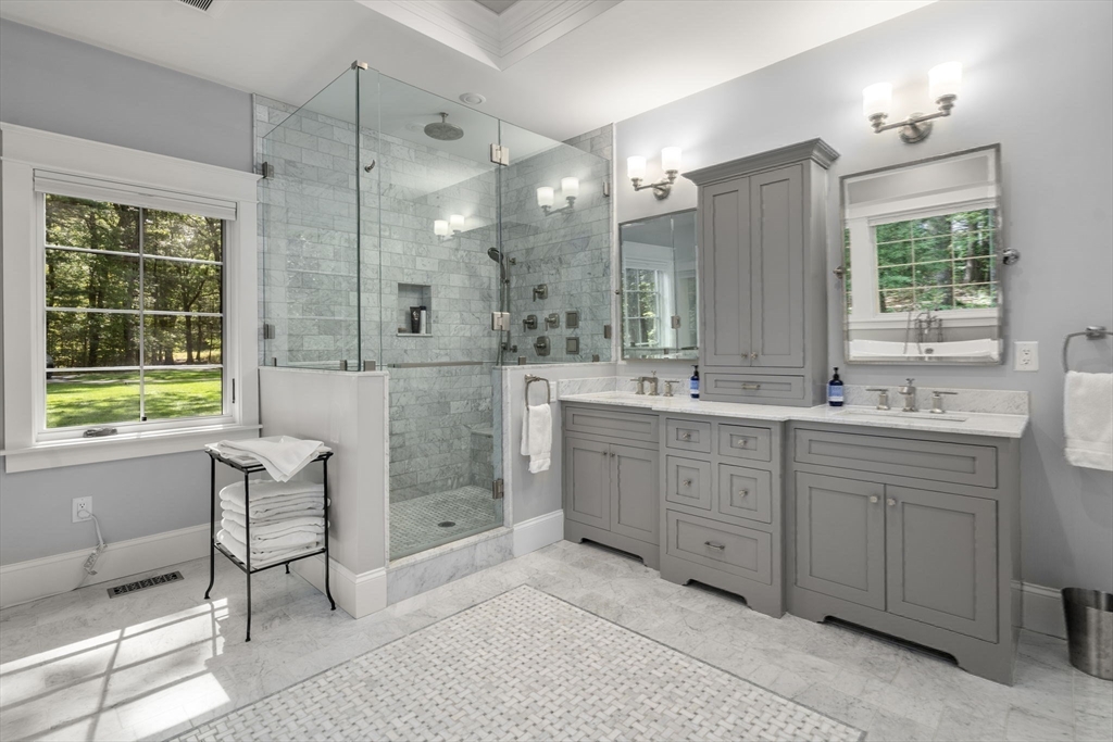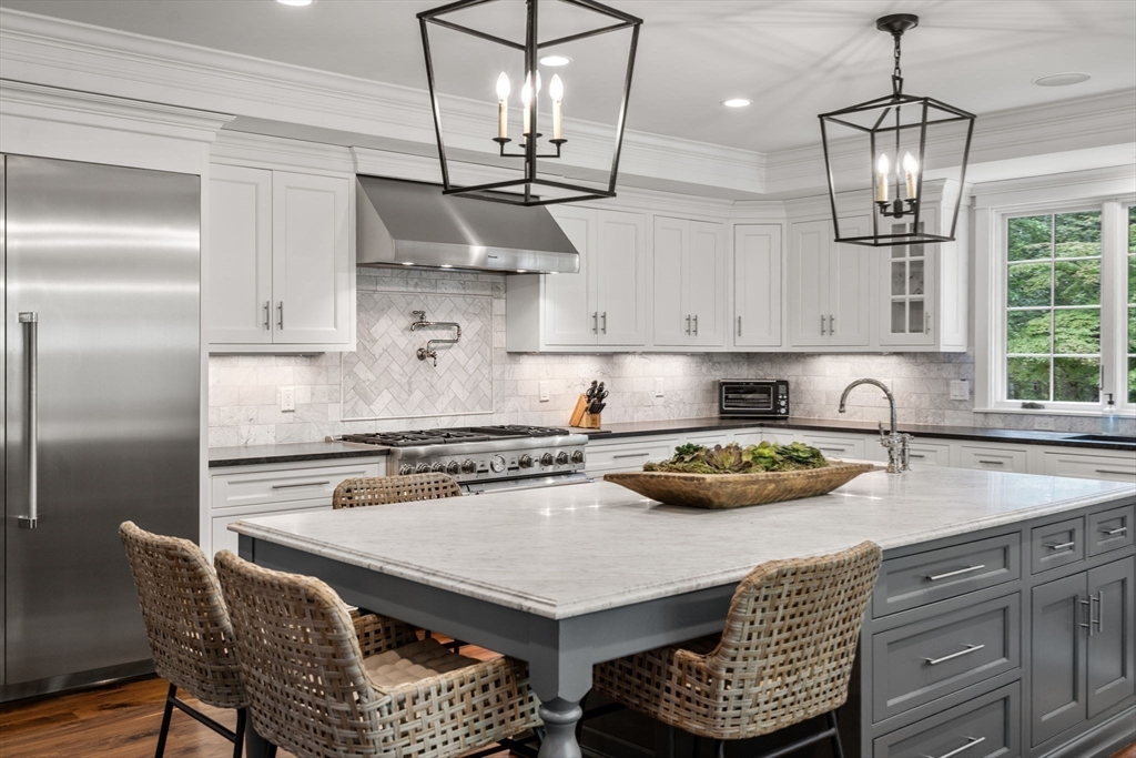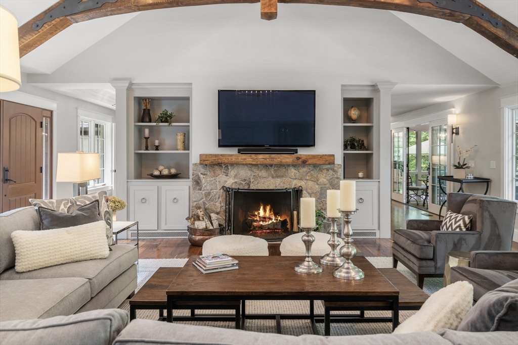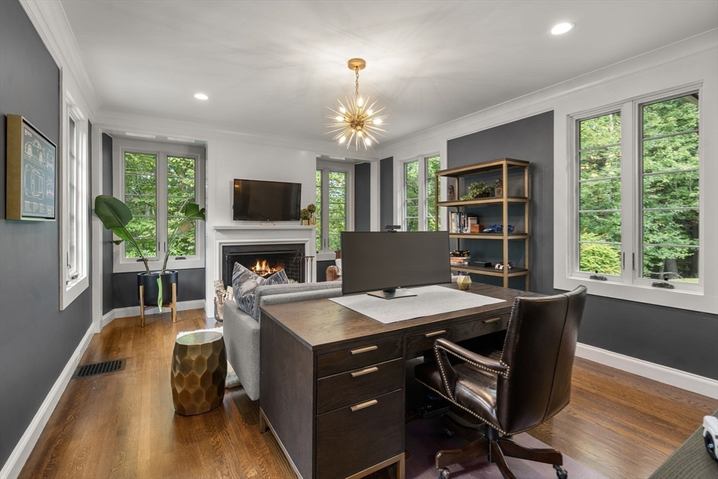European style meets modern luxury. Set back on a private lot is this much admired stone and stucco gem. The elegant center entrance court welcomes you to the fabulous main house which provides a stunning chef’s kitchen with center island and breakfast banquette, a coffered ceiling dining area, and screened porch with access to two private patios. The cathedral ceiling family room has custom wood beams, stone fireplace and a wet bar. From here is the private office with a fireplace and wooded views. The primary suite has a gas fireplace, sitting room, dressing area, two walk-in closets, and a luxurious spa-like bath. There are two additional bedrooms in the main house, as well as a lower level gym. The fabulous mud room in the main house has ample closets, a laundry, pantry and the second half bath. Across the circular drive is the guest cottage with the fourth bedroom, a stylish kitchen/living room and a full bath and laundry. A 6 car attached garage completes this rare opportunity!
