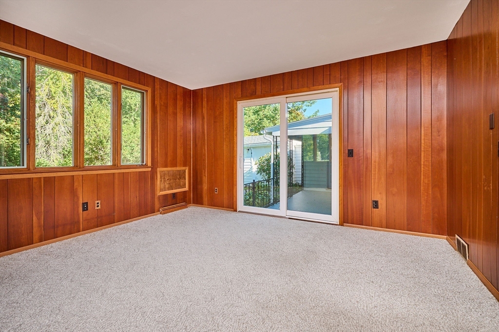 If you're seeking to downsize or enjoy single-level living, this home truly checks all the boxes. Situated in a desirable Greenfield neighborhood, this sweet residence offers six rooms, two bedrooms, 1.5 bathrooms, and 1,405 square feet of finished living space. The spacious living room features an attractive fireplace and seamlessly connects to the eat-in kitchen, creating a warm and inviting atmosphere. A highlight of the home is the four-season sunroom with sliding doors that open onto a private back deck, overlooking a generous yard and a scenic tree belt—ideal for relaxing in your personal sanctuary. Amenities include a walk-in cedar closet, an updated heating system in 2017, a new roof in 2021, and the exterior was freshly painted that same year. The home has been meticulously maintained, with carpets steam-cleaned and beautifully landscaped grounds. An attached one-car garage with a utility shed provides added convenience. First showing at Open House Sept. 27th 1:00-3:00pm