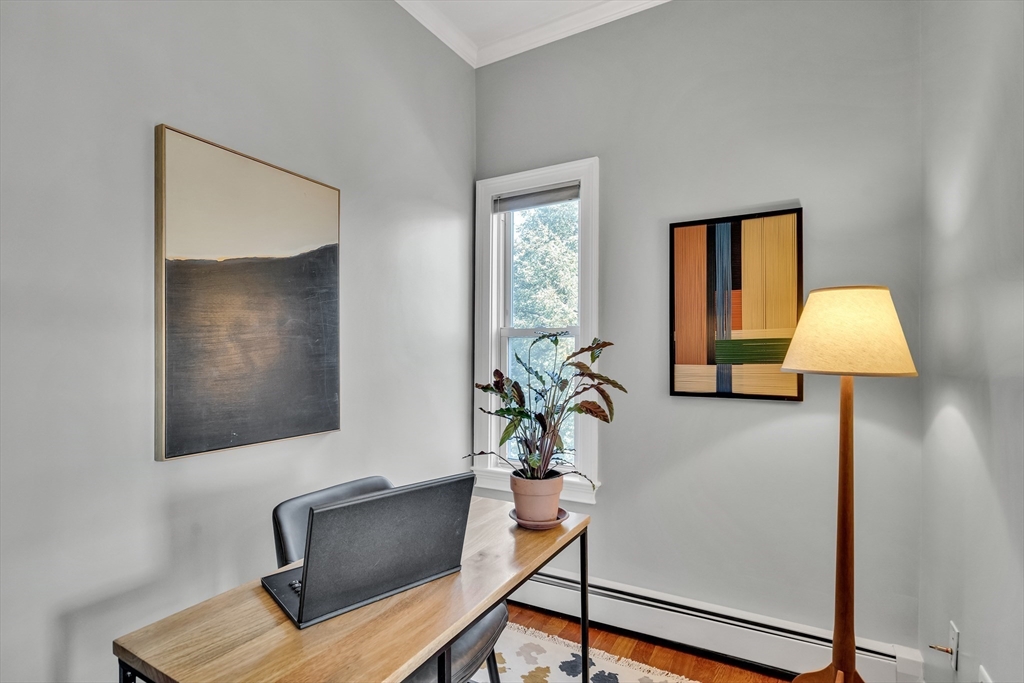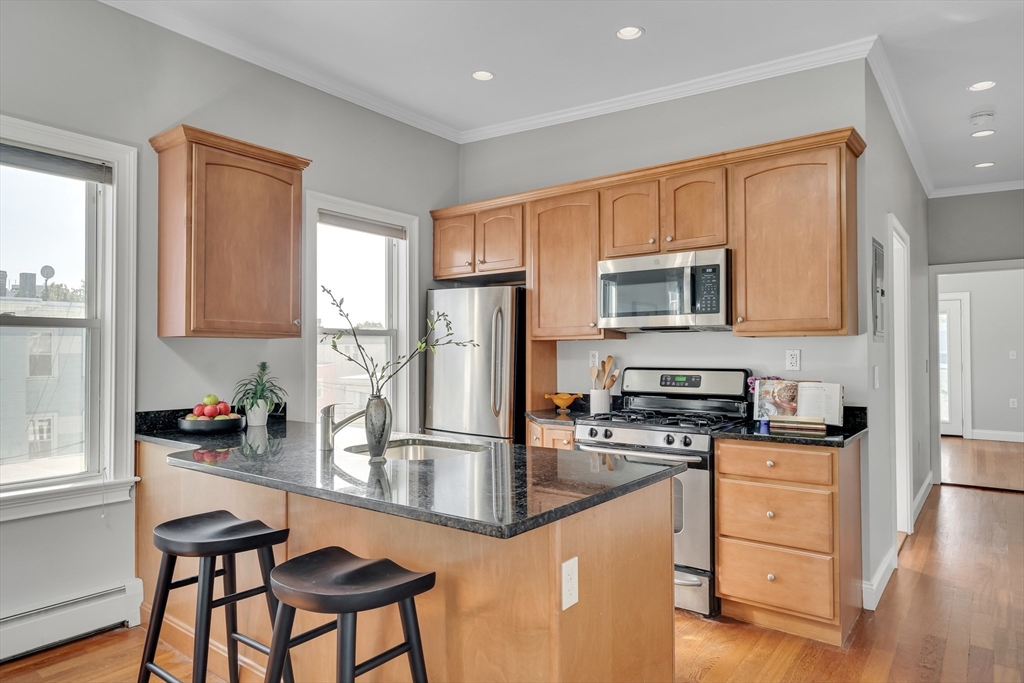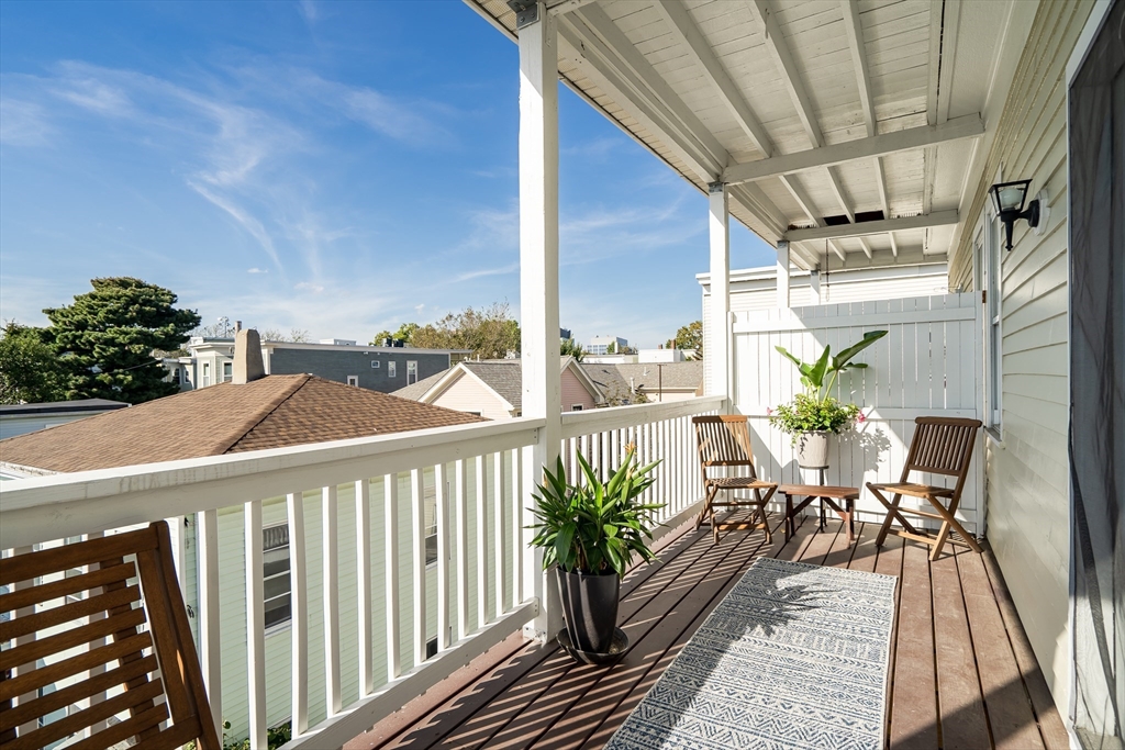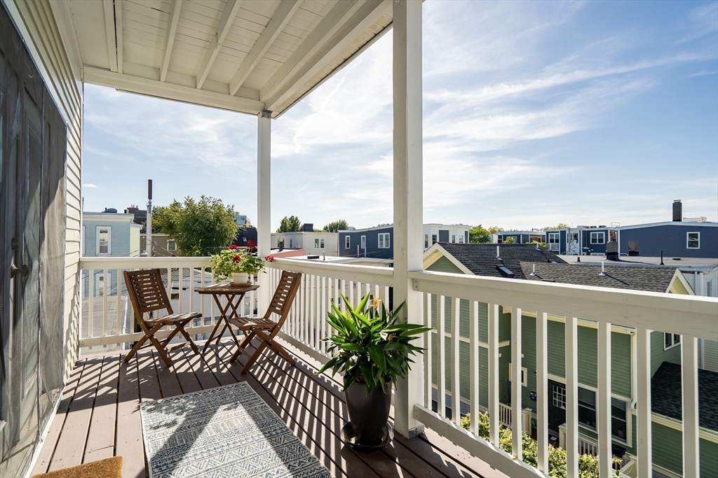 Wonderful opportunity to own a freshly painted top-floor condominium in a six-unit, professionally managed building. Convenient layout with two bedrooms and a private office. Open floor plan for living, dining and kitchen with one full and one half bathrooms. Skylights and nine windows make the unit exceptionally sunny — your plants will thrive, while Brazilian cherry floors add warmth throughout. The primary bedroom opens to a rear deck with stunning sunset views and includes a huge walk-in closet. In-unit laundry, abundant storage, and secure basement storage provide everyday convenience. Tandem parking with one other owner make the location even more attractive. Ideally located in East Cambridge, this residence offers easy access to Kendall Square, Inman Square, and Cambridge Crossing, along with the Red and Green Lines, bus routes, and nearby bike paths. A perfect blend of modern comfort, neighborhood charm, and city convenience.