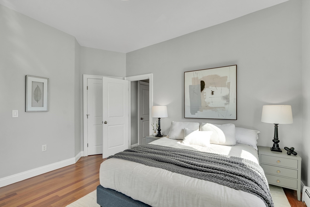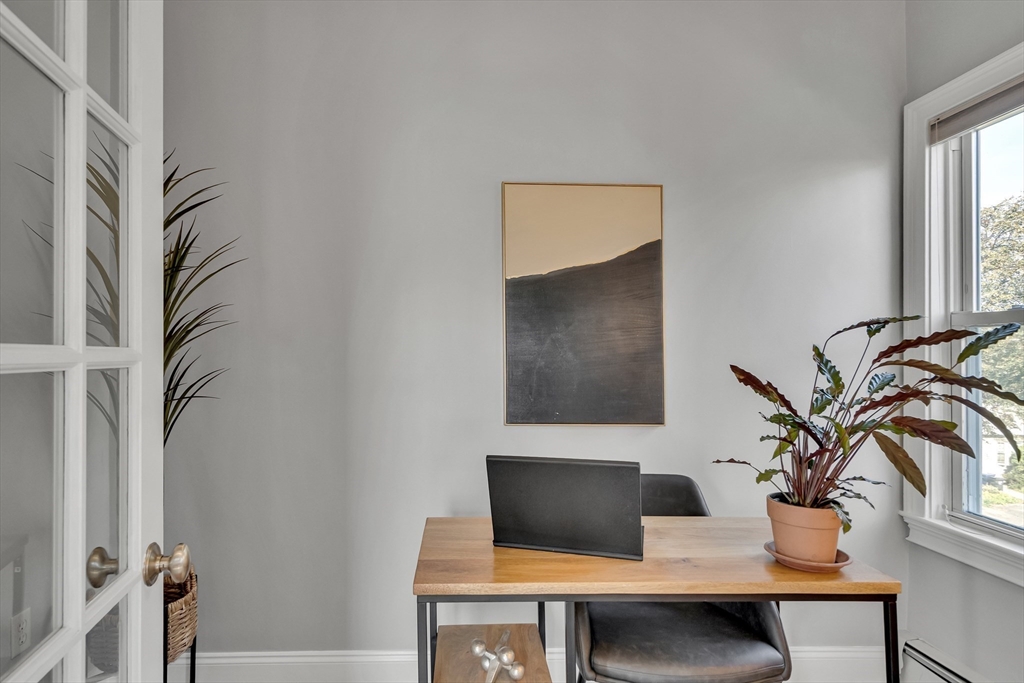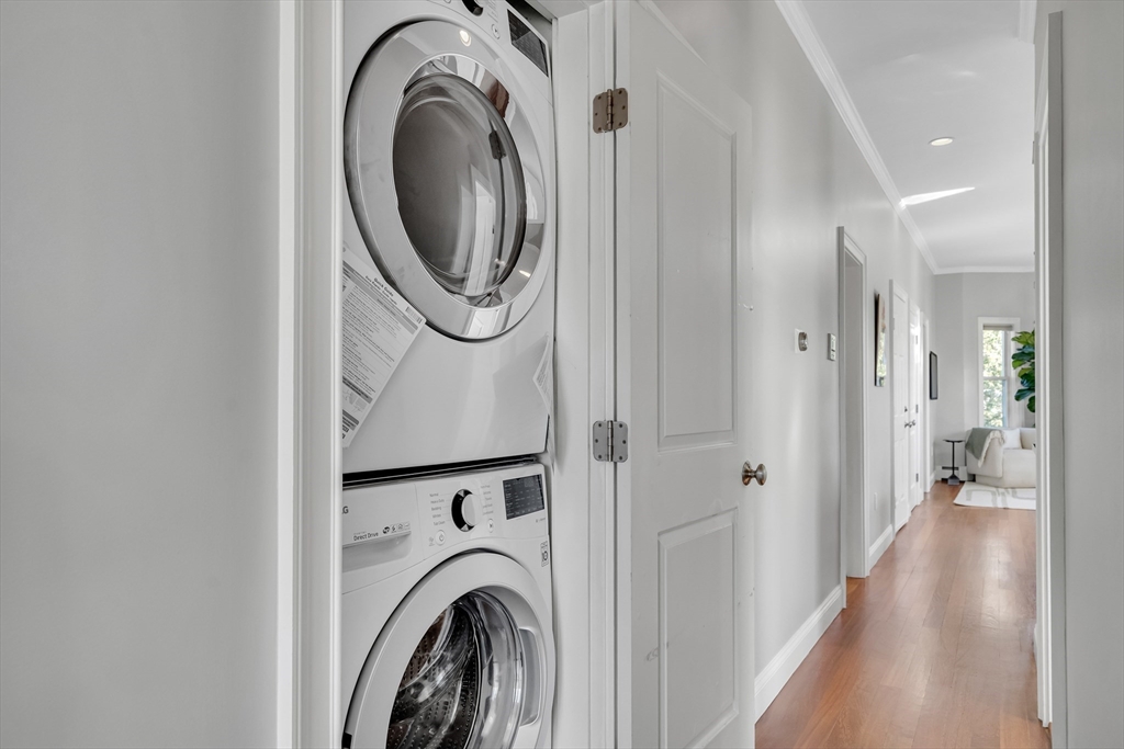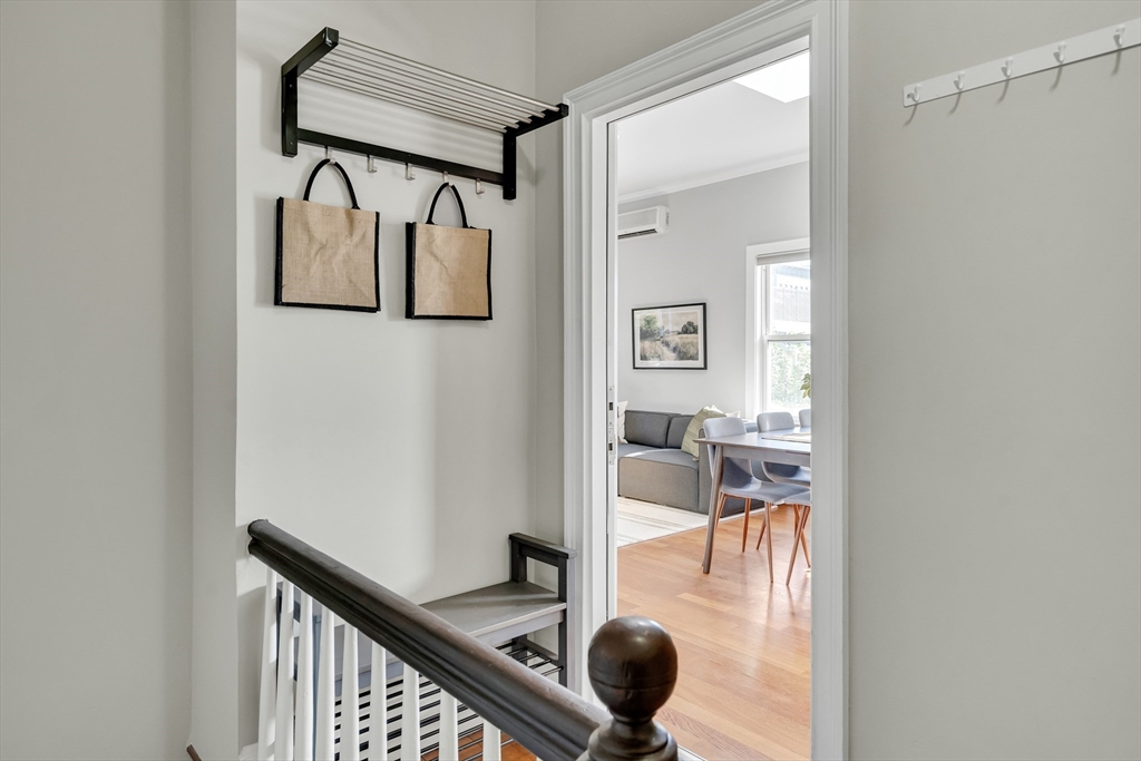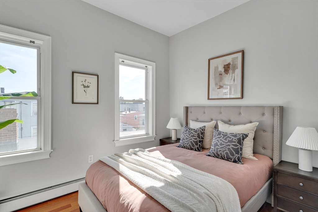 Wonderful opportunity to own a freshly painted top-floor condominium in a six-unit, professionally managed building. Convenient layout with two bedrooms and a private office. Open floor plan for living, dining and kitchen with one full and one half bathrooms. Skylights and nine windows make the unit exceptionally sunny — your plants will thrive, while Brazilian cherry floors add warmth throughout. The primary bedroom opens to a rear deck with stunning sunset views and includes a huge walk-in closet. In-unit laundry, abundant storage, and secure basement storage provide everyday convenience. Tandem parking with one other owner make the location even more attractive. Ideally located in East Cambridge, this residence offers easy access to Kendall Square, Inman Square, and Cambridge Crossing, along with the Red and Green Lines, bus routes, and nearby bike paths. A perfect blend of modern comfort, neighborhood charm, and city convenience.