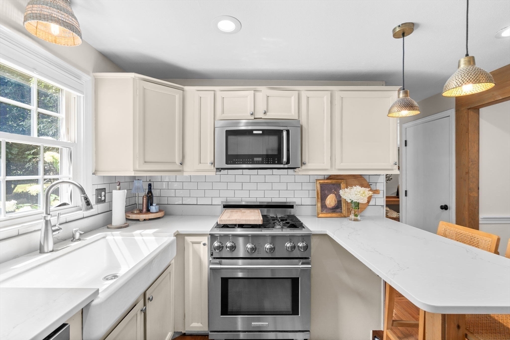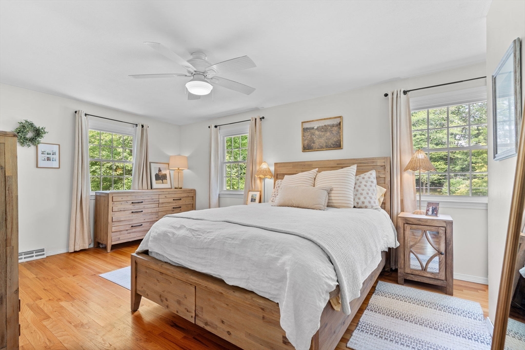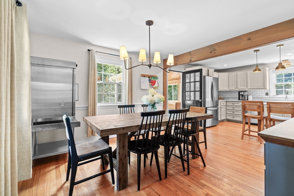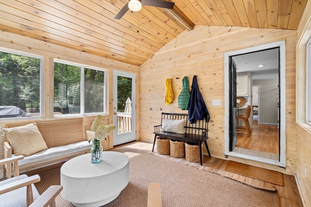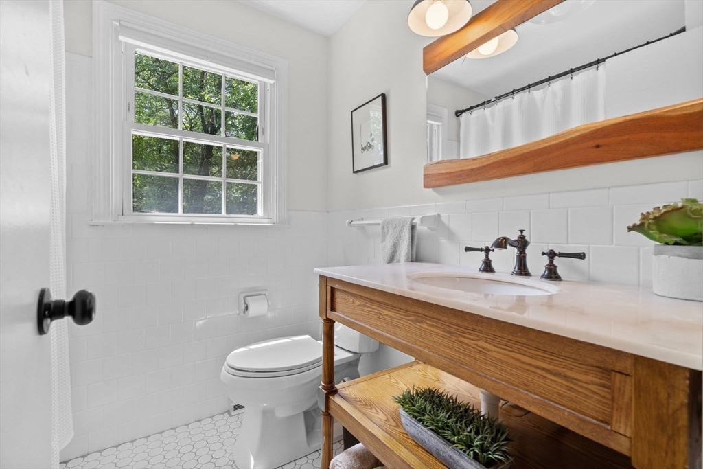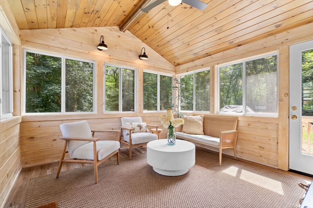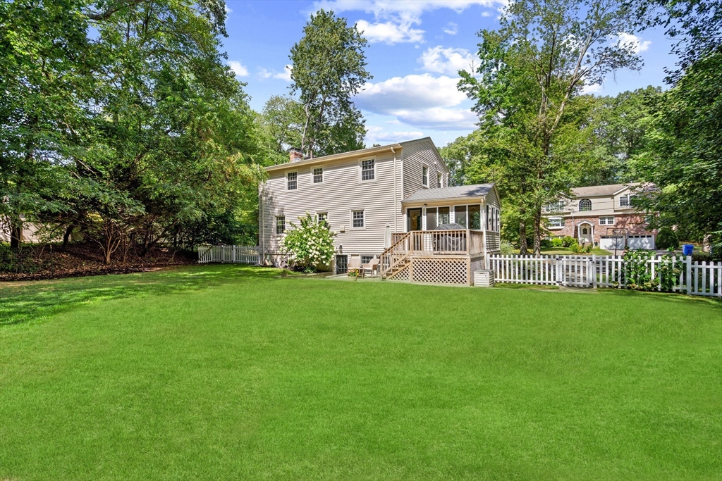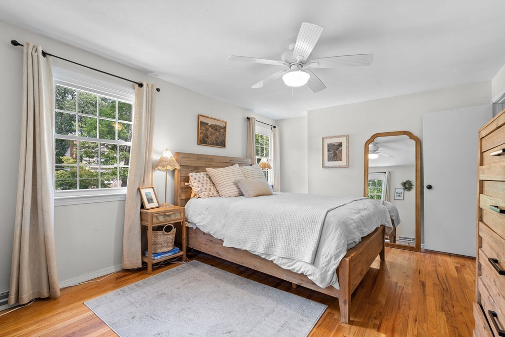 Beautifully updated Colonial in desirable Stagecoach neighborhood! Gleaming hardwood floors throughout main and second floors. Updated kitchen features white cabinetry, stainless steel appliances, quartz counters, subway tile backsplash, and gas stove—all with farmhouse chic style. Front-to-back living room is perfect for entertaining. Upstairs offers four spacious bedrooms and full bath. Enjoy your morning coffee in the charming three-season room, accessed from the new front porch, while overlooking the fully fenced backyard — ideal for pets, play, or quiet evenings. Major updates include 4-bedroom septic (2017), mass save insulation (2022), central air (2023), furnace (2024), and 200-amp electrical (2025). Truly move-in ready, this home offers comfort, style, and peace of mind — all in a community known for Charles River Rail Trail, Lake Winthrop, Warren Woods, Traditional/French/Montessori schools and quaint downtown. Don’t miss your chance to make this Holliston gem your own!