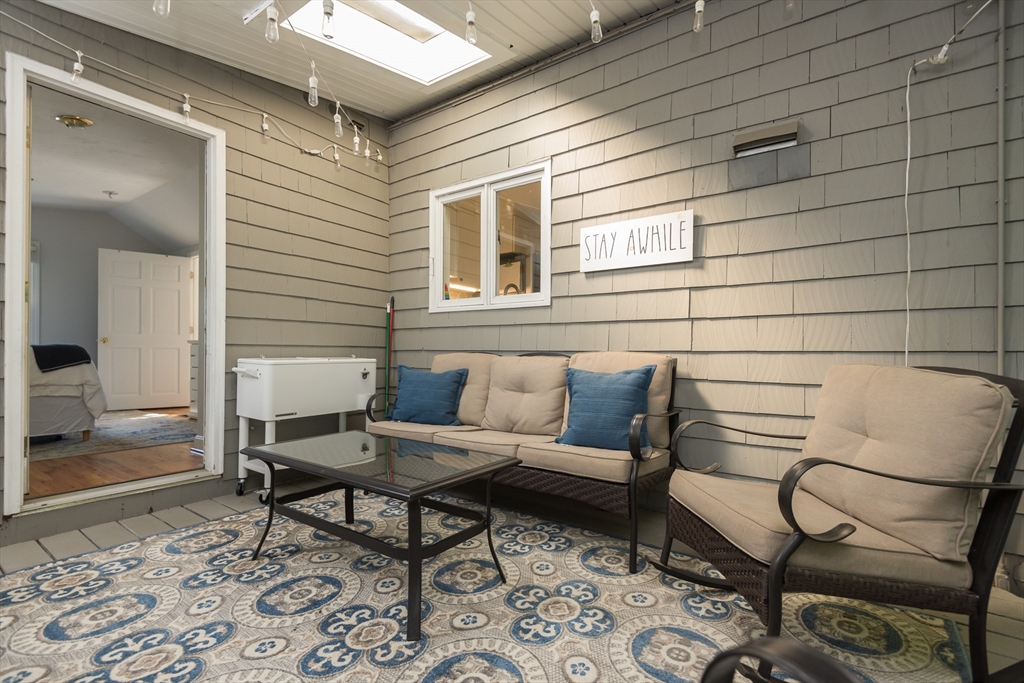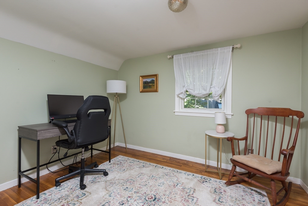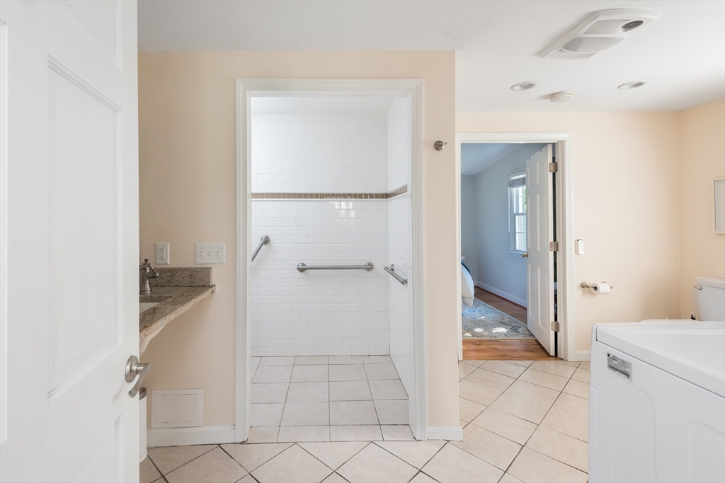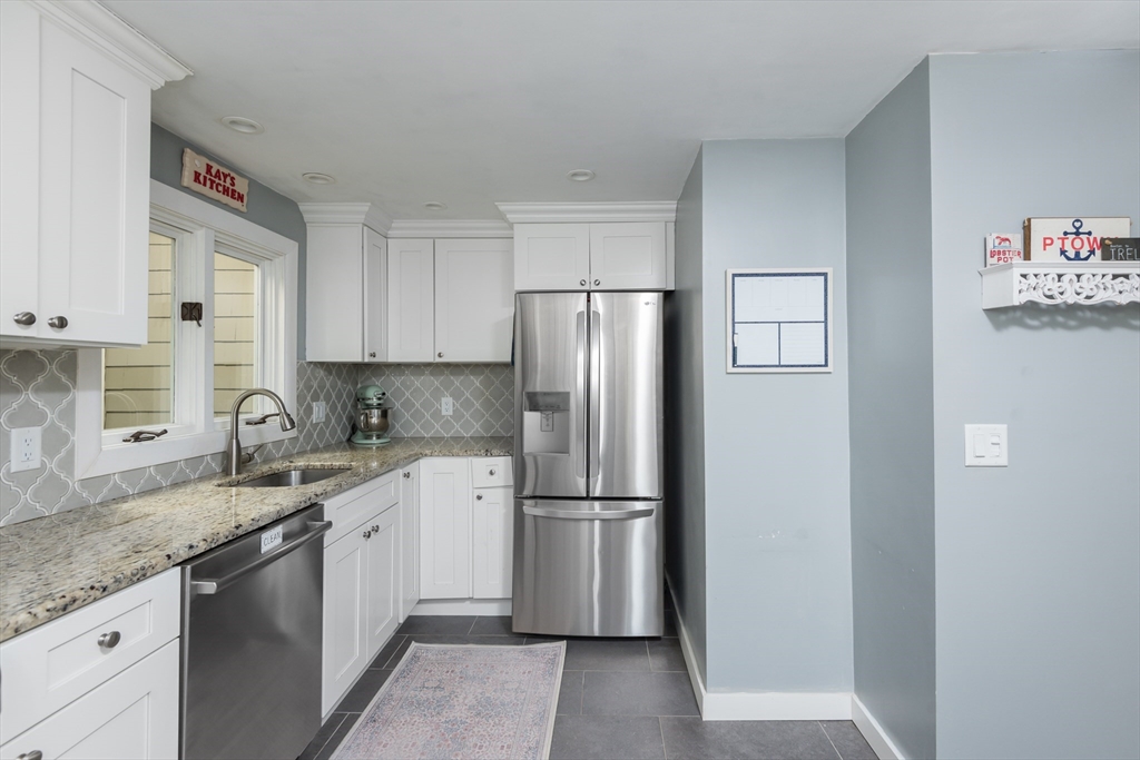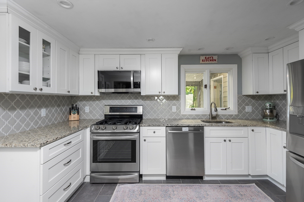 Amazing Opportunity in the Highly Desirable Homestead Area! Step into the sun-drenched living room featuring a large bow window, flowing seamlessly into the open dining and kitchen area complete with stainless steel appliances. The first-floor primary bedroom offers a private retreat with access to a 3-season screened porch—perfect for enjoying the changing New England seasons. The main bath is designed with accessibility in mind, showcasing a spacious walk-in shower and convenient washer/dryer setup. Upstairs, you’ll find two bedrooms with hardwood floors, built-in storage, and a half bath. The lower level expands your living space with a bonus family room plus a utility/workshop area. Outside, enjoy a fully fenced backyard with a patio and a generously sized storage shed. Don’t miss your chance to call this Homestead gem your new home!