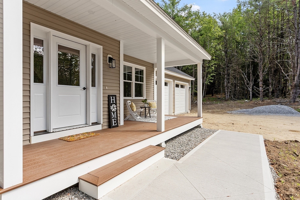UPGRADED THROUGHOUT - Complete and brand new Colonial nestled off the road on 2.7 acres in a serene corner lot setting. This home features an open concept main floor with a spacious living room, dining area and mudroom. The mudroom has half bath & custom bench. The fully applianced kitchen features quartz countertops AND a matching quartz backsplash as well as Maple cabinetry and an island. From the dining area, you can step out to a 12x14 sun deck overlooking your very private backyard. Upstairs the primary suite offers a tray ceiling, a sitting area,a custom barn door to the walk-in closet plus a tiled walk-in shower, dual vanities. The common full bath and separate laundry room both feature tile flooring. Enjoy the farmers porch with composite decking PLUS central A/C, a walk-out basement that could be future living area, an attached 2-car garage. Doyle Estates is a neighborhood of new homes. QUICK CLOSING AVAILABLE. The seller will contribute towards a buyers rate buy down.