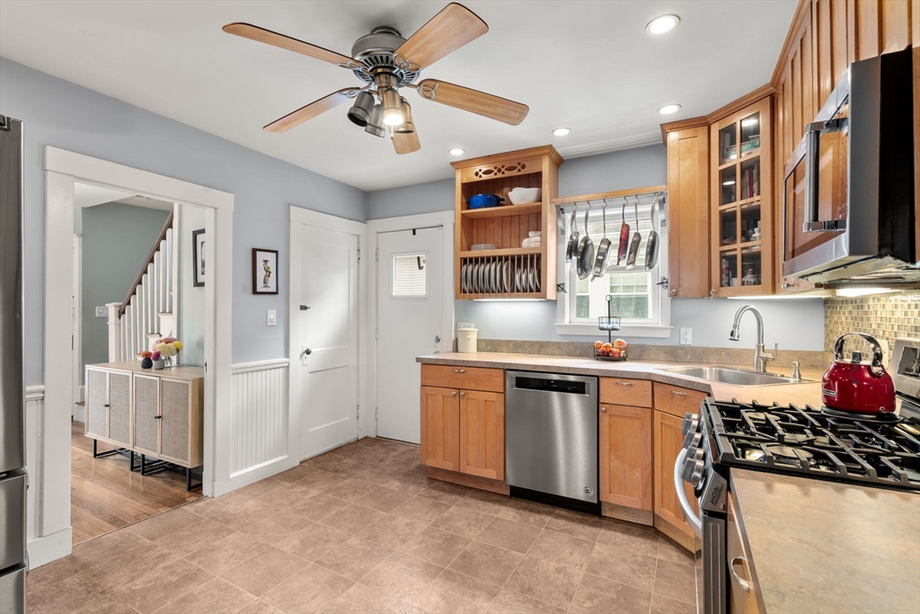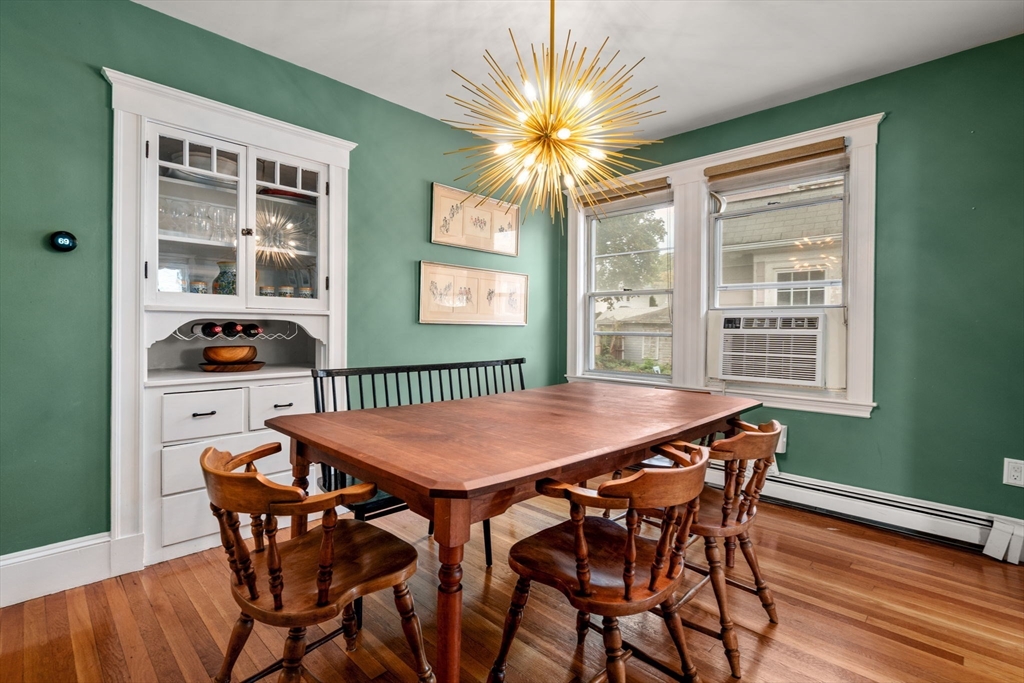 Spacious Updated Bungalow Near East Milton Square. Welcome to this move-in-ready home located on a desirable side street in one of Quincy’s most sought-after neighborhoods. This charming home features a spacious living room with a wood-burning fireplace, flowing into a formal dining area with classic built-ins.The kitchen offers beautiful cabinetry and updated appliances, perfect for everyday living. Two bedrooms are conveniently located on the main level. Upstairs, you'll find a generous primary bedroom with a walk-in closet and a half bath (2021).The finished lower level provides additional living space, including a potential fourth bedroom or home office, a large family room with wet bar, another half bath, and a laundry area. Recent Updates Include:Navien tankless combi boiler & water heater (2020) / Roof, siding, and gutters (2020) /Front stairs and garage door (2017) /Side porch (2020). All this within easy access to highway, shops, restaurants, and public transportation.