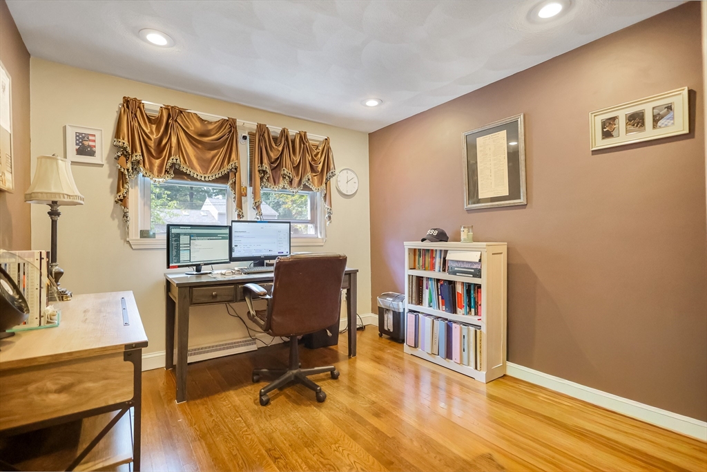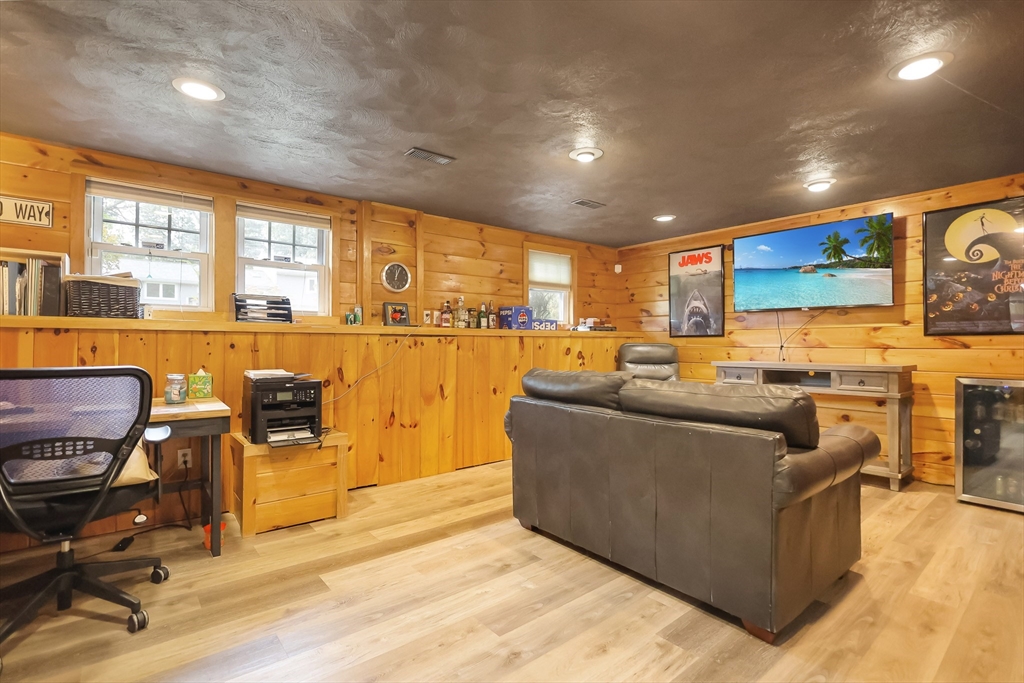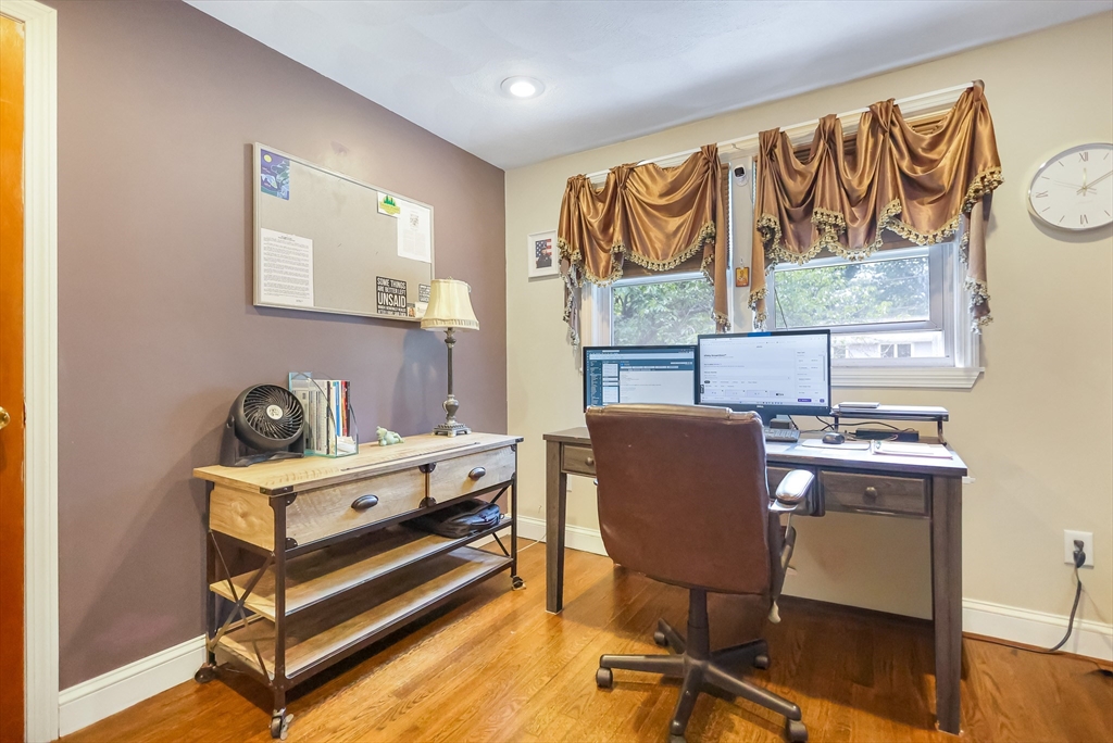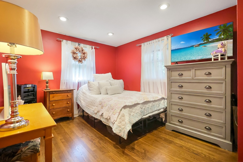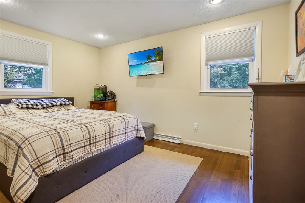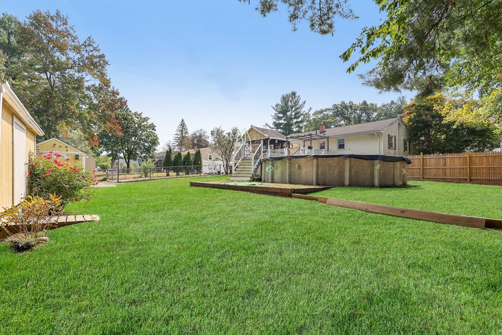 Welcome to this beautifully maintained split-level home in one of East Billerica’s most desirable neighborhoods! This property offers 3 bedrooms, 1.5 baths, and a bright, open feel with vaulted ceilings and gleaming hardwood floors. The eat-in kitchen features ss appliances, quartz counters, and sliders leading to a composite deck, perfect for entertaining. A charming screened-in porch overlooks the level, fenced-in backyard, complete with two sheds for extra storage and a sparkling above-ground pool (installed in 2022). The irrigation system to keep the lawn lush,and central air to ensure comfort year-round. The finished basement provides incredible flexibility-ideal for a family room, home office, gym, or playroom—plus a separate storage area. With a generator hook-up for peace of mind, this home truly has it all. Located close to major highways, shopping, and area amenities, this property blends comfort, convenience, and outdoor enjoyment. Showings begin at OH Sun, 9/28, 11-1.