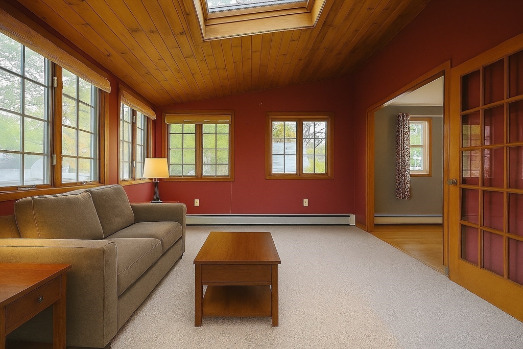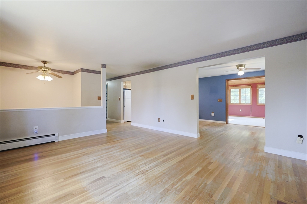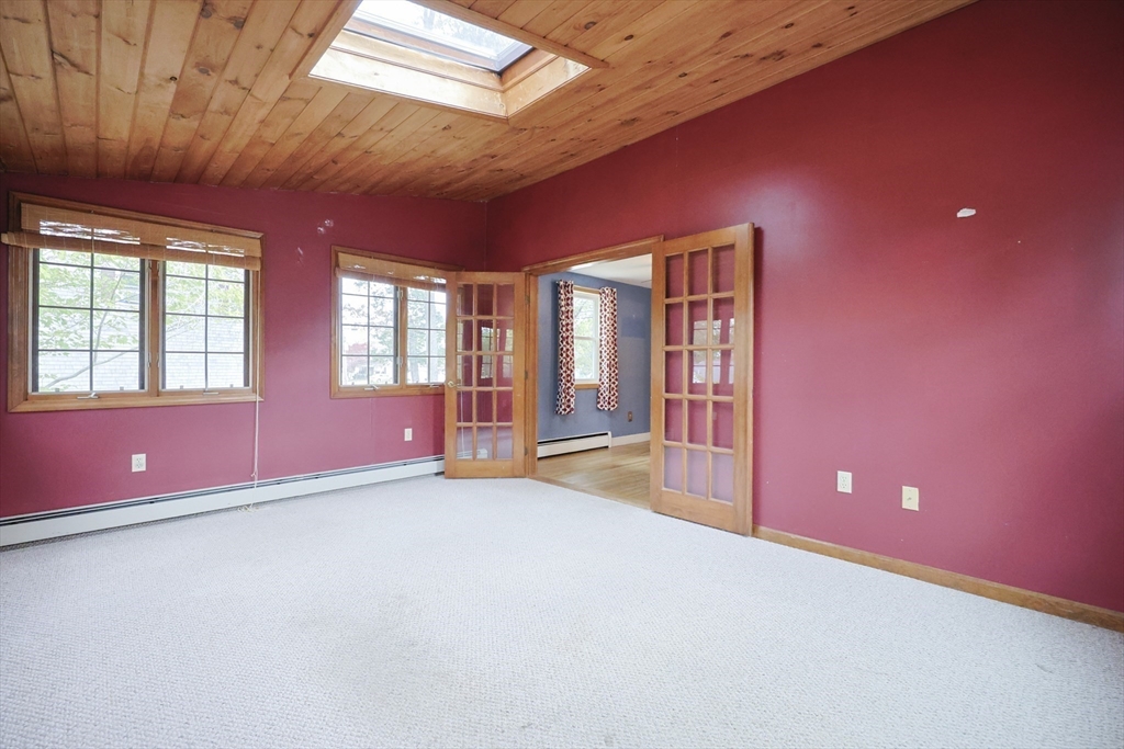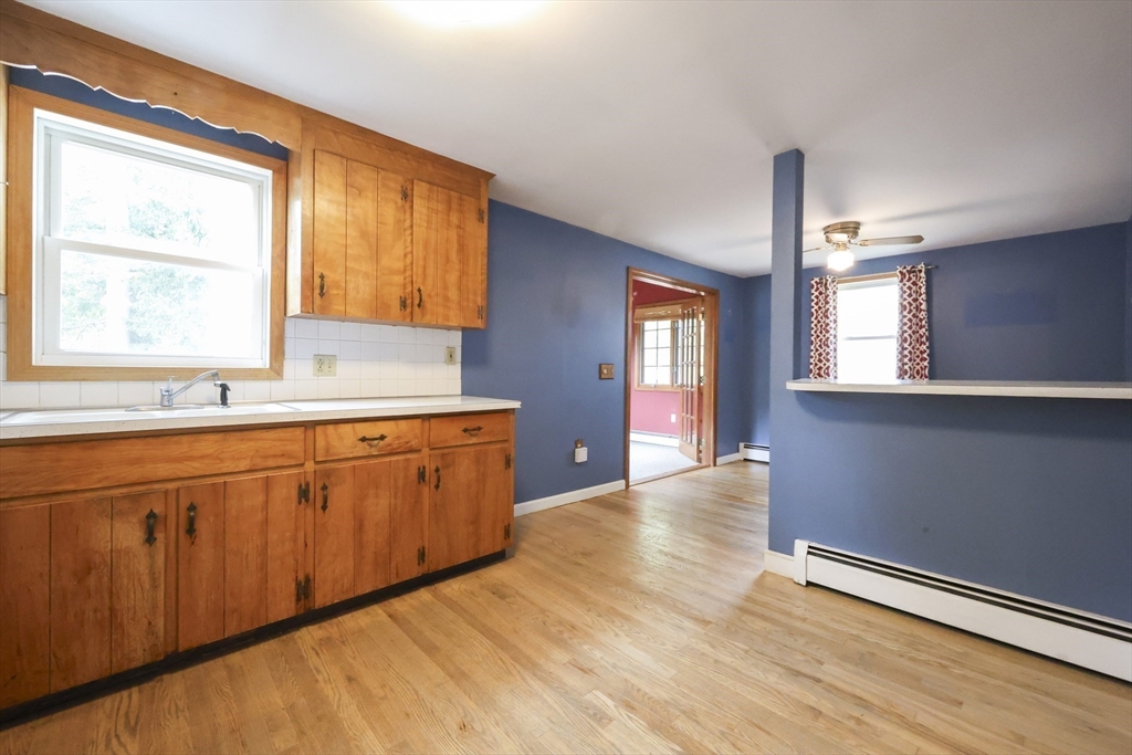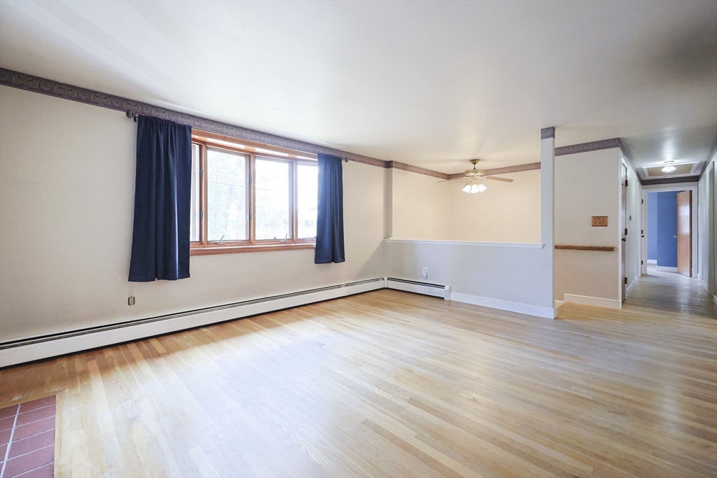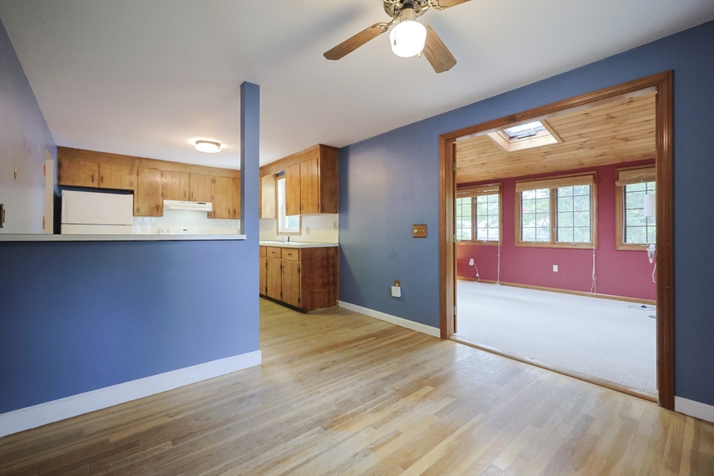 Fantastic opportunity awaits! This spacious 3-5 bedroom, 1.5 bath home with just over 1900 sq. ft. of finished space is ready for your personal touches. Features include large fireplaced living room with bay window, hardwood floors, primary bedroom with private half bath, and back family room with vaulted ceiling and skylight with access to the backyard. The lower level offers two finished rooms with closets ideal for bedrooms, office or flex space as well as unfinished storage room with laundry connections and utilities. Enjoy convenience of one-car garage and a sprawling, partially fenced backyard with additional storage. Roof approximately 10-12 years old and heating system approximately 7 years old. Conveniently located to area amenities, schools, shopping and highway access. As-is sale with quick close possible.